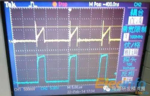 反激式开关电源具有体积小重量轻的优点。研制成功的原理样机具有功率密度高、稳定性高、变换效率较高、内在的过载与短路电流限制等综合性能,在各种功率应用场所有重要的应用价值。它的优点固然很多,但在实际应用中有没有遇见比较难缠的毛刺问题呢?下面就唠一唠作为新手的我,第一次设计反激开关电源遇到毛刺尖峰这件小事儿。 相关参数: 宽电压输入:90~265VAC 输出:24VDC 3.2A 采用的昂宝的OB2269片子,65K开关频率。 变压器采用PQ3220, 初级漏感是48uH左右,极间电容大概是470nf。 电源各部分功能都OK,就是电源输出有毛刺,试过好多方法最后还是没法完全去除。 1、调过初级RCD吸收,有点效果,但不大。 2、调过二极管RD吸收效果也不大。 3、初级地和次级地之间的电容也调过效果也不大。 4、还调过很多布线上的问题。最终调整后比较好的波形就是下面这个了。但还是没法满足要求,要求是要控制在120mv以内。 毛刺波形如图: ![]() PCB如图: ![]() 采样电阻上的电压波形和MOS管驱动波形如图: ![]() 纠错开始!细心的网友发现了这么多问题:可以加大输出小电感的感量,输出加高频电容,带宽要求20M的话会小不少。还有,示波器测量的时候应该要用接地环,示波器的触发通道的设置应该选择交流,其次是测量的位置,在示波器的地线套个磁环,效果回比之前的好很多。 恍然大悟,还可以试试在MOS管源极和次级二极管阳极加小磁珠。输出电感的感量现在是80μH,感觉已经比较大了,再加大试试。高频瓷片电容加了104的。开始没有设置示波器带宽限制,默认是关闭的,打开20M限制确实小很多。 在这里我还是总结一下,感谢网友的纠错和指正,一个人蒙着搞,有时想破脑袋也没用。毛刺尖峰控制在150MV以下了,做法就是在MOS管的源极加了个小磁环,感量在400nH左右,我是这样考虑的,测得电源毛刺是在MOS管开通的时候产生的,由于变压器极间电容的存在使得MOS开通时产生很高的下拉毛刺,然后传输到输出极,加个磁环后可以缓冲下拉的毛刺,但这样带来一个问题就是,MOS关断时漏感谐振幅度会加强,在这两者之间取个平衡就可以了。 (编者注:此文章内容来源于电源网论坛帖子,由网友发布,观点代表个人) 往期文章 虚短、虚断两板斧,轻松搞定运算放大器! 开关电源EMI滤波器设计 半桥式开关电源的优点和缺点 TVS二极管特性及应用 LED电源防雷攻略:压敏电阻串联陶瓷气体放电管