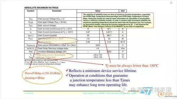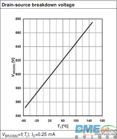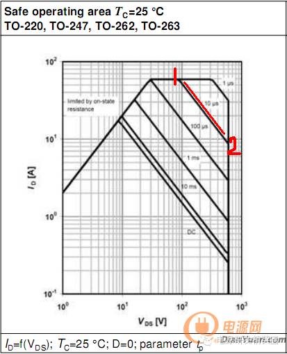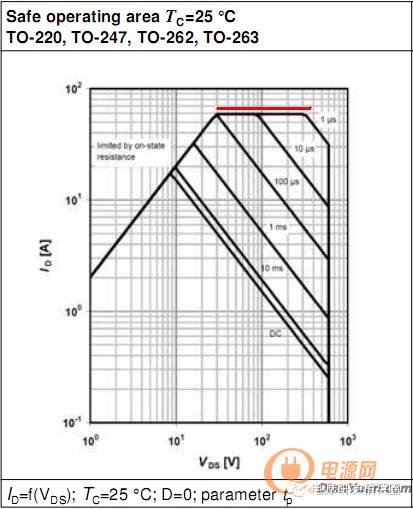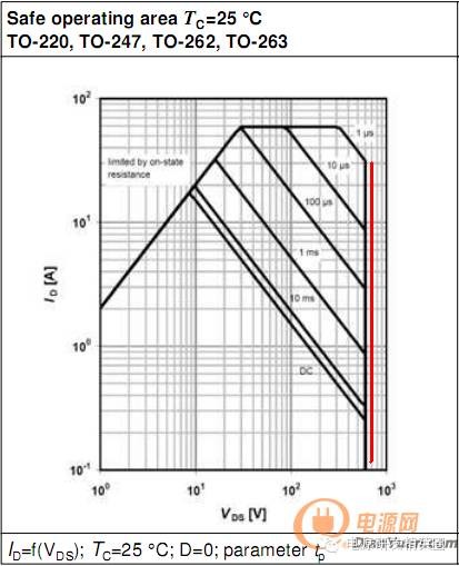 作为一个电源方面的工程师、技术人员,相信大家对 MOSFET 都不会陌生。在电源论坛中,关于MOSFET 的帖子也应有尽有:MOSFET 结构特点/工作原理、MOSFET 驱动技术、MOSFET 选型、MOSFET 损耗计算等,论坛高手、大侠们都发表过各种牛贴,我也不敢在这些方面再多说些什么了。 工程师们要选用某个型号的 MOSFET,首先要看的就是规格书/datasheet,拿到 MOSFET 的规格书/datasheet 时,我们要怎么去理解那十几页到几十页的内容呢? 本帖的目的就是为了和大家分享一下我对 MOSFET 规格书/datasheet 的理解和一些观点,有什么错误、不当的地方请大家指出,也希望大家分享一下自己的一些看法,大家一起学习。 PS: 1. 后续内容中规格书/datasheet 统一称为 datasheet 2. 本帖中有关 MOSFET datasheet 的数据截图来自英飞凌 IPP60R190C6 datasheet 1VDSDatasheet 上电气参数第一个就是 V(BR)DSS,即 DS 击穿电压,也就是我们关心的 MOSFET 的耐压 此处V(BR)DSS的最小值是600V,是不是表示设计中只要MOSFET上电压不超过600V MOSFET就能工作在安全状态? 相信很多人的答案是“是!”,曾经我也是这么认为的,但这个正确答案是“不是!” 这个参数是有条件的,这个最小值600V是在Tj=25℃的值,也就是只有在Tj=25℃时,MOSFET上电压不超过600V才算是工作在安全状态。 MOSFET V(BR)DSS是正温度系数的,其实datasheet上有一张V(BR)DSS与Tj的关系图(Table 17),如下: ![]() 要是电源用在寒冷的地方,环境温度低到-40℃甚至更低的话,MOSFET V(BR)DSS值<560V,这时候600V就已经超过MOSFET耐压了。 所以在MOSFET使用中,我们都会保留一定的VDS的电压裕量,其中一点就是为了考虑到低温时MOSFET V(BR)DSS值变小了,另外一点是为了应对各种恶例条件下开关机的VDS电压尖峰。 2ID