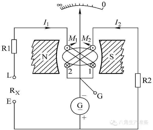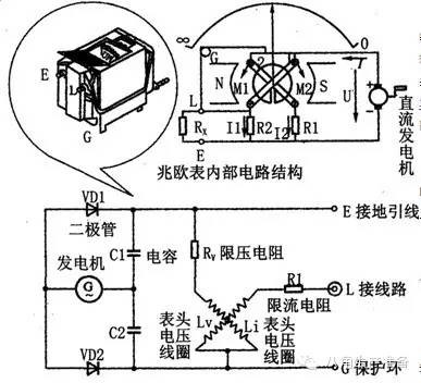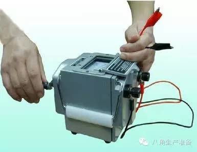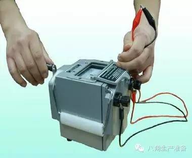 一.摇表的结构与原理 1、摇表的种类:手摇式摇表、电动式摇表 手摇式摇表![]() 电动式摇表 2、摇表的分类 摇表也称兆欧表,主要用于测量电气设备的绝缘电阻。摇表的额定电压有500V、1000V、2500V等几种。 3、摇表的结构 摇表由一个手摇发电机、表头和三个接线柱(即L:线路端、E:接地端、G:屏蔽端)组成。 二、摇表的工作原理 ![]() ![]() 1、被测电阻Rx接在“L”与“E”端钮之间。 2、摇动直流发电机的手柄,发电机两端产生较高的直流电压,线圈1和线圈2同时通电。当以120r/min速度均匀摇动手柄时,表内的直流发电机输出该表的额定电压,在线圈1与被测电阻间有电流I1,在线圈2与表内附加电阻R2有电流I2,两种电流与磁场作用产生相反的力矩,当I1电流最大(即被测电阻为0),指针指向刻度0。当I2电流最大(即开路状态),指针指向刻度无穷大∞,当被测电阻为一定值时,指针指在被测电阻的数值。 由于摇表没有游丝,不能产生反作用力矩,所以摇表在不测时停留在任意位置(即不定位),而不是回到零,这跟其他指针式的仪表有区别的。 三、摇表的使用 1、摇表的选择 1)摇表的额定电压一定要与被测电气设备或线路的工作电压相适应。一般额定电压在500V以下的设备,选用500V或1000V的摇表;额定电压在500V及以上的设备,选用1000V~2500V的摇表。 2)摇表的测量范围要与被测绝缘电阻的范围相符合,以免引起大的读数误差。 2、摇表的接线与使用 1)摇表的接线 摇表有三个接线端钮,分别标有L(线路)、E(接地)和G(屏蔽)。 当测量电力设备对地的绝缘电阻时,应将L接到被测设备上,E可靠接地即可。 2)摇表的检查 开路试验:在摇表未接通被测电阻之前,摇动手柄使发电机达到120r/min的额定转速,观察指针是否指在标度尺“∞”的位置。 短路试验:将端钮L和E短接,缓慢摇动手柄,观察指针是否指在标度尺的“0”位置。 3)摇表的使用 (1)观测被测设备和线路是否在停电的状态下进行测量。并且摇表与被测设备间的连接导线不能用双股绝缘线或绞线,应用单股线分开单独连接。 (2)将被测设备与摇表正确接线。摇动手柄时应由慢渐快至额定转速120r/min。 (3)正确读取被测绝缘电阻值大小。同时,还应记录测量时的温度、湿度、被测设备的状况等,以便于分析测量结果。 ![]() 摇表的开路试验 ![]() 摇表的短路试验 ![]() 摇表的使用 ![]() 摇表的读数