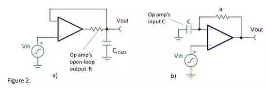 本文简要分析了运算放大器会发生振荡的两种常见原因。 虽然 Bode 图是一种很不错的分析工具,但是您可能没有还发现该图太过直观了。就运算放大器不稳定和振荡而言,Bode 图这是对常见原因的一种直观表述。 在反馈信号到达反相输入端时就会发生如图 1 中所示的完美的无延迟阻尼响应。运算放大器通过斜坡至最终阈值并在反馈信号检测到在适当输出电压时的闭合缓缓下降来进行响应。 当反馈信号延迟的时候问题就会进一步恶化。由于在环路中有延迟,放大器无法立即检测到其达到最终阈值的进程,进而以过快地向正常输出电压移 动的形式表现为过响应。请注意延迟反馈越多最初斜率也就越快。反相输入无法及时接收到其已经达到并传递出正常输出电压的反馈。其将过冲目标并在最终建立时 间前需要诸多连续的极性纠正。 如果是少量的延迟,您可能只是看到了一些过冲和振铃。如果是大量的延迟,那么这些极性纠正就会永无休止进而形成振荡器。 ![]() 延迟的根源通常是一个简单的低通 R-C 网络。就所有频率而言,这虽然不是一个恒定的延迟,但是该网络从 0° 到 90° 的逐渐相移会产生一个一阶逼近的时延,td=RC。 最常见的有两种情况,R-C 网络不经意间就会在我们的电路中形成。第一种情况是容性负载(请参见图 2a)。电阻就是运算放大器的开环输出电阻,当然电容器就是负载电容了。 ![]() 第二种情况是(请参见图2b)反馈电阻和运算放大器的输入电容形成了 R-C 网络。在这个敏感的电路节点电路板连接也是电容的重要因素。请注意这两个电路具有相同的反馈环路,唯一不同的是输出的节点不同。从环路稳定性的角度来说, 他们会产生同样的问题。延迟反馈的这两个因素通常都会起作用如果两个因素同时作用的话会带来更大的麻烦。 对于第二种情况需要作一点点解释:就简单的 G=1 缓冲器而言通常不需要反馈电阻,因此更为常见的一种情况是在使用了一个反馈电阻和电阻接地的增益结构中(请参见图 3)。R/C 电路中的这些并联的电阻就形成了高效的 R。 ![]() 关于反馈放大器的 Bode 分析我们还有很多要学习的方面。因此该有关反馈路径中的延迟或相移如何影响稳定性的简单直观表述有助于您诊断并解决一些最常见的稳定性问题。