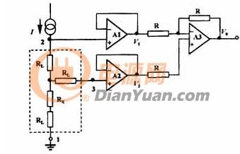 在利用万用表测电阻的过程中,工程师有时需要精确测量小于100Ω的小电阻,这往往需要借助一些能够提升测量精度的技术来完成。本文在这里为各位技术人员总结了三种常见的万用表测电阻的技术,下面就让我们一起来看看吧。 四线测量法 在利用数字万用表测电阻的过程中,技术人员为了提升对小于100Ω的小电阻的精确测试,常常会用到四线测量法。所谓的四线测量法,就是将恒流源电流流入被测电阻R的两根电流线和数字万用表电压测量端的两根电压线分离开,使得数字万用表测量端的电压不再是恒流源两端的直接电压,其操作原理如图1所示。 图1 从图1所给出的测试原理图中可以看出,在利用四线测量法完成数字万用表测电阻的精确测试过程中,这一方法比通常的测量法多了两根馈线,断开了电压测量端与恒流源两端连线。由于电压测量端与恒流源端断开,恒流源与被测电阻Rx、馈线RL1、RL2构成一个回路。送至电压测量端的电压只有Rx两端的电压,馈线RL1、RL2电压没有送至电压测量端。因此,馈线电阻RL1和RL2对测量结果没有影响。馈线电阻RL3和RL4对测量有影响,但影响很小,由于数字万用表的输入阻抗远大于馈线电阻,所以,四线测量法测量小电阻的准确度很高。 四线测量外加恒流源测量 上文中所提及的四线测量法固然能够帮助工程师完成高精度的万用表测电阻工作,不过,在四线测量过程中,其恒流源电流的精确度把握是非常关键的。在这里建议采用外加的更稳定的恒流源电流。 应注意的是,外加的恒流源电流的大小要与数字万用表恒流源电流的大小相等。我们采用的外加的恒流源电流由高精密基准电压源MAX6250、运放及扩流复合管组成,如图2所示。电压源MAX6250的温漂≤2ppm/℃,时漂ΔVout/t=20ppm/1000h。在这一测量过程中,电流I应当取800μA~1mA,R是极低温漂线绕电阻(若取I=1mA,R=5kΩ),这时I的温漂和时漂相当于MAX6250的水平。 图2 馈线电阻补偿测量法 馈线电阻补偿法是另一种常见的万用表测电阻的高精度测量方式,在工业领域中,如果需要进行高精度的电阻测试,往往会选择采用三线制接法,使被测电阻与接地的线相接。这一测试方法的原理如图3所示。在采用这一技术进行测量时,电流I取800μA~1mA,R是极低温漂线绕电阻(若取I=1mA,R=5kΩ),这时电流I的温漂和时漂相当于MAX6250的水平。 图3 在上图所展示的这一馈线电阻补偿测量法的操作示意图中,当恒流源电流I通过馈线2流入被测电阻,此时馈线1接地,馈线2和3分别接运放A1和A2的输入端。若两运放的增益都为1,其输出电压V1和V2可计算为: 此时,差动放大器A3的输出电压V0可以按下式计算为: 从上式可知,在馈线电阻补偿测量的过程中,馈线电阻上的附加电压加到A3的输入端,通过求差而消除,输出电压仅与被测电阻有关,且成线性关系。不管被测电阻大小如何,误差都能完全补偿。这也就是这一测量方法能够保障数字万用表测电阻的结果保持高精度的原因。 在这种馈线电阻补偿法测量小电阻电路中,测量精确度主要取决于恒流源电流I的精确度和馈线电阻RL的大小是否相等。电路中的运放可选用四通用单运放(LM324)。当用此法测量阻值小于0.5Ω的电阻时,应确保RL完全相等。 以上就是本文针对三种常见的数字万用表测电阻的高精度技术,所进行的总结和分享,希望对各位技术人员的日常工作有所帮助。