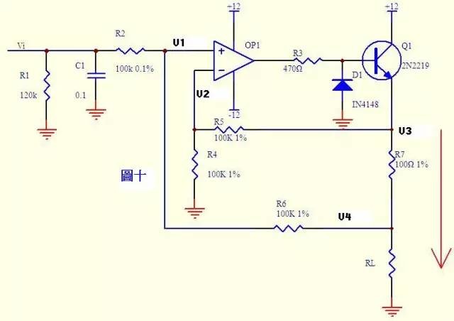 运算放大器组成的电路五花八门,令人眼花瞭乱,是模拟电路中学习的重点。在分析它的工作原理时倘没有抓住核心,往往令人头大。特搜罗天下运放电路之应用,来个“庖丁解牛”,希望各位从事电路板维修的同行,看完后有所收获。 遍观所有模拟电子技朮的书籍和课程,在介绍运算放大器电路的时候,无非是先给电路来个定性,比如这是一个同向放大器,然后去推导它的输出与输入的关系,然 后得出Vo=(1+Rf)Vi,那是一个反向放大器,然后得出Vo=-Rf*Vi……最后学生往往得出这样一个印象:记住公式就可以了!如果我们将电路稍 稍变换一下,他们就找不着北了!偶曾经面试过至少100个以上的大专以上学历的电子专业应聘者,结果能将我给出的运算放大器电路分析得一点不错的没有超过 10个人!其它专业毕业的更是可想而知了。 今天,芯片级维修教各位战无不胜的两招,这两招在所有运放电路的教材里都写得明白,就是“虚短”和“虚断”,不过要把它运用得出神入化,就要有较深厚的功底了。 虚短和虚断的概念 由于运放的电压放大倍数很大,一般通用型运算放大器的开环电压放大倍数都在80dB以上。而运放的输出电压是有限的,一般在 10 V~14 V。因此运放的差模输入电压不足1 mV,两输入端近似等电位,相当于 “短路”。开环电压放大倍数越大,两输入端的电位越接近相等。 “虚短”是指在分析运算放大器处于线性状态时,可把两输入端视为等电位,这一特性称为虚假短路,简称虚短。显然不能将两输入端真正短路。 由于运放的差模输入电阻很大,一般通用型运算放大器的输入电阻都在1MΩ以上。因此流入运放输入端的电流往往不足1uA,远小于输入端外电路的电流。故通常可把运放的两输入端视为开路,且输入电阻越大,两输入端越接近开路。 “虚断”是指在分析运放处于线性状态时,可以把两输入端视为等效开路,这一特性 称为虚假开路,简称虚断。显然不能将两输入端真正断路。 在分析运放电路工作原理时,首先请各位暂时忘掉什么同向放大、反向放大,什么加法器、减法器,什么差动输入……暂时忘掉那些输入输出关系的公式……这些东东只会干扰你,让你更糊涂﹔也请各位暂时不要理会输入偏置电流、共模抑制比、失调电压等电路参数,这是设计者要考虑的事情。我们理解的就是理想放大器(其实在维修中和大多数设计过程中,把实际放大器当做理想放大器来分析也不会有问题)。 好了,让我们抓过两把“板斧”------“虚短”和“虚断”,开始“庖丁解牛”了。 ![]() 11个经典电路图一运放的同向端接地=0V,反向端和同向端虚短,所以也是0V,反向输入端输入电阻很高,虚断,几乎没有电流注入和流出,那么R1和R2相当于是串联 的,流过一个串联电路中的每一只组件的电流是相同的,即流过R1的电流和流过R2的电流是相同的。流过R1的电流I1 = (Vi - V-)/R1 ……a 流过R2的电流I2 = (V- - Vout)/R2 ……b V- = V+ = 0 ……c I1 = I2 ……d 求解上面的初中代数方程得Vout = (-R2/R1)*Vi 这就是传说中的反向放大器的输入输出关系式了。 图二中Vi与V-虚短,则 Vi = V- ……a 因为虚断,反向输入端没有电流输入输出,通过R1和R2 的电流相等,设此电流为I,由欧姆定律得: I = Vout/(R1+R2) ……b Vi等于R2上的分压, 即:Vi = I*R2 ……c 由abc式得Vout=Vi*(R1+R2)/R2 这就是传说中的同向放大器的公式了。 图三中,由虚短知: V- = V+ = 0 ……a 由虚断及基尔霍夫定律知,通过R2与R1的电流之和等于通过R3的电流,故 (V1 – V-)/R1 + (V2 – V-)/R2 = (Vout – V-)/R3 ……b 代入a式,b式变为V1/R1 + V2/R2 = Vout/R3 如果取R1=R2=R3,则上式变为Vout=V1+V2,这就是传说中的加法器了。(编辑者注)质疑:(V1 – V-)/R1 + (V2 – V-)/R2 = (V- – Vout)/R3 ……b 图三公式中少了个负号? 请看图四。因为虚断,运放同向端没有电流流过,则流过R1和R2的电流相等,同理流过R4和R3的电流也相等。故 (V1 – V+)/R1 = (V+ - V2)/R2 ……a (Vout – V-)/R3 = V-/R4 ……b 由虚短知: V+ = V- ……c 如果R1=R2,R3=R4,则由以上式子可以推导出 V+ = (V1 + V2)/2 V- = Vout/2 故 Vout = V1 + V2 也是一个加法器,呵呵! 图五由虚断知,通过R1的电流等于通过R2的电流,同理通过R4的电流等于R3的电流,故有 (V2 – V+)/R1 = V+/R2 ……a (V1 – V-)/R4 = (V- - Vout)/R3 ……b 如果R1=R2, 则V+ = V2/2 ……c 如果R3=R4, 则V- = (Vout + V1)/2 ……d 由虚短知 V+ = V- ……e 所以 Vout=V2-V1 这就是传说中的减法器了。 图六电路中,由虚短知,反向输入端的电压与同向端相等,由虚断知,通过R1的电流与通过C1的电流相等。通过R1的电流 i=V1/R1 通过C1的电流i=C*dUc/dt=-C*dVout/dt 所以 Vout=((-1/(R1*C1))∫V1dt 输出电压与输入电压对时间的积分成正比,这就是传说中的积分电路了。若V1为恒定电压U,则上式变换为Vout = -U*t/(R1*C1) t 是时间,则Vout输出电压是一条从0至负电源电压按时间变化的直线。 图七中由虚断知,通过电容C1和电阻R2的电流是相等的,由虚短知,运放同向端与反向端电压是相等的。则: Vout = -i * R2 = -(R2*C1)dV1/dt 这是一个微分电路。如果V1是一个突然加入的直流电压,则输出Vout对应一个方向与V1相反的脉冲。 图八.由虚短知 Vx = V1 ……a Vy = V2 ……b 由虚断知,运放输入端没有电流流过,则R1、R2、R3可视为串联,通过每一个电阻的电流是相同的, 电流I=(Vx-Vy)/R2 ……c 则: Vo1-Vo2=I*(R1+R2+R3) = (Vx-Vy)(R1+R2+R3)/R2 ……d 由虚断知,流过R6与流过R7的电流相等,若R6=R7, 则Vw = Vo2/2 ……e 同理若R4=R5,则Vout – Vu 