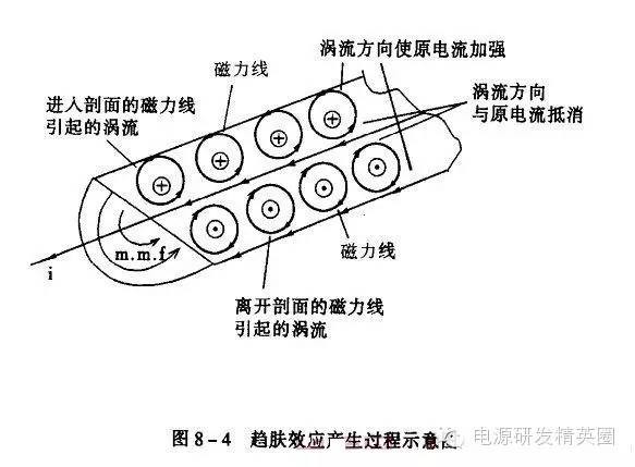 电源中的磁性元件一般就是指电感与变压器,这里我们这种讨论初次级隔离的变压器,因为这种变压器在开关电源中应用最为广泛。 变压器的作用大致是提供初次级的电气隔离,使输出电压或升或降,传送能量;变压器设计的好坏直接关系到整个电源系统的安规,EMC,效率,温升,输出的电气性能参数,寿命,可靠性,甚至会导致系统的崩溃。 变压器的工艺,是个大难题。 升压的做过,但经验不多,说说个人的理解,不一定对,权作参考与讨论之用。 升压变压器的难点,因为绕组的圈数太多,漏感与分布电容很难两全其美;这个时候我觉得应该从以下几个方面着手: 1、在选择变压器的时候,如果结构尺寸允许的话,我们尽量选择高长型(立式)或窄长(卧式)型的,因为这种变压器单层绕线圈数多,可以有效降低绕线的层数,增加初次级的耦合,减小层间电容。 增加初次级的耦合,可以减小变压器的漏感,但会增加初次级间的分布电容。 升压变压器,最难搞得就是漏感和分布电容不好处理,很容易震荡。 如果升压比比较大,应该分槽绕制,这个是减低分布电容的最好办法,大家看一看电视机中的高压包就知道了,黑白电视机输入电压12V,高压应该是在12000左右,没有用倍压整流,一级搞定。次级估计分槽在十个左右。另外还使用的谐振技术。类似于现在用的反激准谐振,功率管关断时初级的谐振电压在一百多伏,这样变压器的变比只需要100倍了,如果分10个槽,每个槽只相当于1:10。经典的设计,仅供参考! 2、优化绕线顺序,使初次级能增减耦合面积;曾经用过这种绕法:1/3次级--1/2初级--1/3次级--1/2初级--1/3次级,结果表明此种绕法漏感可以小很多。 当然这种变压器绕制工艺稍显复杂,成本稍高,但还是可以接受。 3、层间电容大家都知道,每层之间加黄胶带,便可减少层间电容。 当然这些措施都是在考虑安规与EMC的情况下,做出的改进;对于升压电源,漏感与层间电容如果处理不好很容易引起振荡,使电源的EMC不好过,效率不高,有时会莫名其妙的炸MOS管(我实际碰到过的情况)。 至于温升其实设计时的计算温升只能做一个参考,影响温升的参数较多,比如不同厂家,不同电路模式磁芯损耗都不一样,甚至连磁芯的组装也会影响到温升,比如PQ变压器只磨中柱的变压器温升会比两边垫气息的温升高,铜损的计算会稍准一些,但电流计算不准也会造成铜损计算不准! 理论设计始终与实际测试有出入,只是经验丰富的计算出来的变压器误差小一些,大多数还是要稍作调整! 磁性元件的设计中存在太多的不确定因素,比如同样的绕制工艺要求,不同厂家做出来的会有小小的差异,还有磁芯材质的差异,因为不是每个工厂都用得起TDK的磁芯,所以,我认为设计是需要丰富的经验加上实际的调试来确定最终参数。我一般都是线大概计算下参数,然后在实际中调试,最终确定的参数主要是看调试的效果。 我们知道变压器的损耗分为铁损与铜损,先来说说铁损吧。 变压器的铁损包括三个方面: 一是磁滞损耗,当交流电流通过变压器时,通过变压器磁芯的磁力线其方向和大小随之变化,使得磁芯内部分子相互摩擦,放出热能,从而损耗了一部分电能,这便是磁滞损耗。 二是涡流损耗,当变压器工作时。磁芯中有磁力线穿过,在与磁力线垂直的平面上就会产生感应电流,由于此电流自成闭合回路形成环流,且成旋涡状,故称为涡流。涡流的存在使磁芯发热,消耗能量,这种损耗称为涡流损耗。 三是剩余损耗,在磁芯磁化或反磁化的过程中,磁化状态并不是随磁化强度变化而立即变化,有个滞后时间,滞后效应便是引起剩余损耗的原因。 从铁损包含的三个个方面的定义上看,只要控制磁力线的大小便可降低磁滞损耗,减少磁芯与磁力线垂直的面积可以减少涡流损耗。 赵老师在《开关电源中磁性元器件》一书中指出: 由上面的话可以看出,在磁芯材质与形状,体积等都确定的情况下,变压器的铁损与变压器的工作频率以及磁感应强度摆幅deltB成正比。磁滞在低场下可以不予考虑,涡流在低频下也可忽略,剩下的就是剩余损耗。在磁感应强度较高或工作频率较高时,各种损耗互相影响难于分开。故在涉及磁损耗大小时,应注明工作频率f以及对应的Bm值。但在低频弱场下,可用三者的代数和表示:tanδm= tanδh+tanδf+tanδr。式中tanδh tanδf tanδr分别为:磁滞损耗角正切,涡流损耗角正切,剩余损耗角正切。各种损耗随频率的变化关系如图。 由图可见,剩余损耗和B的大小无关,但随频率增大而增大。而磁滞损耗随B的增加增大,涡流损耗则和频率成线性变化。了解了这些就可知:在正激和桥式电源中,磁芯损耗着重考虑涡流损耗。在反激变压器和储能电感中,既要考虑涡流损耗又要考虑磁滞损耗,尤其是DCM方式工作的电源,磁滞损耗是第一位的。所以可以确定,做电源时第一点就是根据电源的工作频率选取相应的磁芯材料下面我们开始来讨论下变压器的铜损。 变压器的铜损即变压器绕组的损耗,包含直流损耗与交流损耗。 直流损耗主要是因为绕变压器的铜漆包线,对通过它的电流有一定的阻抗(Rdc)而引起的损耗。此电流指的是各个绕组电流波形的有效值。直流损耗跟电流大小的平方成正比。 相对来说,交流损耗就复杂得多,包含绕组的趋肤效应,临近效应引起的损耗,同样还包括各次谐波引起的损耗。 先说直流阻抗,形成原因上面说了。下面我们来分析怎样减少直流