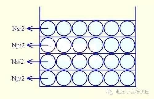 变压器绕组绕在磁芯骨架上,特别是饶组的层数较多时,不可避免的会产生分布电容,由于变压器工作在高频状态下,那么这些分布电容对变压器的工作状态将产生非常大的影响,如引起波形产生振荡,EMC变差,变压器发热等 所以,我们很有必要对变压器的分布电容狠狠的研究一把 分布电容既然有危害,那么我们就要设法减小这个分布电容的影响,首先我们来分析下分布电容的组成 变压器的分布电容主要分为4个部分:绕组匝间电容,层间电容,绕组电容,杂散电容,下面我们来分别介绍 首先讲讲绕组匝间电容 我们知道电容的基本构成就是两块极板,当两块极板加上适当的电压时,极板之间就会产生电场,并储存电荷。 那么,我们是否可以把变压器相邻两个绕组看成连个极板呢?答案是可以的,这个电容就是绕组匝间电容。 以变压器初级绕组为例,当直流母线电压加在绕组两端时,各绕组将平均分配电压,每匝电压为 Vbus/N,也就是说每匝之间的电压差也是Vbus/N。当初级MOS管开关时,此电压差将对这个匝间电容反复的充放电,特别是大功率电源,由于初级匝数少,每匝分配的电压高,那么这个影响就更严重。 但总的来说,匝间电容的影响相对于其他的分布电容来说,几乎可以忽略。 要减小这个电容的影响,我们可以从电容的定义式中找到答案: C=εS/4πkd 其中 C:绕组匝间电容量 ε:介电常数,由两极板之间介质决定 S:极板正对面积 k:静电力常量 d:极板间的距离 从上式我们可以看出,可以选用介电常数较低的漆包线来减小匝间电容,也可以增大绕 组的距离来减小匝间电容,如采用三重绝缘线。 接下来我们来看看看绕组的层间电容,这里的层间电容指的是每个单独绕组各层之间的电容。 我们知道,在计算变压器时,一般会出现单个绕组需要绕2层或2层以上,那么此时的每2层之间都会形成一个电场,即会产生一个等效电容效应,我们把这个电容称为层间电容。 如下图: 电容C就是层间电容 层间电容是变压器的分布电容中对电路影响最重要的因素,因为这个电容会跟漏感在MOSFET开通于关闭的时候,产生振荡,从而加大MOSFET与次级Diode的电压应力,使EMC变差。 既然有害处,那么我们就需要想办法来克服它,把它的影响降低到可以接受的范围。 方法一:参照6楼的公式,在d上作文章,增大绕组的距离来减小层间电容,最有代表性的就是采用三重绝缘线。 但这个方法有缺点,因为线的外径粗了之后,带来的后果就是绕线层数的增加,而这不是我们想看到的。 方法二:可以通过选择绕线窗口比较宽的磁芯骨架,因为绕线窗口宽,那么单层绕线可以绕更多的匝数,也意味着可以有效降低绕线的层数,那么层间电容就有效降低了。 这个是最直接的,也是最有效的。 但同样有缺点,选择磁芯骨架要受到电源结构尺寸的限制。 方法三:可以在变压器的绕线工艺上来作文章 可以采用交叉堆叠绕法来降低层间电容,如下图 此种绕法有个显著缺点,会增加初次级之间的耦合面积,也就是说会加大初次级绕组之间的电容,使EMC变差,有点得不偿失的感觉。 方法四:还是在绕制工艺上作文章 先来看普通的绕法 如上图,这个是我们常用的绕法(也叫U形绕法),我们可以清楚的看到,第1匝与第2N匝之间的压差将非常大,在初中我们学过的物理上有讲,Q=C*U,压差越大,那么在这个电容上储存的电荷就越多,那么这个地方的干扰电压斜率将非常大,也就是说在这个地方形成的干扰就越大。 我们可以采用Z形绕法来降低这个影响 Z形绕法(也叫折叠绕法)如下 从上图我们可以看到,此种绕法可以显著降低电压斜率,对EMC时非常有利的。 缺点就是绕制工艺相对复杂点。 接下来说说绕组电容 顾名思义,绕组电容就是指绕组之间产生的电容,比如说初级绕组Np与次级绕组Ns之间的电容 此电容由于存在于初次级绕组之间,对电路的EMI是相当不利的,因为初级产生的共模电流信号可以通过这个电容耦合到次级中去,这就造成了非常大的共模干扰;而共模干扰可能会引起电路噪音或者输出的不稳定。 解决的方法一般就是在初次级之间加一个屏蔽层,并且将这个屏蔽层接到电路中的某点,来降低此电容的影响 一般把这种屏蔽层称为法拉第屏蔽层,一般由铜箔或绕组构成 在用铜箔时,我们一般用0.9T,或者1.1T,不选择1T,因为1T的话,容易短路。 那为何不能短路呢,短路会带来什么样的后果? 将磁力线短路了,那么电感就接近零,再反射到初级,那么初级的电感也为零,这个时候初级是通电的,结果……“砰”就炸机了。