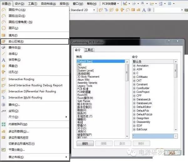 说说AD09PCB设计中一个特实用的技巧(创建常用快捷键篇)现在开讲1、打开AD09软件创建一个PCB文件2、按下B C键会弹出下图对话框3、可以选着上面菜单里任意一个来进行快捷键创建,这里我们那实心填充来做例子4、双击 ...