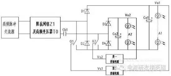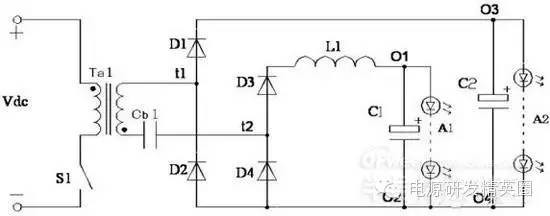 LED 灯作为一种新型节能和无污染光源,由于其特有的发光照明特性,在现代照明应用中发挥着革命性的作用。作为LED 照明产业链中最为核心的部件之一,LED 驱动电源的驱动控制技术所存在的可靠性低、成本高等典型问题一直制约着LED 照明的发展。对于多路LED 驱动电源技术的开发与可靠性研究是当前业界的一个重要课题。 1、LED 驱动现状分析 国内外通用LED 照明的一个显著特点是,光源通常由数量较大的多颗LED 芯片构成,LED自身的特性决定了LED适合恒流驱动,这一点已得到国内外专家学者的共识。LED驱动方式主要是单路恒压输出(光源内置恒流源)、单路恒流输出、单路恒压源配置多路DC/ DC 恒流输出等方案。 1.1 单输出恒流驱动 将LED光源作为单组负载由单输出电源进行驱动是最简单的LED驱动控制方式。构成LED 光源的多颗LED 有多种连接方式。下图1所示的是所有的LED负载串联的连接方式,单输出电源为恒流源特性驱动LED 灯。由于光源串联,因此不存在均流问题,但当LED串联数量较大时,光源电压将增高,过高的光源电压要求灯具整体符合安全标准的绝缘成本增高,灯具散热器和绝缘要求越高,热阻也越大,散热效果变差对LED 灯寿命会产生影响。 ![]() 作为改进,如下图2所示的LED灯为网格状排列结构,这种结构可避免光源的电压过高,当并联LED数量较大时,单颗灯开路,对整个LED灯的影响较小,但这种单颗LED直接并联的方式,LED的电流均衡性差,造成LED光源可靠性降低;同时其中一个LED 短路,与之并联的LED 都将熄灭。 ![]() 如下图3 所示的结构,LED串联后再相互并联,在没有LED失效的情况下,该结构均流特性好于图2所示的网格状结构,但如果部分LED发生短路故障时,会造成多串LED 间严重的电流不均衡。 ![]() 以上分析可见,单输出恒流驱动,应用中有一定的局限性,尤其是LED 光源并联的联接方式对光源的使用寿命和可靠性将产生较大影响。 1.2 多输出恒流驱动 如下图4 所示的电路结构,每组LED 负载由独立恒流源特性的驱动控制方式是一种较理想的方案,这一方面解决了多路输出间的电流不均衡问题,另一方面也克服了前述单输出恒流驱动的缺点,但该方案的驱动效率相对较低。 ![]() 目前较普遍采用的LED 多路驱动方案如下图5所示,在单输出恒压源的输出端口,配置若干级非隔离DC/ DC 变换器,每路LED负载由单独的DC/DC变换器实现恒流驱动控制。该方案存在的缺点是,DC/ DC 变换器电路较为复杂,成本相对偏高,可靠性偏低;每增加一级DC/ DC 变换器,驱动效率相应降低,且易伴生电磁干扰(EMI);不同类型光源的每路LED 负载的电压、电流及功率存在差异,通用DC/ DC 变换器的设计很难标准化,给产业化带来很大不便。 ![]() 2、新型多路LED 驱动电源关键技术研究 研究认为,LED 在利用电容实现多路恒流驱动的情况下,同时参与电路谐振,改变变换器特性,更容易实现LED 整体的稳定性和可靠性,同时在成本上可以得到大幅度的降低。提出三种新技术方案: 2.1 两级变换实现LED 多路驱动 如下图6 所示主电路采用了两级变换实现对LED的多路驱动,电路包含高频脉冲交流源、阻抗网络Z1 和高频变压器T0、高频谐振电容Cb1、双路整流滤波电路和LED 负载。阻抗网络Z1 的输入为高频脉冲交流源,输出接高频变压器T0原边,变压器副边的一端串联谐振电容Cb1,另一端并联两路整流滤波电路;二极管D1、D4 和二极管D2、D3 分别组成的两个独立的半波整流电路,以及滤波电容Co1、Co2 相应组成两路整流滤波电路;滤波电容Co1 和Co2 分别并联在两路LED 负载两端,两路独立的半波整流电路分别给两路LED 负载提供电源。谐振电容Cb1 一方面与阻抗网络Z1 组成了高频谐振网络,参与主电路谐振,另一方面,当两路LED 负载出现压降不平衡时,还可通过Cb1 来平衡两路LED 的压差,使两路LED 负载工作电流平均值相等。 ![]() 如下图7 所示电路为高频谐振网络的实现方式。阻抗网络包括谐振电感Lr、Lm 和高频变压器原边谐振电容C0,谐振电感Lm 与高频变压器T0 原边并联,该并联环节与谐振电感Lr 和谐振电容C0 串联,Cb1 为变压器副边谐振电容。谐振电感Lr 和Lm 可以是外置的独立电感,Lr 也可以是高频变压器T0 的漏电感,而Lm 则也可以是T0 的励磁电感。由于谐振电容Cb1 参与主电路的谐振变换,改变了增益曲线,其等效折算到变压器原边的取值和原边谐振电容C0 可比,加快了变换器的响应速度,避免由于大容量电容引起在起机等动态条件下输出过冲。 ![]() 2.2 新型正反激电路实现LED 多路驱动 前述技术方案中,高频脉冲交流源必须是正负对称的方波电压脉冲,以保证谐振电容Cb1 在两路负载不平衡时起到较好的均流作用,这样要求前级电路必须是双开关管的桥式电路。作为技术的进一步突破,开发了一种新型的正反激电路多路输出驱动拓扑,如图8 所示,变压器原边采用了单开关管S1,在变压器副边的一个整流回路中串联高频电感L1。当原边开关管S1 导通时,变压器Ta1 储能,副边通过电容Cb1,二极管D3,电感L1,负载A1,二极管D2 构成电流回路,变压器工作在正激状态;当原边开关管S1 关断时,变压器Ta1 释放能量,副边通过二极管D1,负载A2,二极管D4,电容Cb1 构成另一个电流回路,变压器工作在反激状态。在正激回路中,谐振电容Cb1、高频电感L1 谐振,从而使得二极管D2、D3 工作在零电流开关状态,减小二极管的反向恢复损耗,提高效率。当两路负载出现压降不平衡时,电容C
