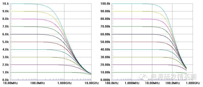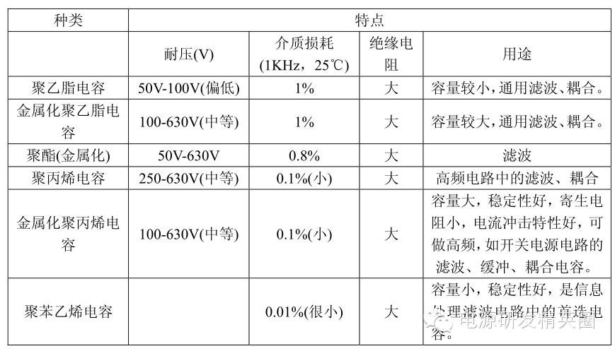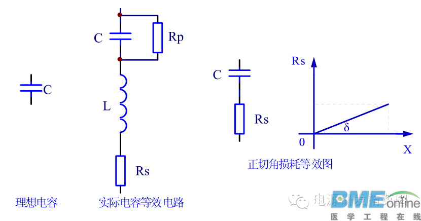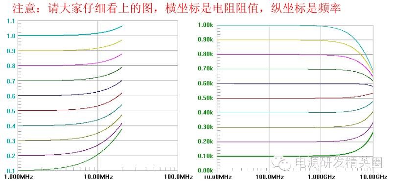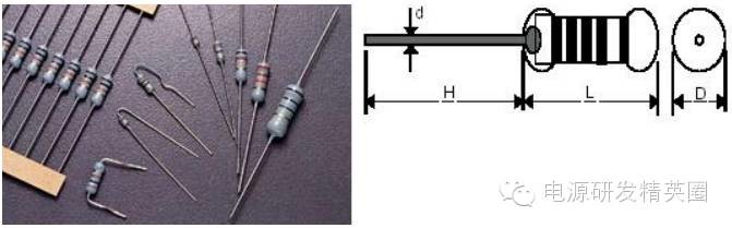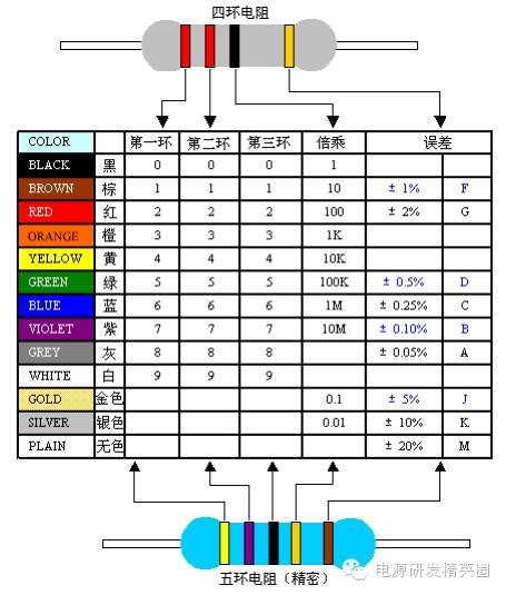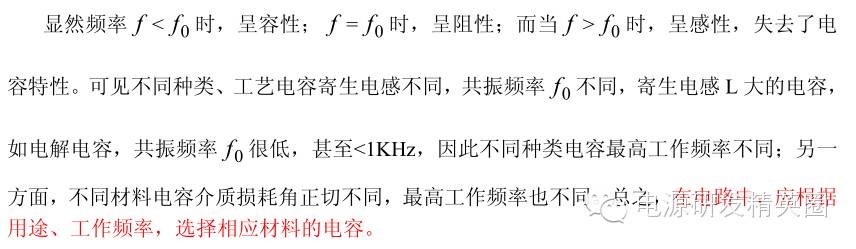 最近周围很多人问了我关于电阻、电容、电感方面这方面的知识,出现了很多疑惑,查了一些资料很多疑惑总算自己也弄得差不多啦。想写出来和大家共勉。写的不对的请大家批评指正!共同进步! 1、电阻 电阻是电子产品、设备中使用最多的电子元件,约占总数的35%,而有些产品如彩电则占50%以上,因此电阻器质量对产品影响很大。根据材料,可将电阻分为:碳膜电阻、金属膜电阻、金属氧化膜电阻、实心(碳质)电阻和绕线电阻。关于电阻的种类、标称值、误差、识别方法、表示方法以及一些主要参数等,我会在后面整理的文档中给出。 下面我们就来看一下关于电阻的等效电路:考虑了引线寄生电感、分布电容后,电阻实际等效电路如下图所示 Ls包括电阻体寄生电感与引线电感。电阻体寄生电感与电阻结构有关,线绕电阻体寄生电感较大,非线绕,尤其是贴片电阻体寄生电感小。引线电感与引线长度有关,因此传统轴向引线封装引线寄生电感较大,无引线贴片电阻引线寄生电感最小。由于寄生电容Cs、寄生电感Ls与电阻结构有关,与阻值大小几乎无关。因此相同材料、相同结构的电阻,其频率特性与阻值关系非常密切。下图描述了Cs=0.02p,Ls=2.9nH某系列金属膜、金属氧化膜电阻的频率特性。![]() ![]() ![]() 通过上面 6 副图,可见对于高阻值电阻,当频率升高时,寄生电容分流作用不能忽略,例如阻值大于 100K 的电阻,只能工作在频率<10MHz 的电路系统中,而阻值大于 1M 的电阻,只能工作在频率≤1MHz 的电路系统中,因此在滤波、包括高速运放电路中尽量避免使用阻值大于 100K 的电阻。 对于低阻值电阻,当频率升高时,寄生感抗不能忽略,例如阻值小于 1Ω的电阻,也只能工作在频率<10MHz 的电路系统中,而阻值小于 0.1Ω的电阻,只能工作在频率≤1MHz 的电路系统中,因此在滤波电路中尽量避免使用阻值小于 1K 的电阻。 因此在高频,尤其是在频率大于>1GHz 的微波电路中,一般均使用几十欧~几百欧的电阻。 2、电容 实际电容等效电路如图所示,寄生电感L包括了由引线寄生电感与内部寄生电感(大小与电容内部结构,即工艺有关)组成,电解电容来说,内部寄生电感远大于引线寄生电感;对瓷片电容,内部寄生电感较小。![]() ![]() 例如相同材料、相同尺寸、相同工艺制作的贴片电容,103 容量与 104 容量电容相同。对电容来说,正切角损耗是一个非常重要的参数:通常在 1KHz 频率下测量,因此寄生电感影响可忽略,根据定义 tanδ=Rs/X=2πfcRs即寄生电阻Rs=X*tanδ=tanδ/2πfcRs举例说明:某材料tanδ=0.1%,则寄生电阻 Rs=0.001/2πC,其中C为电容容量。当C单位取μF时,Rs单位为KΩ。对于1u电容来说,Rs=0.16Ω;当材料正切角降为 0.01%时,则寄生电阻Rs=0.016Ω。容量为 0.1u(损耗电阻 为 0.3Ω,寄生电感 20nH)薄膜电容频率特性如图所示,其共振频率: ![]() ![]() ![]() 有机薄膜电容介质为有机薄膜材料,主要包括涤纶电容、聚丙烯电容(包括金属化聚丙烯电容)、聚乙脂电容(包括金属化聚乙脂电容)、聚酯电容、聚苯乙烯电容、聚碳酸酯电容等,外形如图所示 ![]() 大容量的电解电容,多用 E6 系列标度;小容量电解电容多用 E12 系列标度;容量小于<1uF 以上的无极电容多用 E24 标度。3、电感 电感线圈由铜导线绕制,等效电路如图所示。![]() 寄生电阻Rs包括了绕线电阻、引脚串联电阻以及磁芯损耗电阻三部分组成,其中绕线电阻与线径、长度、铜线电阻率有关;引脚电阻与引线长短、粗细有关;磁芯损耗电阻与磁芯材料特性有关,显然磁芯损耗电阻还与与工作频率有关。寄生电容 C 主要是绕线圈与圈之间的杂散电容(为 pF 级),与绕线工艺有关。 等效导纳 显然:(1) 当角频率ω(频率 f)较小时,呈电感性。 (2) 当角频率ω等于ω0时,导纳 Y 虚部为 0,呈现电阻性,即发生共振。令导纳 Y 虚部为 0,即可求出共振角频率ω0。 (3) 当角频率ω>ω0时,呈容性。![]() 举例说明:某线圈电感 L=10mH,寄生电阻Rs=100Ω,寄生电容 C=2pF,则共振频率 在滤波电路中,电感线圈引线也不宜长,引线寄生电感对滤波有益,但引线寄生电阻会消耗额外功率。4、电阻详细介绍 为了让更多朋友或者网友弄明白电阻,深刻的了解这个使用率非常高的元器件,我再补充谈一下关于电阻的分类,以及表示法等。请大家指正:1、分类:根据材料,可将电阻分为:碳膜电阻、金属膜电阻、金属氧化膜电阻、实心(碳质)电阻和绕线电阻。 第一类:碳膜(包括合成碳膜)电阻 阻值范围宽(1Ω~10MΩ);耐高压;精度差(误差为5%、10%、20%),高频特性较差,常用作放大电路中的偏置电阻、数字电路中的上拉及下拉电阻。由于精度低,因此标称阻值及误差用E6(精度为20%)、E12(精度为10%)、E24(精度为5%)分度。额定功率范围从1/8W到10W,其中耗散功率为1/4W、1/2W,偏差为5%和10%的碳膜电阻器用得最多。热稳定性较差,温度系数典型值为5000ppm/℃。即温度升高1℃,阻值的变化量为百万分之5000,即千分之五。例如一个标称阻值为10K的碳膜电阻,当温度升高10℃时,阻值增加10K×5‰×10,约0.5K。第二类: 金属膜(包括金属氧化膜)电阻用真空镀膜或阴极溅射工艺,将特定金属或合金(例如镍铬合金、氧化锡或氮化钽)淀积在绝缘基体(如模制酚醛塑料)表面上形成薄膜电阻体,构成的电阻器成为金属膜电阻或金属氧化膜电阻。阻值范围也宽(从10~10MΩ),精度高(误差为0.1%~1%),温度系数小(金属膜电阻为10~100ppm/°C;金属氧化膜电阻典型值为300ppm/°C),噪声低,体积小