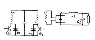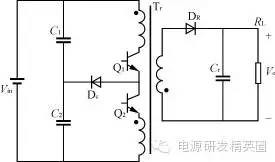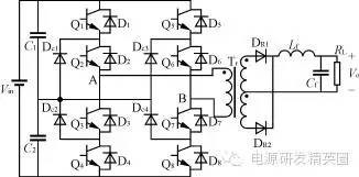 以上六种拓扑被认为是DC/DC变换器的六种基本拓扑,不过也有专家认为最基本的拓扑是buck和boost,其他均由此演变而来.buck变换器为降压变换器,也是最常用的变换器,工程上常用的拓扑基本上是buck族的,如正激,半桥,全桥,推挽等等.boost变换器为buck的对偶拓扑,是升压变换器,常用于小功率板载电源,大功率PFC电路上,对于隔离的boost变换器也有推挽,双电感,全桥等电路.buck-boost是反激变换器的原型,属于升降压变换器.后面三种电路不是很常用,都是升降压变换器.从效率的角度来说,这些变换器的输入和输出等同时候,效率最高.也就是buck最佳占空比为1,boost为0,buck-boost为0.5. 反激 单端反激变换器  双端反激 双端反激 正激变换器 绕组复位正激变换器 LCD复位正激变换器 RCD复位正激变换器 有源钳位正激变换器 双管正激 无损吸收双正激 有源钳位双正激 原边钳位双正激 软开关双正激正激变换器是常用变换器之一,特别在中小功率场合.正激变换器属于单端变换器,所用开关管少,可靠性高,虽然变压器利用率低,但是在较高频率下其变压器磁通摆幅可以与双端变换器相当.但是开关管电压应力较大.双管正激开关管电压应力为输入电压,虽然用了两个管子,但是耐压低,导通电阻也小,损耗也小,同时散热面积相对大了,所以可靠性更好,在中大功率比较常用.但是双管正激实现软开关较难,就目前的一些拓扑来说,都需要辅助开关管来实现.如果能不加入辅助管而实现软开关,一定超有前途. 正激变换器也常用来交错并联,来扩大功率,能减小输出滤波器体积. 推挽 推挽变换器 无损吸收推挽变换器 推挽正激推挽变换器是双端变换器.其实是两个正激变换器通过变压器耦合而来,基本推挽变换器好处是驱动不需隔离,变压器双端磁化,只要两个开关管.但是,变压器绕组利用率低,开关管电压应力为输入两倍,所以一般只适合低压输入的场合.而且有个问题就是会出现偏磁,所以要采用电流型控制等方法来避免. 如果将两个双管正激同样耦合,可以构成四开关管的推挽变换器,也就是所谓的双双管正激.其管子电压应力下降为输入电压.其他等同. 推挽正激是通过一个电容来解决变换器漏感尖峰,偏磁等问题. 半桥拓扑 半桥变换器 不对称半桥变换器 半桥开关管电压应力为输入电压.而且由于另外一个桥臂上的电容,具有抗偏磁能力,但是对于上面一种拓扑,通常还会加隔直电容来提高抗偏磁能力.但是如果采用峰值电流控制,要注意一个问题,就是有可能会导致电容安秒不平衡的问题.要需要其他方法来解决. 半桥变换器可以通过不对称控制来实现ZVS,也就是两个管子交替导通,一个占空比为D,另外一个就为1-D.就是所谓的不对称半桥,通常采用下面一种拓扑.对于不对称半桥可以采用峰值电流控制 谐振半桥LLC 移相半桥全桥 全桥变换器 全桥LLC 移相全桥 全桥变换器在大功率场合是最常用了,特别是移项ZVS和ZVZCS 三电平变换器(three level converter) 选了看起来比较舒服的两个拓扑,这些三电平是半桥演化而来,同样可以演化出多电平变换器,合适高压输入场合.而且可以通过全桥的移相控制方式实现软开关. 五种隔离三电平DC/DC变换器 (a)Forward三电平DC/DC变换器 (b)Flyback三电平DC/DC变换器 (c)Push-Pull三电平DC/DC变换器 (d)半桥三电平DC/DC变换器 (e)全桥三电平DC/DC变换器