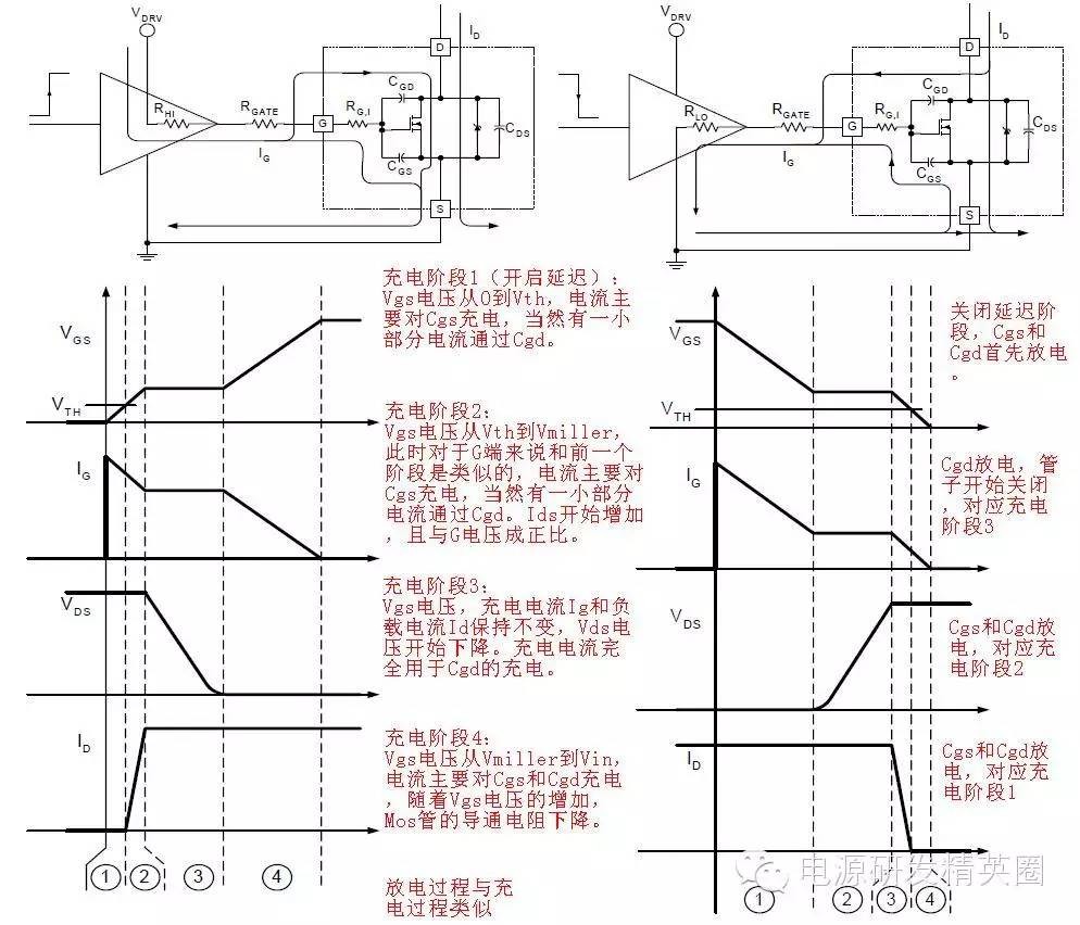 我们先来看看MOS关模型: 功耗的计算:MOSFET 驱动器的功耗包含三部分:1. 由于MOSFET栅极电容充电和放电产生的功耗。与MOSFET栅极电容充电和放电有关。这部分功耗通常是最高的,特别在很低的开关频率时。2. 由于MOSFET 驱动器吸收静态电流而产生的功耗。高电平时和低电平时的静态功耗。3. MOSFET 驱动器交越导通(穿通)电流产生的功耗。由于MOSFET 驱动器交越导通而产生的功耗,通常这也被称为穿通。这是由于输出驱动级的P沟道和N 沟道场效应管(FET)在其导通和截止状态之间切换时同时导通而引起的。