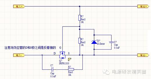 优点:电路简单,成本较低。适用于小电流,对成本要求比较严的产品。缺点:由于二极管的PN结在导通时,存在一个压降,一般在0.7V以下。这个压降就导致这种电路不适合应用在电流较大的电路中,如果电路有10A的电流,那么二极管的功耗就是0.7*10=7W,发热量还是很可观的。在结构紧凑空间有限的产品中,对产品的稳定性或人的使用感受上影响还是比较大的。 上面的防接反电路采用了一个保险丝和一个反向并联的二极管,电源极性正确,电路正常工作时,由于负载的存在电流较小,二极管处于反向阻断状态,保险丝不会被熔断。当电源接反时,二极管导通,此时的电流比较大,就会将保险丝熔断,从而切断电源的供给,起到保护负载的作用。优点:保险丝的压降很小,不存在发热问题。成本不高。缺点:一旦接反需要更换保险丝,操作比较麻烦。3、正接反接都可正常工作的电路: 优点:输入端无论怎样接,电路都可以正常工作。缺点:存在两个二极管的压降。适用于小电流电路。4、N沟道增强型场效应管防接反电路由场效应管制作工艺决定了,场效应管的导通电阻比较小。是现在很常用的开关器件,特别是在大功率的场合。以TO-252封装的IRFR1205为例,其主要参数如下:Vdss=55V,Id=44A,Rds=0.027欧姆;可以看到其导通电阻只有27毫欧。下图就是一个用N沟道场效应管构成的防接反电路 这个电路的最大一个特点就是场效应管的D极和S极的接法。通常我们在使用N沟道的增强型的MOS管时,一般是电流由D极进入而从S极流出。应用在这个电路中时则正好相反。曾经在一个论坛中看到过这个电路,发布这个电路的楼主被众多网友痛批。说是DS之间存在一个二极管根本没法实现。楼主没有注明场效应管的管脚名称,由于存在一个应用场效应管的惯性思维,导致楼主蒙冤。其实场效应管只要在G和S极之间建立一个合适的电压就会完全导通。导通之后D和S之间就像是一个开关闭合了,电流是从D到S或S到D都一样的电阻。在电源极性正确时,电流起始时通过场效应管的稳压管导通,S极电压接近0V。两个电阻分压后,为G提供电压,使场效应管导通,因为其导通阻值很小,就把场效应管内部的二极管给替代了。电源反接时,场效应管内的二极管未到击穿电压不导通。分压电阻无电流流过无法提供G极电压,也不导通。从而起到保护作用。对于电路中并联在分压电阻上的稳压二极管,因为场效应管的输入电阻是很高的,是一个压控型器件,G极电压要控制在20V内,过高的电压脉冲会导致G极的击穿,这个稳压二极管就是起一个保护场效应管防止击穿的作用。对于并联在分压电阻上的电容,有一个软启动的作用。在电流开始流过的瞬间,电容充电,G极的电压是逐步建立起来的。对于并联在场效应管D与S之间的阻容串联电路,我感觉还是值得商榷的。阻容串联电路一般用作脉冲吸收或延时。用在这里要视负载的情况而定,加了或许反而不好。毕竟这会导致在电源在反接的时候会有一个短暂的导通脉冲。也可以用P沟道的场效应管,只是要将器件串在正极的输入端。这里不再描述。 |