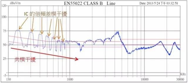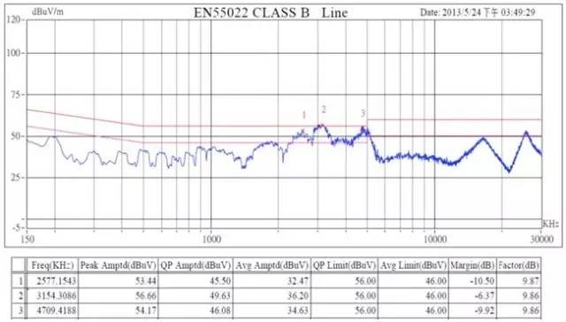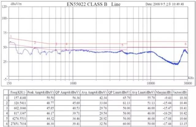 前言电源产品在做验证时,经常会遭遇到电磁干扰(EMI)的问题,有时处理起来需花费非常多的时间,许多工程师在对策电磁干扰时也是经验重于理论,知道哪个频段要对策那些组件,但对于理论上的分析却很欠缺。笔者从事开关电源设计多年,希望能藉由之前对策的经验与相关理论基础做个整理,让目前正从事或未来想从事开关电源设计的人员对电磁干扰防制技术能有初步的认识。 开关电源的电磁干扰测试可分为传导测试与辐射测试,一般开关电源的传导测试频段是指150K~30MHz之间,而辐射干扰的频段是指30M~300MHz,300MHz之后的频段一般皆不是电源所产生,因此大都可以给予忽略。 下面内容章节包括开关电源的传导测试法规,测试与量测方式,基本概念,抑制传导干扰的滤波器设计,布线与变压器设计等章节。 2传导测试的法规传导的法规因产品别的不同,其所适用之条文亦不同,一般是使用欧洲的EN-55022或是美国的FCC part15来定义其限制线,又可以区分为CLASS A与CLASS B两种标准,CLASS A为产品在商业与工业区域使用,CLASS B为产品在住宅及家庭区域使用,笔者所设计的产品为3C的家用电源,传导测试频段为150K~30MHz,在产品测试前请先确认申请的安规为何,不同的安规与等级会有不同的标准线。图1举例为EN-55022 CLASS B的限制线图,红色线为准峰值(QP, Quasi-peak)的限制线,粉红色为平均值(AV, Average)的限制线,传导测试最终的目地,就是测试的机台可以完全的低于其限制线,不论是QP值或AV值;一般在申请安规时,虽然只有在限制线下方即可申请,但多数都会做到低于2dB的误差以预防测试场地不同所导致的差异,而客户端有时会要求必需低于4~6dB来预防产品大量生产后所产生的误差。 图1 图2图2为一量测后的例子,一般量测时都会先用峰值量测,因峰值量测是最简单且快速的方法,量测仪器以9KHz为一单位,在150K~30MHz之间用保持最大值(maximum hold)的方式来得到传导的峰值读值,用此来确认电源的最大峰值然后再依此去抓最高峰值的实际QP,AV值来减少扫描时间,图2的蓝色曲线为准峰值的峰值量测结果,一般在峰值量测完后会再对较高的6个频率点做准峰值(QP)与平均值(AV)的量测,就如同图2所标示。 峰值与准峰值的差别在于:峰值量测是不论时常出现或是偶尔出现的信号皆被以最大值的方式置在接收器的读值中,而准峰值量测是指在一时间内取数次此频段的脉冲信号,若某频率的信号在一段时间内重复出现率较高,才会得到较高之量测值;平均值则是对此频段的振幅取平均值,典型的频谱分析仪可将带宽设定在30Hz左右来得到最真实的平均信号。 QP与AV相较于峰值,其侦测值必然较低,若一开始的峰值量测已有足够的余度则不用再做单点的QP和AV量测。 现在的IC为了EMI传导的防制,在操作频率上都会做抖频的功能,像是IC主频为65KHz,但在操作时会以65KHz正负6K做变化,藉此来将差模倍频的信号打散,不会集中在单一根频率上,如果没有抖频功能,差模干扰在主频的倍频时会呈现单根很扎实的QP与AV,如同图2的157KHz,仪器看到的峰值满高的,但读起来还仍有9dB以上的余度。 3传导的测试与量测方式图3为测试传导的参考图示,此为通嘉内部的传导设备图示,待测物接仿真负载后放于桌面上,经由一输入线材(AC cable)连接LISN(线性阻抗稳定网络)与待测物,再将LISN的信号接至接收器,输入线材不得与地面接触,而待测物的负载需与待测物距离10公分,若周边需接电源时,其电源需接独立电源,不得与待测物使用相同电源,若电源为2PIN输入,则输出负载需接地以仿真系统下地。 LISN(线性阻抗稳定网络)内部线路如图4所示,输入电源来源由左边进入LISN后,经由LF与CF来滤除电源的低频噪声,并由耦合电容CC与侦测电阻RSL/RSN来取得高频信号Vsn,再将此信号经接受器或频谱分析仪来得到其振幅的大小(dBuV)。 图3 图4请记得输入线材不得与地面接触,笔者曾有过输入线材与地面接触与否,读值差了10dB左右的经验;另外,周边仪器的电源需使用干净且与主电源隔离的电源,否则很容易因共地而产生共模干扰,许多测试场地会直接拿一个延长线去使用外接电源给予周边,但此种方式仍有可能因共地而被干扰,若能使其接至另一个LISN是个较好的方式,因LISN内有LF与CF可作信号隔离。 4对策EMI传导的基本概念4.1 差模(Differential mode)信号与共模(Common mode)信号 传导量测接法如图5、图6所示,是由接收器量测L/N/GND之间的频率与振幅大小而成,而信号存在于L与N之间的叫差模信号,如图5所示;而信号存在于L与FG或N与FG之间的叫共模信号,如图6所示,也可以说与FG形成回路的就叫共模信号。 一般电源的输入来源皆是取自L与N,因此在电源的电磁干扰设计中,差模成份的抑制极为重要,尤其是前频段150K~1MHz大多是由开关电源的主频与倍频出来的差模干扰。 图5 图6图7为一未对策前的传导测试结果,前端为IC的操作频率所引起的倍频差模干扰加上本体的共模干扰所形成,由图形可看出每根峰值之间的频率为100KHz,可判断此IC的操作频率为100KHz,而测量的读值是呈现由IC 100KHz的倍频做线性衰减,因此每100KHz就有一根因IC操作频率所造成的差模干扰信号,也可以说在前频段时,共模信号呈线性平面下降,而差模信号则迭加在共模的上方。 图7图8为相同的机台在对策后测试结果,在对策后最差都还有6dB以上的余度,已可符合多数的客户要求。 一般在测试时,必需测试L与N两项,一般L与N的读