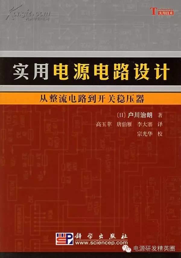 由于教育的问题,独立思考的学生很少,新人都是很茫然的,面对专业都无从下手,看书也没有头脑。所以写个帖子总结一下学习方法推荐给新人。写这篇文章先申明一下,首先方法和书籍并不是对每个人都有效果,你切莫不要以为找到灵丹妙药。这就是为什么我这么多年看到什么好书,好方法后,只推荐给好友的原因。而不认识的不熟悉的人并不推荐,怕引起误会。学习方法和书籍其实是两个相辅相成的东西,进步必须要靠书籍,只有基础扎实了,才能有更大的进步。所以两者并不能分开,那在下就混为一谈了。开关电源设计的基本原理记住一个准则能量守恒,因为他就是一个能量的传递,所以不要搞的那么神秘。我赞成把复杂的事情简单化,这样才能认清事物的本质。现在假设所有的人都是零基础,很多人就算上过大学学过本科的课程,其实基础都不扎实,因为大部分大学的课程只是为了应付考试,并不是为了把某个知识学懂,所以在这里假设都是零基础。 下面的书籍都是经过精心顺序设计,按照顺序来看对你自己有好处,不要跳跃,否则你失落感很大的。第一步(或者说推荐的第一套书)《晶体管电路设计》 上 下 著:[日]铃木雅臣 科学出版社出版 推荐原因:这本书讲的通俗易懂,实践偏于理论,这样容易激发初学者的兴趣。中专,高中毕业的人都能看懂。《电子电路基础高性能模拟电路和电流模技术》 编著:张凤言 高等教育出版社出版 推荐原因:当你有点入门后,看这本书提高很好,因为这本书的大部分内容是取材美国《模拟集成电路设计》GARY 的章节,语言浅显但又不失深度,让你很容易将基础提高,这本书要反复的看,多看几遍,这是我提倡,任何书籍都要多看几遍,在不同的时间段,不同的年龄段,面对不同的问题时候,再重新看这些书,会有不同的收获!!!第二步 (推荐第二套书)《开关电源设计入门与实例解析》 著:沙占友 王彦朋 安国臣 孟志永 中国电力出版社出版 推荐原因:通俗易懂,实际例子很多,基本流程都有,这样容易在你大脑里有一些设计的概念了。《开关电源入门》 著:Raymond A Mack Jr 谢运祥 翻译 人民邮电出版出版 推荐原因:在这个阶段你该吸收一点先进之邦的先进理念,不过你这个时候要学会一点思考能力,仔细辩该书与国内作者的方法。《开关电源优化设计》 著:沙占友 王彦朋 马洪涛 李玮 中国电力出版社出版 推荐原因:例子很多,例子的细节把握的很好,初级阶段该基础到的都写了,比较适合在这个阶段学习。第三步 (推荐第三套书)《开关电源设计指南》著:Marty Brown 徐德鸿 沈旭 杨成林 周邓燕 翻译 机械工业出版社出版 推荐原因:先进之邦的通俗易懂教程,快速入门的好手,里面每一步都很详细《实用电源电路设计》 著:户川治朗 高玉萍 唐伯雁 李大寨 翻译 科学出版社出版 推荐原因:这本书不用从头到尾看,参考,按照该书目录来寻找你自己需要的章节内容,没必要从头看,在这个阶段,这本书只适合参考。第四步 (推荐第四套书)《精通开关电源设计》 著:Sanjaya Maniktala 王志强 翻译 人民邮电出版社出版 推荐原因:经典中的经典,虽然难,还是强烈建议你啃完,没事的时候看看,就当看小说,希望你每多看一遍有更深的了解。《开关电源设计与优化》著:Sanjaya Maniktala 王志强 郑俊杰 翻译 电子工业出版社出版 推荐原因:哦,原来前面那本书的基础在这本书里体现的淋漓精致。《开关电源设计》第三版 著:Abraham I Pressman Keith Billings Taylor Morey 王志强 肖文勋 虞 龙 翻译 电子工业出版社出版 推荐原因:鼻祖的书,第一本将开关电源成书的,比较系统的成书的书。强烈要求每个人都必须看个三遍以上第五步 (推荐第五套书)与第四套书同步看很多人没有学过高等数学,还有兄弟打电话给我,让我推荐高等数学这方面的书。说老实话,这里推荐的是面向中专和高中毕业的零基础起步书籍,一步一步的上升来参考的。而高等数学本身是一个很难的东西,但是现代科技,必须要依赖高等的数学作为研究和分析的手段来作以辅助。《数学分析新讲》 编著:张筑生 北京大学出版社