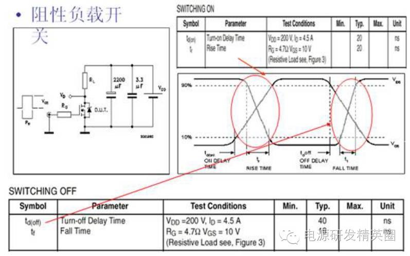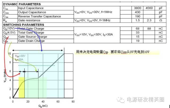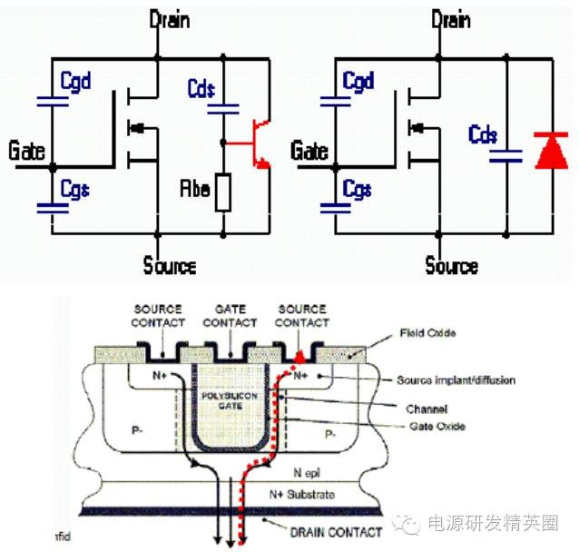 近些年来,作者走访过很多客户,结识了大量的在一线从事电源设计和开发的工程师,在和他们的交流过程中,也遇到过许多技术的问题,然后大家一些分析这些问题产生的原因,并找到相应的解决方法。在这个过程中,我遇到过困惑迷茫,也体验过成功喜悦,并和许多工程师成有为朋友,他们是我人生路的最坚实的快乐和财富,他们一直鼓励我,将遇到的许多经验分享出来,现在整理一些功率MOSFET典型的应用问题,希望对广大的电子工程师有所帮助。 问题1:在MOSFET的应用中,主要考虑的是哪些参数?在负载开关的应用中,MOSFET导通时间的计算,多少为佳?PCB的设计,铜箔面积开多大会比较好?D极、S极的铜箔面积大小是否需要一样?有公式可以计算吗? 回复:MOSFET主要参数包括:耐压BVDSS,Rdson,Crss,还有VGS(th), Ciss, Coss;同步BUCK变换器的下管,半桥和全桥电路,以及有些隔离变换器副边同步整流MOSFET中,还要考虑内部二极管反向恢复等参数,要结合具体的应用。 下面的波形为感性负载功率MOSFET开通的过程,Rg为MOSFET内部栅极电阻,Ron为MOSFET的栅极和驱动电源VCC之间的串联大电阻的和:,包括栅极外部串联的电阻以及PWM驱动器的上拉电阻。 VGS(th)和VGP在MOSFET的数据表中可以查到,有些数据表中没有标出VGP,可以通过计算得到平台的电压值。 产生开通损耗的时间段为t2和t3,t1时间段不产生开通损耗,但产生延时。 ![]() 在负载开关的应用中,要保证在t3时间后,输出电容充电基本完成,就是电容的电压基本等于输入电压,在这个过程中,控制平台的电压VGP,就相当于控制了最大的浪涌电流,浪涌电流就不会对系统产生影响。因此导通时间要多长,由输出的电容和负载的大小决定。 具体的计算步骤是:设定最大的浪涌电流Ipk,最大的输出电容Co和上电过程中输出负载Io。如果是输出电压稳定后,输出才加负载,则取:Io=0。 Co×dUo/dt+Io=Ipk (4) 由(4)式可以算出输出电容充电时间t。负载开关的应用,通常在D和G极并联外部电容,因此,t3时间远大于t2,t2可以忽略,因此可以得到:t=t3,由(3)式可以求出D和G极并联外部电容值。 然后由上面的值,对电路进行实际的测试,以满足设计的要求。负载开关的稳态功耗并不大,但是瞬态的功耗很大,特别是长时间工作在线性区,会产生热失效问题。因此,PCB的设计,特别是贴片的MOSFET,要注意充分敷设铜皮进行散热。 在MOSFET的数据表中,热阻的测量是元件装在1平方英2OZ铜皮的电路板上。Drain的铜皮铺在整个1平方英寸、2OZ铜皮的电路板。实际应用中,Drain的铜皮不可能用1平方英、2OZ铜皮的电路板,因此,只有尽可能的用大的铜皮,来保证热性能。具体的降额值可能值可以参见以下的图。 如果是多面板,最好D和S极对应铜皮位置的每个层都敷设铜皮,用多个过孔连接,孔的尺寸约为0.3mm。 ![]() 问题2:功率MOSFET的Qgs,Qgd,Ciss,Crss,Coss,tr和tf的关系? 回复: 如下图,在一定的测试条件下,Qgs与Ciss相关,Qgd与Crss相关,Qg与Crss,Ciss都相关,驱动的电压决定其最终的电荷值。Qgs和Qgd都是基于相关的电容的计算值。 tr和tf如下图,对于上升和下降的延时,和Crss,Ciss都相关。注意此时的测量条件是阻性负载。如果是感性负载,电感电流不能突变,那么由于电感的续流,这个时间就和负载的特性相关了。 上升延时tr:上升延时的定义是在MOSFET的开通过程中,VGS的电压上升,从其10%值开始,到VDS下降到为10%VDS值为止。在开通的过程中,VGS上升米勒电容平台前的时间由Ciss决定,米勒电容平台的时间Crss由决定,过了米勒电容平台到VDS下降到为10%VDS的时间又由Ciss决定。下降延时tf和tr定义类似。 ![]() ![]() 问题3:AOD4126的数据表中,红色标注的ID、IDSM、IDM有什么区别?PD和PDM的值是否有标错?另外,关于RθJA和RθJC,作为用户要按照备注中的哪一项判定?对于同样规格的MOSFET,双通道和单通道相比,优势在哪里?是不是简单的Rdson减半、ID加倍等参数合成? 回复:MOSFET的数据表中,ID和IDSM都是计算值,其中,ID是基于RθJC和Rdson以及最高允许结温计算得到的,IDSM是基RθJC和Rdson以及最高允许结温计算得到的。PD和PDM也是基于上述条件的计算值。 在实际的应用中,由于MOSFET所用的散热条件不一样,因此,在开关过程中,还要考虑动态参数,所以,ID没有实际的意义。 RθJA和RθJC是二个不同的热阻值,具体的定义在数据表中有详细的说明,注意的是,数据表中的热阻值,都是在一定的条件下,测量得到的。实际应用过程中,由于条件不同,得到的测量结果并不相同。 使用双通道和单通道的MOSFET,要综合考虑开关损耗和导通损耗,Rdson不是简单的减半,因为二个功率管并联工作,不平衡性的问题永远是存在的,而且,动态的开关的过程中,容易产生动态的不平衡性。如果不考虑开关损耗,仅仅考虑导通损耗,那么还是要对Rdson作一定的降额。 问题4:不同的测试的条件为影响MOSFET的数据表中的VGS(th)和BVDSS吗?ATE是如何判断的? 回复:不同测试条件,结果会不同,因此,在数据表中,会标明详细的测试条件。对于AET的测试,以VGS(th)为例,它和Igss相关,如AON6718L,当G和S极加上最大20V电压,注意到VDS=0V,如果Igss小于100nA, 由表明通过测试。 不同的公司ST,Fairchild,IR,Vishay等,可能使用不同的Igss,如IR1010使用200nA,IR3205使用100nA。目前,行业内使用100nA更通用。同样的,BVDSS的测试条件:ID=250uA, VGS=0V,如果ID 越大,BVDSS电压值越高。 问题5:一个100V的MOSFET,VGS耐压大概只能到30V。在器件处于关断的时刻,VGD大概能到100V,是因