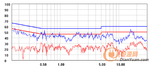 EMI主要来源:高di/dt,电感器,开关管,功率二极管等。 先聊聊传导:顾名思义通过导线污染电网影响同一电网中的使用设备。 ![]() 我们先看小功率的,在调试中主要就是上图中3个地方: 1、π滤波,小功率12W以内的我基本都用π滤波,再大我就会选用X电容+共模电感了。 我的调试经验:下面为我调试中感觉有用的方法。 1-1:0.5M以前可以试一下前级选用小一点的电容,后级选用大一点的电容。 2个4.7uF 前级4.7uF后面6,8uF 可以用老化的方式去试一下是否此处问题,老化后有所降低基本就此问题,有的认证机构不接受老化后的结果,所以这里要注意。 1-2:0.5M前调整电感量 ![]() π电感2mH ![]() 改为1mH。 π滤波不像X电容+共模电感越大越好,有时候反而小点好。 1-3:10M以后R16放电阻 ![]() 未加放电电阻 ![]() 加上放电电阻 1-4:变压器加屏蔽。主要是0.5M到5M ![]() 初次级未加屏蔽 ![]() 加上屏蔽 1-5:增加或加大Y电容容量,改变Y电容位置。 主要0.5M-5M ![]() 102Y电容 ![]() 换成222Y电容 大功率 ![]() 1、变压器和Y电容同上。 2、X电容 3、共模电感 3、布线和结构 加大X电容和共模电感:对比图1 主要还是在0.5M前 ![]() 加大X电容和共模电感 ![]() 下面我们来看看AV值超的情况 ![]() 检查发现MOS于LN太近 ![]() 内置MOS靠近保险丝处为MOS引脚 更改 ![]() 在测试传导 ![]() OK很漂亮了 我找到一个比较明显的 先上30mH的图: ![]() 再上改到69mH的 ![]() 变压器和LN太近,因为结构问题LN弹片和连接线在变压器正上方,图片不太方便传。 ![]() 这是已经有说改善的一张图裸图没找到,基本和上面MOS和LN太近一样,这个改善是在横向包了一圈铜箔接地,我们再上横向纵向都接地的图下图。 ![]() 再上一个变压器LN干扰的案例 ![]() 查看发现 ![]() 黑线接整流二极管,白线接地,把黑线放在白线右侧就OK。上图 ![]() 辐射主要就是di/dt,首先画板要注意关键路径,初级和次级的关键路径,也就是大功率的回来输入点解到变压器在经过MOS CS电阻回大电解的地,这是一次侧,二次侧变压器到输出点解回路,辐射顾名思义空间传播干扰,我们是消费类产品说以过民用标准classB EN55022B,大功率小功率整改方法大致相同我们就直接上个PSR原理图。 ![]() 先上一个超标的图 ![]() 此图是110V输入 垂直 88M超标了830M的不用管手机信号串进去了, 现在ds并个101/1KV电容试下 ![]() 很好已经看见余量了继续。输出二极管套个磁珠 ![]() 又下来一点我们再把磁珠传导Y电容上 ![]() 已经将近3个dB了。 换不同品牌MOS 先上XXMOS ![]() 33.76M超了,换一MOS品牌 ![]() 下面再看一个MOS并电容的 原图: ![]() DS并一颗101/1KV贴片电容后