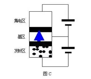 随着科学技的发展,电子技术的应用几乎渗透到了人们生产生活的方方面面。晶体三极管作为电子技术中一个最为基本的常用器件,其原理对于学习电子技术的人自然应该是一个重点。三极管原理的关键是要说明以下三点:1、集电结为何会发生反偏导通并产生Ic,这看起来与二极管原理强调的PN结单向导电性相矛盾。2、放大状态下集电极电流Ic为什么会只受控于电流Ib而与电压无关;即:Ic与Ib之间为什么存在着一个固定的放大倍数关系。虽然基区较薄,但只要Ib为零,则Ic即为零。3、饱和状态下,Vc电位很弱的情况下,仍然会有反向大电流Ic的产生。很多教科书对于这部分内容,在讲解方法上处理得并不适当。特别是针对初、中级学者的普及性教科书,大多采用了回避的方法,只给出结论却不讲原因。即使专业性很强的教科书,采用的讲解方法大多也存在有很值得商榷的问题。这些问题集中表现在讲解方法的切入角度不恰当,使讲解内容前后矛盾,甚至造成讲还不如不讲的效果,使初学者看后容易产生一头雾水的感觉。笔者根据多年的总结思考与教学实践,对于这部分内容摸索出了一个适合于自己教学的新讲解方法,并通过具体的教学实践收到了一定效果。虽然新的讲解方法肯定会有所欠缺,但本人还是怀着与同行共同探讨的愿望不揣冒昧把它写出来,以期能通过同行朋友的批评指正来加以完善。一、 传统讲法及问题:传统讲法一般分三步,以NPN型为例(以下所有讨论皆以NPN型硅管为例),如示意图A。1.发射区向基区注入电子;2.电子在基区的扩散与复合;3.集电区收集由基区扩散过来的电子。”(注1) 问题1:这种讲解方法在第3步中,讲解集电极电流Ic的形成原因时,不是着重地从载流子的性质方面说明集电结的反偏导通,从而产生了Ic,而是不恰当地侧重强调了Vc的高电位作用,同时又强调基区的薄。这种强调很容易使人产生误解。以为只要Vc足够大基区足够薄,集电结就可以反向导通,PN结的单向导电性就会失效。其实这正好与三极管的电流放大原理相矛盾。三极管的电流放大原理恰恰要求在放大状态下Ic与Vc在数量上必须无关,Ic只能受控于Ib。问题2:不能很好地说明三极管的饱和状态。当三极管工作在饱和区时,Vc的值很小甚至还会低于Vb,此时仍然出现了很大的反向饱和电流Ic,也就是说在Vc很小时,集电结仍然会出现反向导通的现象。这很明显地与强调Vc的高电位作用相矛盾。问题3:传统讲法第2步过于强调基区的薄,还容易给人造成这样的误解,以为是基区的足够薄在支承三极管集电结的反向导通,只要基区足够薄,集电结就可能会失去PN结的单向导电特性。这显然与人们利用三极管内部两个PN结的单向导电性,来判断管脚名称的经验相矛盾。既使基区很薄,人们判断管脚名称时,也并没有发现因为基区的薄而导致PN结单向导电性失效的情况。基区很薄,但两个PN结的单向导电特性仍然完好无损,这才使得人们有了判断三极管管脚名称的办法和根据。问题4:在第2步讲解为什么Ic会受Ib控制,并且Ic与Ib之间为什么会存在着一个固定的比例关系时,不能形象加以说明。只是从工艺上强调基区的薄与掺杂度低,不能从根本上说明电流放大倍数为什么会保持不变。问题5:割裂二极管与三极管在原理上的自然联系,不能实现内容上的自然过渡。甚至使人产生矛盾观念,二极管原理强调PN结单向导电反向截止,而三极管原理则又要求PN结能够反向导通。同时,也不能体现晶体三极管与电子三极管之间在电流放大原理上的历史联系。二、新讲解方法:1、切入点:要想很自然地说明问题,就要选择恰当地切入点。讲三极管的原理我们从二极管的原理入手讲起。二极管的结构与原理都很简单,内部一个PN结具有单向导电性,如示意图B。很明显图示二极管处于反偏状态,PN结截止。我们要特别注意这里的截止状态,实际上PN结截止时,总是会有很小的漏电流存在,也就是说PN结总是存在着反向关不断的现象,PN结的单向导电性并不是百分之百。 为什么会出现这种现象呢?这主要是因为P区除了因“掺杂”而产生的多数载流子“空穴”之外,还总是会有极少数的本征载流子“电子”出现。N区也是一样,除了多数载流子电子之外,也会有极少数的载流子空穴存在。PN结反偏时,能够正向导电的多数载流子被拉向电源,使PN结变厚,多数载流子不能再通过PN结承担起载流导电的功能。所以,此时漏电流的形成主要靠的是少数载流子,是少数载流子在起导电作用。反偏时,少数载流子在电源的作用下能够很容易地反向穿过PN结形成漏电流。漏电流只所以很小,是因为少数载流子的数量太少。很明显,此时漏电流的大小主要取决于少数载流子的数量。如果要想人为地增加漏电流,只要想办法增加反偏时少数载流子的数量即可。所以,如图B,如果能够在P区或N区人为地增加少数载流子的数量,很自然的漏电流就会人为地增加。其实,光敏二极管的原理就是如此。光敏二极管与普通光敏二极管一样,它的PN结具有单向导电性。因此,光敏二极管工作时应加上反向电压,如图所示。当无光照时,电路中也有很小的反向饱和漏电流,一般为1×10-8 1×10 -9A(称为暗电流),此时相当于光敏二极管截止;当有光照射时,PN结附近受光子的轰击,半导体内被束缚的价电子吸收光子能量而被击发产生电子空穴对,这些载流子的数目,对于多数载流子影响不大,但