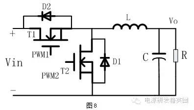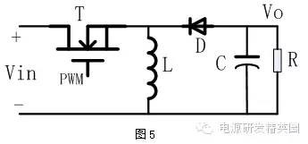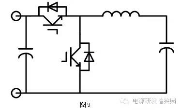 1、 摘要开关电源已经深入到国民经济的各个行业当中,设计师或是自行设计电源或是购买电源模块,但是这些电源都离不开电源的各种电路拓扑。本文先介绍了开关电源的三大基础拓扑:Buck、Boost、Buck-Boost,并就这三者拓扑之间进行了简单地组合,得到了非常巧妙的电路,例如:正负输出电源、双向电源等,能够满足诸如运放供电、电池充放电等某些特殊的需求。2、 开关电源基础拓扑开关电源三大基础拓扑为:Buck、Boost、Buck-Boost,大部分开关电源都是采用这几种基础拓扑或者其对应的隔离方式,下面以电感连续模式进行简单介绍。2.1 Buck降压型Buck降压型电路拓扑,有时又称为Step-down电路,其典型的电路结构如下图1所示: Buck电路的工作原理为:当PWM驱动高电平使得NMOS管T导通的时候,忽略MOS管的导通压降,等效如图2,电感电流呈线性上升,MOS导通时电感正向伏秒为: 当PWM驱动低电平的时候,MOS管截止,电感电流不能突变,经过续流二极管形成回路(忽略二极管电压),给输出负载供电,此时电感电流下降,如下图3所示,MOS截止时电感反向伏秒为: D为占空比,0 2.2 Boost升压型Boost升压型电路拓扑,有时又称为step-up电路,其典型的电路结构如下图4所示: 同样地,根据Buck电路的分析方式,Boost电路的工作原理为: 0 2.3 Buck-Boost极性反转升降压型Buck-Boost电路拓扑,有时又称为Inverting,其典型的电路结构如下图5所示: 同样地,根据Buck电路的分析方式,Buck-Boost电路的工作原理为: ![]() 3、 Buck与Buck-Boost组合