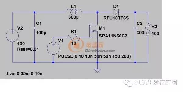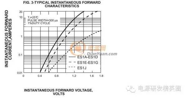 本文摘自电源网的热门帖 工作原因,很久没有发帖了。最近下班回家,回顾了一下当年的课本《半导体功率器件》一书,略有体会,借此机会,和大家一起学习讨论一下。在这里首先看看相对简单的二极管,后续如有机会,继续讨论BJT,MOSFET。 1. 该贴期望以楼主自问自达或者你问我答的形式进行(楼主学识经验不足,答不上来的大家一起讨论,答错了的恳求各位指正) 2. 该贴旨在让经验型的电源工程师从理论上上更了解器件机理,让学院派接触到实际设计中需要考虑的问题。 首先抛出几个问题: 1.肖特基二极管和快恢复二极管有什么区别? 2.反向恢复时间到底是怎么回事? 3.二极管的功耗算平均电流还是有效值电流? 1肖特基二极管和快恢复二极管有什么区别?从根本上说,肖特基二极管和快恢复二极管在物理结构上是不一样的。肖特基二极管的阳极是金属,阴极是N型半导体;快恢复二极管基本结构仍然是普通的PIN二极管,即阴阳极分别为N和P型半导体。物理结构决定了两者的电特性。 1. 耐压较低(通常150V以下),同等耐压,相同电流下,肖特基二极管的正向压降低于快恢复二极管。 看图,同样耐压50V的SS15和ES1A在1A下,SS15的Vf约0.65V,ES1A的Vf约0.85V。 ![]() ![]() 2. 肖特基二极管载流子只有电子,数多子器件理论上没有反向恢复时间,而快恢复二极管本质上和PIN二极管一样,是少子器件的反向恢复时间通常在几十到几百ns。具体什么是反向恢复,在2贴的问题2中将详细讨论。 3. 额定反向耐压下,快恢复二极管的反向漏电流较小,通常在几uA到几十uA;肖特基二极管的反向漏电流则通常达到几百uA到几十mA,且随温度升高急剧增大。 大家继续补充。 2反向恢复时间到底是怎么回事?反向恢复时间基本的定义是:二极管从导通状态转换成关断状态所需的时间。 从定义可以看出,二极管导通状态下突然施加一个反偏电压,它是不能马上截止的。我们从根本上来看看这是为什么。 ![]() 上面这个图就是我们最常用的PN结二极管最基本结构。其中重掺杂的P型半导体作为阳极,重掺杂的N型半导体作为阴极,为了承受更高的反向耐压,中间有一段较长的区域为接近本征半导体的轻掺杂N型区域。 PN结加正偏电压时,在电场作用下,P区的空穴向N区扩散,N区的电子向P区扩散,于是形成正向电流。对于P区而言,N区过来的电子是少子,同样对于N区而言,P区过来的空穴也是少子。因此,PN结二极管实际上是通过少子来传送电流的,即少子器件。 可见,在正向导通的时候,P区存在大量电子,N区存在大量空穴。 下面以CCM的boost为例,结合仿真来分析一下二极管的反向恢复问题。 ![]() 仿真参数如图所示,下面给出稳态下一个周期的仿真结果图: ![]() 其中V002为MOSFET的Vgs,V(N003,N002)为二极管的Vka,Id(M1)为MOSFET的漏极电流,I(D1)为二极管的阳极流入电流。 当新的开关周期到来,MOSFET驱动电压上升,电感电流开始从MOSFET流过,由于电感电流在短时间内基本不变,因此二极管开始流过的电流开始减小。二极管电流减小到0的时刻即为反向恢复开始的时刻。 由于二极管内部存储的少子导致二极管不能阻断电流,随着MOSFET驱动电压的上升,MOSFET DS之间回路阻抗降低,二极管开始反向流过电流,即少子一反相电流的形式被抽取,直到MOSFET DS之间电压开始下降(开始进入米勒平台),即二极管开始电压开始反偏时,反向电流达到最大值。 此后,反向电流开始减小,二极管反偏电压开始升高,直到MOSFET Vds下降到0,二极管承受全部的反向电压。 从仿真图可以看出,反向恢复过程中,二极管流过较大的反向电流同时承受了较大的反向电压,因此造成了很大的反向恢复损耗。在CCM PFC中,为了降低这个损耗,通常的超快恢复二极管(标称反向恢复时间十几到几十ns)仍然差强人意,需要用到SiC二极管。常用的SiC二极管通常是肖特基结构,反向恢复时间远低于PIN二极管。 3.二极管的功耗算平均电流还是有效值电流? 问题讨论的是二极管的通态损耗,不考虑反向恢复损耗。答案是平均电流。为什么呢? 首先,二极管的基本特性是单向导通,所以电流是单向的(不考虑反向恢复),而二极管的导通压降通常认为是基本不变的,显然,对一定时间内的电流和电压乘积积分,结果就是平均电流和正向压降的乘积,即二极管通态损耗是以平均电流计算的。 那有效值电流是否毫无意义呢?也不见得。纯阻性的损耗通过有效值计算,二极管除了PN结外,还有封装的接触电阻、引线电阻,这些部分的损耗,就是通过有效值来评估的,不过相对于结压降,封装带来的压降大多数情况下可以忽略。 4其他讨论为什么有的二极管温度有的是150℃,有的175℃,有的125℃?厂家通过什么方面区别? 决定最高工作温度的,更多是封装材料和封装工艺,而非半导体本身。对于Si材料,175度通常是没有问题的,SiC和GaN材料,耐温就更高了。同样耐压,同样电流的二极管,PIN的占用wafer面积要远小于肖特基二极管。 关于二极管的耐压: 肖特基的耐压通常最高做到200V(但是台湾的竹懋和PFC品牌据说可以做到300V,而且VF值只有0.3几)其实肖特基的反向恢复时间快,无非就是它的芯片做的非常薄(电流跟晶圆面积大小有关,耐压根晶圆厚度有关),通俗一点讲是A到B之间的距离较短。而超快恢复(SF,MUR,ER系列)的耐压可以做到600V,快恢复(FR,HER,RS系列)的耐压可以做到1000V。 并不是肖特基的耐压最高只能做到200V,而是因为硅材料的肖特基二极管,耐压