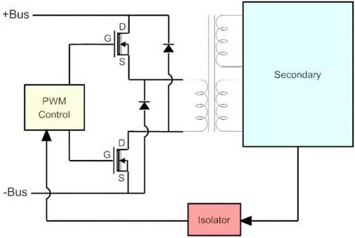 当然了,我们只是分析某种模式下到底需要多少元器件,事实上当工程师们在考虑采用哪种模式时还会收到很多因素制约。 目前最流行的两种模式时双管正激(two-transistor forward)和全桥式(push-pull)设计,两者均使用了两颗开光管。这些被安置在一次侧散热片上的开光管我们已经在上一页有所介绍,这里就不做过多赘述。 以下是这五种模式的设计图: ![]() 单端正激(Single-transistor forward configuration) ![]() 双管正激(Two-transistor forward configuration) ![]() 半桥(Half bridge configuration) ![]() 全桥(Full bridge configuration) ![]() 推挽(Push-pull configuration) 变压器和PWM控制电路 ●变压器和PWM控制电路 先前我们已经提到,一太PC电源一般都会配备3个变压器:个头最大的那颗是之前图3、4和图19-23上标示出来的主变压器,它的一次侧与开关管相连,二次侧与整流电路与滤波电路相连,可以提供电源的低压直流输出(+12V,+5V,+3.3V,-12V,-5V)。 最小的那颗变压器负载+5VSB输出,通常也成为待机变压器,随时处于“待命状态”,因为这部分输出始终是开启的,即便是PC电源处于关闭状态也是如此。 第三个变压器室隔离器,将PWM控制电路和开关管相连。并不是所有的电源都会装备这个变压器,因为有些电源往往会配备具备相同功能的光耦整合电路。 ![]() 变压器 ![]() 这台电源采用的是光耦整合电路,而不是变压器 PWM控制电路基于一块整合电路。一般情况下,没有装备主动式PFC的电源都会采用TL494整合电路(下图26中采用的是可兼容的DBL494整合芯片)。具备主动式PFC电路的电源里,有时候也会采用一种用来取代PWM芯片和PFC控制电路的芯片。CM6800芯片就是一个很好的例子,它可以很好的集成PWM芯片和PFC控制电路的所有功能。 ![]() PWM控制电路 二次侧(一) ●二次侧