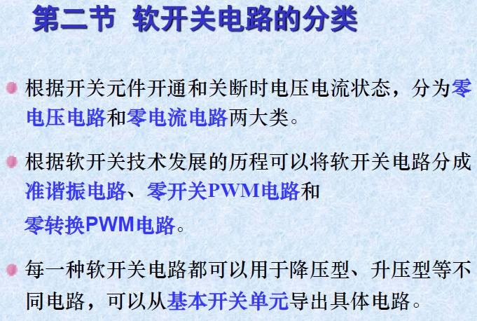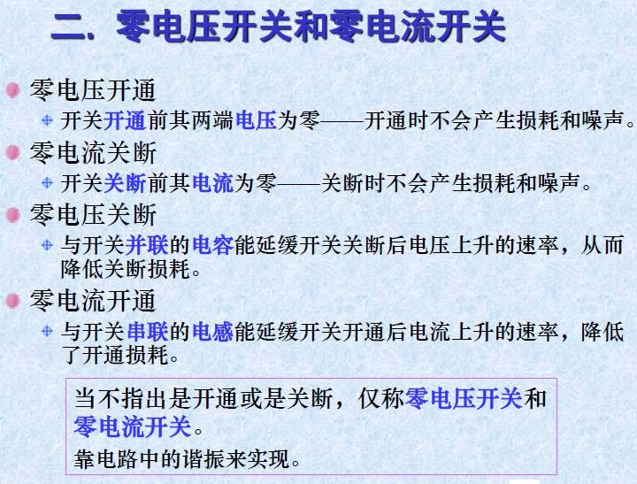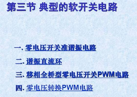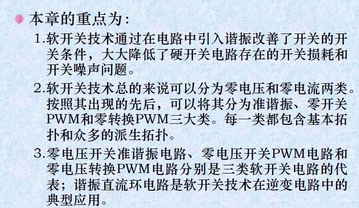 一 引言●现代电力电子装置的发展趋势--小型化、轻量化、对效率和电磁兼容性也有更高的要求。●电力电子装置高频化--滤波器、变压器体积和重量减小,电力电子装置小型化、轻量化。--开关损耗增加,电磁干扰增大。● ...