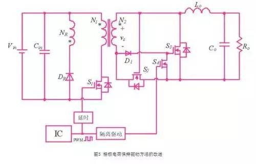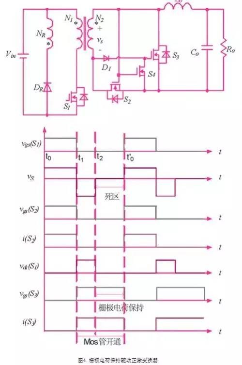 1 引言 近年来随着电源技 术的发展,同步整流技术正在低压、大电流输出的dc/dc变换器中迅速推广应用。在低压、大电流输出的情况下,输出端整流管的损耗尤为突出。例如,对采用 1.5v、20a电源的笔记本电脑而言,此时超快恢复整流二极管的损耗已经超过电源输出功率的50%,即使采用低压降的肖特基整流二极管,损耗也会达到输 出功率的18%~40%。因此,传统的二极管整流电路已经成为提高低压、大电流dc/dc变换器效率的瓶颈。 由于mosfet不能像二 极管那样自动截止反方向电流,因此同步整流器的驱动是同步整流技术使用的一个关键。驱动方式的选取不仅关系到变换器能否正常工作,更决定了变换器性能。按 照驱动方法的不同,同步整流分为自驱型和外驱型,两者的主要区别在于,自驱型同步整流管的驱动电压一般采用的是变压器上或辅助绕组上的电压,而外驱型同步 整流管的驱动电压是由外部同步整流驱动芯片产生的。本文将分别讨论两种同步整流驱动的方法,并阐述了同步整流中需要注意的问题。 由于正 激变换器是最简单的隔离降压式dc/dc变换器,其输出端的lc滤波器非常适合输出大电流,可有效抑制输出电压纹波。所以,正激变换器成为低电压大电流功 率变换器的首选拓扑结构。正激变换器必须采用磁复位电路,以确保变压器励磁磁通在每个开关周期开始时已经复位,常见的磁复位方法有:有源钳位、rcd钳 位、绕组复位、谐振复位等,如图1所示。 ![]() rcd钳位的方法虽然电路简单,但是它大部分磁化能量消耗在钳位电阻中,不利于效率的提高;有源钳位虽然可以重复利用变压器磁化能量和漏感能量,但是有 源钳位系统的控制带宽受到限制,动态性能不好,并且它多用了一个钳位开关,增加了驱动电路的难度和变换器的成本;而谐振复位由于谐振电压比较高,因此对开 关管的电压应力要求就更高;对于绕组复位的方法,结构较简单,磁复位时将能量回馈到输入源中,并且对开关管的电压应力要求并不高。 2 自驱同步整流2.1 栅极电荷保持驱动方法的基本原理 对于本文选用的 绕组复位正激变换器,其传统传统自驱型同步整流的方法如图2所示,在磁复位结束后,变压器的电压将为零,并且会保持在零直到下一周期开始,这样续流管将没 有电压提供驱动,电流会从其体二极管中流过,而其体二极管正向导通电压高,反向恢复特性差,导通损耗非常大,这是传统自驱同步整流的主要缺点,因此提出了 采用栅极电荷保持的同步整流方法,它的原理如图3所示。 ![]() ![]() 在t0时刻之前,输入信号v1为0,开关s1关断,电容c的初始电压为0。在t0时刻,输入信号v1为正,通过二极管d对电容c充电;在t1时 刻,输入信号v1为0,二极管d承受反压截止,只要开关s1保持关断,电容c上的电荷得以保持,v2维持高电平;在t2时刻,开关s1导通,电容c通过 s1放电,v2变为0。如果c是同步整流管的栅极寄生电容,s1是一个辅助开关,那么在t1到t2这段时间内,输入驱动信号v1降为0时,同步整流管的栅 极电压仍可保持高电平。 2.2 栅极电荷保持驱动正激变换器 利用栅极电荷保持的驱动方法,传统电压驱动同步整流器在变压器电压死区时间内,续流管体二极管的导通问题很容易解决,图4给出了栅极电荷保持电压驱动正激变换器的原理图和主要波形。 ![]() 在t0到t1的时间内,开关管s1开通,变压器副边电压变为上正下负并驱动s2和s4使它们导通。s3的栅极电容通过s4放电,s3的栅极电压降为0,s3关断,输出电流流进s2。 在t1时刻主开关管s1关断,变压器进行磁复位,变压器副边电压变为下正上负,s2和s4关断,s3的栅极电容由流经d1的电流充电。s3栅极为高电平 导通,负载电流流经s3。在t2时刻磁复位结束,变压器副边电压变为0,由于二极管d1承受反压截止,s4关断,s3的栅极驱动电压保持不变,因此,即使 变压器副边电压为0,s3仍然保持导通,继续续流。s3的栅极电压一直保持到下一个开关周期开始,也是s4导通之时,这就解决了死区时间内s3体二极管续 流导通的问题。 对于这种栅极电荷保持的自驱型同步整流方法,有一个重要的过程就是,在续流管s3续流结束时要将其栅极电荷放掉,否则当变压器副边电压变为上正 下负的时候,续流管会导通,有电流从漏极流向源极,并最终导致变压器副边,续流管和整流管形成一个回路,即副边出现直通。而放掉续流管s3的栅极电荷必须 依赖于副边电压变为上正下负,即使s4导通,将s3栅极电容上的电荷通过s4放掉,但是这里出现的情况是,当变压器副边电压为上正下负使s4导通的时候, 同时续流管s3的ds电压也建立起来,如果s3的栅极电荷未放完,至少剩余的电荷仍能驱动s3时,这时s3就会正向导通,电流就会由漏极通过s3流向源 极,并经过整流管s2回到变压器副边,这样变压器副边电压就被短路,s4就无法再导通,s3上的栅极电荷就一直存在,直到这些电荷因为驱动s3而消耗完, 并又会进入下一次直通过程。如此恶性循环使变压器副边一直处于短路,即变换器副边处于直通的状态,情况严重的话会损坏整流管和续流管,甚至损坏变换器,因 此必须用一种方法,在下个周期变压器副边电压为上正下负之前就将s3的栅极电荷放掉,以保证不出现直通的现象。 ![]() 如图5所示,对原来的栅极电荷保持电路进行改进,将原边ic产生的占空比分为两路,一路通过加延时驱动主功率管,另一路通过驱动变压器隔离驱动s4,因 为变压器副边电压为上正下负的建立和
