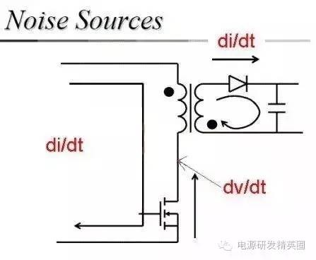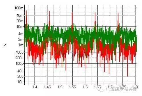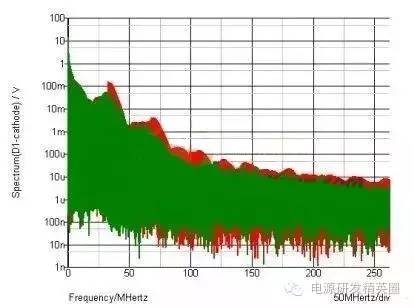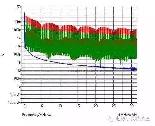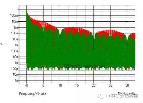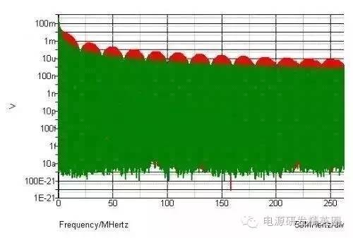 先简单介绍一下下EMI: EMI翻译成中文就是电磁干扰。其实所有的电器设备,都会有电磁干扰。只不过严重程度各有不同。 电磁干扰会影响各种电器设备的正常工作,会干扰通信数据的正常传递,虽然对人体的伤害尚无定论,但是普遍认为对人体不利。 所以很多国家和地区对电器的电磁干扰程度有严格的规定。当然电源也不例外的,所以我们有理由好好了解EMI以及其抑制方法。 下面结合一些专家的文献来描述EMI. 首先EMI 有三个基本面 ![]() 就是 噪音源:发射干扰的源头。 如同传染病的传染源 耦合途径:传播干扰的载体。 如同传染病传播的载体,食物,水,空气....... 接收器:被干扰的对象。 被传染的人。 缺少一样,电磁干扰就不成立了。所以,降低电磁干扰的危害,也有三种办法: 1. 从源头抑制干扰。 2.切断传播途径 3.增强抵抗力,这个就是所谓的EMC(电磁兼容) 先解释几个名词: 传导干扰:也就是噪音通过导线传递的方式。 辐射干扰:也就是噪音通过空间辐射的方式传递。 差模干扰:由于电路中的自身电势差,电流所产成的干扰,比如火线和零线,正极和负极。 共模干扰:由于电路和大地之间的电势差,电流所产生的干扰。 通常我们去实验室测试的项目: 传导发射:测试你的电源通过传导发射出去的干扰是否合格。 辐射发射:测试你的电源通过辐射发射出去的干扰是否合格。 传导抗扰:在具有传导干扰的环境中,你的电源能否正常工作。 辐射抗扰:在具有辐射干扰的环境中,你的电源能否正常工作。 首先来看,噪音的源头: 任何周期性的电压和电流都能通过傅立叶分解的方法,分解为各种频率的正弦波。 所以在测试干扰的时候,需要测试各种频率下的噪音强度。 那么在开关电源中,这些噪音的来源是什么呢? ![]() 开关电源中,由于开关器件在周期性的开合,所以,电路中的电流和电压也是周期性的在变化。那么那些变化的电流和电压,就是噪音的真正源头。 那么有人可能会问,我的开关频率是100KHz的,但是为什么测试出来的噪音,从几百K到 几百M都有呢? 我们把同等有效值,同等频率的各种波形做快速傅立叶分析: ![]() 蓝色: 正弦波 绿色: 三角波 红色: 方波 可以看到,正弦波只有基波分量,但是三角波和方波含有高次谐波,谐波最大的是方波。 也就是说如果电流或者电压波形,是非正弦波的信号,都能分解出高次谐波。 那么如果同样的方波,但是上升下降时间不同,会怎样呢。 同样是100KHz的方波 ![]() 红色:上升下降时间都为100ns 绿色:上升下降时间都为500ns 可以看到红色的高次谐波明显大于绿色。 我们继续分析下面两种波形, A: 有严重高频震荡的方波, 比如MOS,二极管上的电压波形。 B:用吸收电路,把方波的高频振荡吸收一下。 分别做快速傅立叶分析:![]() 可以看到在振荡频率(大概30M)之后,A波形的谐波,要大于B波形。 再来看,下面的波形,一个是具有导通尖峰的电流波形,一个没有导通尖峰。 对两个波形做傅立叶分析: 可以看到红色波形的高次谐波,要大于绿色波形。继续对两个波形,作分析 红色: 固定频率的信号 绿色:具有稍微频率抖动的信号 可以看到,频率抖动,可以降低低频段能量。进一步,放大低频段的频谱能量:![]() 可以看到,频率抖动就是把频谱能量分散了,而固定频率的频谱能量,集中在基波的谐波频率点,所以峰值比较高,容易超标。 最后稍微总结一下,如果从源头来抑制EMI。 1.对于开关频率的选择,比如传导测试150K-30M,那么在条件容许的情况下,可选择130K之类的开关频率,这样基波频率可以避开测试。 2.采用频率抖动的技术。频率抖动可以分散能量,对低频段的EMI有好处。 3.适当降低开关速度,降低开关速度,可以降低开关时刻的di/dt,dv/dt。对高频段的EMI有好处。 4.采用软开关技术,比如PSFB,AHB之类的ZVS可以降低开关时刻的di/dt,dv/dt。对高频段的EMI有好处。而LLC等谐振技术,可以让一些波形变成正弦波,进一步降低EMI。 5.对一些振荡尖峰做吸收,这些管子上的振荡,往往频率很高,会发射很大的EMI. 6.采用反向恢复好的二极管,二极管的反向恢复电流,不但会带来高di/dt.还会和漏感等寄生电感共同造成高的dv/dt. 下面来看一下传播途径,这个是poon & Pong 两位教授总结的 传播途径,比较的直观全面 ![]() 我们先来看传导途径: 传导干扰的传递都是通过电线来传递的,测试的时候,使测试通过电线传导出来得干扰大小。 ![]() 也就是说对电源来说,所有的传导干扰都会通过输入线,传递到测试接收器。 那么这些干扰如何传递到接收器的?又要如何来阻挡这些干扰传递到接收器呢? 先来看差模的概念,差模电流很容易理解,如下图, ![]() 差模电流在输入的火线和零线(或者正线到负线)之间形成回路,用基尔霍夫定理可以很容易理解,两条线上的电流完全相等。 而这个差模电流除了包含电网频率(或者直流)的低频分量之外,还有开关频率的高频电流,如果开关频率的电流不是正弦的,那么必然还有其谐波电流。 现在以最简单的,具有PFC功能的DCM 反激电源为例子,(如上图) 其输入线上的电流如下: 如将其放大: 可以看到电流波形为,众多三角波组成,但是其平均值为工频的正弦。那么讲输入电流做傅立叶分析,可以得到: 可以看到,除了100Khz开关频率的基波之外,还有丰富的谐波。继续分析到更高频率,可以看到:![]() 如果不加处理,光差模电流就可以让传导超标。 那么如何,来阻挡这些高频电流呢?