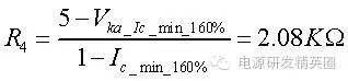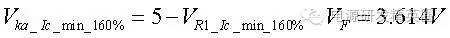 本文旨在帮助菜鸟快速入门,学会TL431的应用.文中的理论来源于自己的实践。全文总共有静态偏值和小信号分析2个主要方面. 欢迎老鸟来拍砖. 本文是对在基于NCP1205的应用上,设计一个输出5%精度,5V的反激变换器的反馈系统的研究来说明如何正确的使用光耦和TL431来组成反馈回路,以及相应的参数的设计方法. 第一部分是静态偏值的分析 如图一所示,组成了NCP1205的简单I型反馈回路.R1确定TL431的静态工作点,以及低频增益,R2,R3通过对输出5V分压与TL431的基准电压进行比较,Rf,R2,Cf为反馈系统引入一个低频零点和一个在原点的极点,Rp和Cp为反馈系统引入一个高频极点,同时Rp也提供把光耦电流转化成电压给Fb的作用.Rsense把峰值电流转化为峰值电压,提供T1关断的条件.R4提供TL431的额外电流,保证TL431的Ika> 1mA. ![]() 要让TL431正常工作,必须同时满足以下条件:1)电压条件Vka > 2.5V;2)电流条件Ika > 1mA. 图二所示为NCP1205的Fb(pin 4)的内部简易结构图. 下面要开始计算了..1. Rsense的计算 从图二可以方便的得出如下等式: (1) Vfb必须大于1.5V 让OCP的error flag为低电平,IC才能工作在正常状态.武断的取Vfb的静态工作点为2.5V (为啥是2.5V?其实也可以是2.4V或者其他,这个和你的功率部分的设计相关,具体请见以后会发上来的其他部分的菜鸟课堂),对应此时输出功率为最大,原边电流Ipk为最大.则,由等式(1)可得: 对应此时,Ipk的电流可以通过对功率部分的设计而计算得出,假定为:1A(老天啊,为啥又没有详细说明这个1A是怎么来的啊?^_^,请参阅其他部分的菜鸟课堂).则,Rsense可以通过 等式 (2)计算出来. (2) 计算可以得知 Rsense=0.833 ohm 就可以满足条件.2.电压条件Vka满足,及Rp和R1的取值计算. 光耦的If最大值一般可达到数十毫安,越大的If电流意味着越大的损耗.武断的选择If电流为0.5mA(为啥又是武断,,^_^,就算是偶喜欢好了吧).则: (3) 取Rp为4.7k,重新计算If为0.532 mA.因为是最大输出功率计算出的If,所以此时的If值对应是最小的. PS:为兼容元件的差异性,保持系统稳定,光耦的传送比选择以100%为中心的一挡(不同的厂商,上下限一般都不太一样. 本文中光耦传送比设定为:80%~160%).在本文计算中,如无特殊说明,则选取100%的传送比为计算依据. 则,光耦二次侧的Ic可以计算得出: Ic_min_100% = If_min = 0.532 mA (4) 当输出负载最小的时候,通过对功率部分的计算可以得出这个时候最小的Ipk值,对应了一个最大的Vfb的电压.假定为:3V(又是假定..^_^,这个也是通过对功率部分计算得出的,不在本文讨论范围,以后说明). 重复以上If的计算公式,可得最大的If (Ic) 值为: Ic_max_100% = If_max = 0.638 mA 武断的选取 R1 为 560(这个选取无啥技巧可言,在后文中会分析到,这个R1的选择会有哪些影响,可能会调整,但也不一定了,现在就选560吧,).当Ic_max 发生的时候: (5) (6) 其中 VR1表示R1上的电压降,VF表示光耦的正向导通压降,取 1.2V, Vka 表示TL431的K,A端的电压.假定光耦的传送比在下限 80%,则: (7) 此时,重新计算Vka = 3.35V (8) 从等式 (8) 得知,当R1取560 的时候,在最坏情况下 = 3.35V > 2.5V.满足TL431的工作条件,即,在任何条件,TL431的Vka都能满足正常工作 大于 2.5V的条件.3.电流条件 Ika的满足,及R4的取值计算. 当输出功率最大的时候 ,Vfb=2.5V,此时的If达到最小值,假定光耦传送比达到误差上限 160%.从等式 (4) 中可以得知,If_min = 0.532mA, 所以: (9) 对应此时的Vka电压可以重新计算得知: (10) 为了让Ika 满足大于1mA的要求,所以需要R4来补充缺少的电流: (11) 取R4为 1Kohm 确定以上取值后,计算Ika的最大电流.Ika的最大电流发生在最小输出负载,并且光耦的传送比为下限80%的时候,此时的Ika 可以用以上方法计算: Ika_max=2.45mA (12) 一般TL431的Ika的最大允许电流可以到100mA,从等式(12)可以看出,设计的最大电流不超过TL431的Ika,满足器件规格.4.TL431的Vref的偏置以及R2,R3的取值计算. R2,R3在静态偏置方面,主要是提供对输出电压的采样.为了保证TL431的能正常工作,Iref的最小值,根据经验最好能不小于200uA.为了方便后面的小信号的计算,这里R3选取4.7 kohm 1% 的电阻.因为一般TL431的Vref是2.495V,并且为了保证电压在大电流的时候,不因为PCB的铜箔阻抗下降到离5V太远,所以R2会比R3稍微大些.这里的R2选择 4.7kohm 1%和 220ohm 1%的两个电阻串联.为了方便起见,把R2的值就记为 5.输出精度估算. R2,R3都选取1%精度的电阻,TL431选取2%精度的.输出电压记为Vo,为方便计算,设定R2=R3= 4.7kohm,,TL431的Vref设定为2.5V. 由分压关系可得: (13) 对等式 (13) 左边 Vo求全微分,右边部分对Vref,R2,R3分别求偏导,然后相加,则: (14) 因为是要求输出的误差,所以把( )的负号去掉,改为正值是合理的. 等式 (14)的两边同时除以Vo,即等式(13),则: (15) 把设定的精度以及R2=R3的条件带入,则: (16) 满足设计要求精度为5%的输出要求.6.Vo的接法. 反馈电压Vo的接法基本上有2种.A) 从最终输出段子接;B)在输出的LC滤波前接. 采用接法A,可以直接反应输出电压,但是却在整个系统中引入了一个LC的二阶系统,不利于反馈调节,而且也会减缓对输出负载变换的动态响应. 采用接法B,避开了这个LC的二阶系统,简化了整个系统.而通过L之后,电压降一般都很小,所以通常采用的方法是把Vo接在输出的LC滤波器前面. 至此,这个由光耦和TL431组成的反馈系统直流偏置部分就分析计算完毕. 第二部分动态工作点小信号分析以及计算. 当电源工作在一个稳定的状态的时候,就可以进行小信号的交流分析