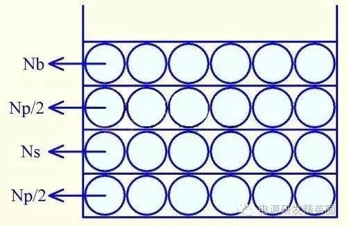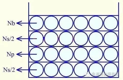 要想把变压器设计好,首先就需要选择好变压器。 变压器的选择受到很多的因素制约。 首先,需要计算好变压器的Ap值,如下: Ap= Aw*Ae=(Pt*10^4)/(2ΔB*fs*J*Ku) Ap:变压器功率容量 Aw:磁芯窗口面积 Ae:磁芯横截面接 Pt:变压器的传递功率( Pt = Po /η +Po ) ΔB:磁通密度变化量(一般取0.2-0.3) fs:磁芯工作频率 j:电流密度 (自冷取4-6,风冷取6-10) Ku:窗口的铜填充系数(一般取 0.2-0.5) 得到Ap值之后,我们就要根据电源的结构尺寸来初步选择变压器,包括变压器的高度,宽度以及长度。 当电源的整体高度有限制时,就需要考虑扁平型的变压器,卧式变压器是首选。常见的有EE系列,EC系列,ER系列的卧式变压器,EF系列与EFD系列变压器;如果是超薄的适配器与LED日光灯内置电源,可以考虑平面变压器。 而如果PCB的空间有限,应该选择PQ,RM,或者罐形磁芯,因为这些磁芯的截面积大,占用空间小,可以输出更大的功率 其次,在选择变压器的时候我们要根据电路的参数与侧重点不同,而选择不同的变压器。 比如,在反激电源中,我们希望漏感越小越好,因为漏感大小会影响功率器件的电压与电流应力,同时对EMC也有不可忽视的影响,那么我们就找对漏感控制有利的变压器,如PQ型,RM型,以及ERL型的变压器,再加上合理的绕法,可以将漏感控制在3%以下。 又如LLC电源,我们希望用变压器的漏感来作为谐振电感,所以我们需要刻意加大漏感,选用分槽的骨架来绕制比较理想。 再次,在选择变压器的时候,要考虑到成本与通用性。 成本不仅仅是每个企业老板关心的问题,同样是我们广大研发工程师最纠结的问题,除非是少数军品级别或高档不计成本的电源,我们在设计的时候要在性能参数与成本之间找到一个平衡点,不要刻意去追求某个参数而忽略带来的成本影响,有时哪怕每个变压器增加几分钱的成本,如果批量起来,都是不可忽略的一笔开支。 除非由于商业因素的考虑,希望自己的产品不被其它的厂商所抄袭,一般不考虑私模或偏门的变压器磁芯与骨架,因为量产的时候,供货的渠道与周期都会受到很大的制约,而通用的磁芯,无论在价格上还是在供货渠道与周期都有很大的可选择性。 选择变压器的时候,还要考虑到为了符合安规标准,EMC性能 首先,要考虑变压器骨架的绕线宽度,变压器为了符合安规中的爬电就离要求,一般都要在绕组边上加3mm的挡墙,那么这就缩小了变压器骨架的可用绕线宽度;而如果不加挡墙的话,就需要使用三重绝缘线,而三重绝缘线的外径一般比内部的铜线直径大0.2mm,那么,同样的窗口面积,绕线的匝数相当于减少了。 其次,要考虑变压器骨架的槽深,有时为了EMC,需要在变压器内部加入屏蔽层,有些用细线绕,有的用铜箔绕,这些绕组无疑会增加绕组的层数,也就是说可用于绕制变压器其他绕组的槽深就减少了。 选择变压器还要考虑到绕组装配工艺的影响 很多的工程师在设计变压器的时候,没有考虑到装配工艺,往往会出现这样的情况:变压器计算好之后,把参数发给变压器厂做样;然后,变压器厂工程师打电话说绕不下,磁芯太紧,不好装配,不利于量产;最后不得不修改变压器参数;这样无疑会延缓项目的进度。 所以在设计之初,我们就要考虑到变压器磁芯窗口的误差,以及绕线工艺、绝缘TAPE的厚度等因素,这些因素都会影响变压器的装配;我们在计算时应该对这些因素给予充分考虑,留有一定的余量。 上面谈了变压器的磁芯骨架选择考虑的问题,下面来谈谈变压器的绕制方法与注意事项 普通分层绕法 一般的单输出电源,变压器分为3个绕组,初级绕组Np,次级绕组Ns,辅助电源绕组Nb;当实用普通分层绕法时,绕制的顺序是:Np--Ns--Nb,当然也有的是采用Nb--Ns--Np的绕法,但不常用,原因大家可以先思考下,过几天我再分析。 此种绕法工艺简单,易于控制磁芯的各种参数,一致性较好,绕线成本低,适用于大批量的生产,但漏感稍大,故适用于对漏感不敏感的小功率场合,一般功率小于10W的电源中普遍实用这种绕法三明治绕法 三明治绕法久负盛名,几乎每个做电源的人都知道这种绕法,但真正对三明治绕法做过深入研究的人,应该不多 相信很多人都吃过三明治,就是两层面包中间夹一层奶油。顾名思义,三明治绕法就是两层夹一层的绕法。由于被夹在中间的绕组不同,三明治又分为两种绕法:初级夹次级,次级夹初级。 先来看第一种,初级夹次级的绕法(也叫初级平均绕法) 如上图,顺序为Np/2,Ns,Np/2,Nb,此种绕法有量大优点由于增加了初次级的有效耦合面积,可以极大的减少变压器的漏感,而减少漏感带来的好处是显而易见的:漏感引起的电压尖峰会降低,这就使MOSFET的电压应力降低,同时,由MOSFET与散热片引起的共模干扰电流也可以降低,从而改善EMI; 由于在初级中间加入了一个次级绕组,所以减少了变压器初级的层间分布电容,而层间电容的减少,就会使电路中的寄生振荡减少,同样可以降低MOSFET与次级整流管的电压电流应力,改善EMI。 第二种,次级夹初级的绕法(也叫次级平均绕法) 如上图,顺序为Ns/2,Np,Ns/2,Nb。当输出是低压大电流时,一般采用此种绕法,其优点有二: 1、可以有效降低铜损引起的温升:由于输出是低压大电流,故铜损对导线的长度较为敏感,绕在内侧的Ns/2可以有效较少绕线长度,从而降低此Ns/2绕组的铜损及发热。外层的Ns/2虽说绕线相对较长,但是基本上是在变压器的外层,散热良好故温度也不会太高。 2、可以减少初级