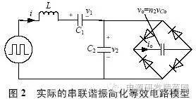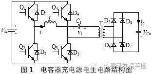 随着脉冲功率技术的发展,高压脉冲电源的需求越来越广,且越来越多。在开关频率固定的情况下,理想串联谐振充电拓扑因其能在较宽的电压范围内具有平均充电电流恒定的特点,且抗负载短路能力强,被广泛用于对高压电容器充电。但实际装置中的串联谐振充电电流并不恒定,主要原因有:①充电时直流母线电压会发生变化;②变压器存在分布电容;③高压整流器存在极间电容。从而给参数设计和设备调试带来了一定困难。目前,通常是通过不断地改变谐振参数进行调试,直至找到合适的谐振参数,调试周期长,造成不必要的人力和财力浪费。国内外有关分布电容影响的报道极少,文献提到了由于分布电容的影响,充电电流随着输出电压的升高而减小,但未作深入研究;文献(Bowles E E, Chapelle S. A high power density, high voltage Powersupply for pulsed rada system[C]. The 21th International Power Modulator Symposium, 1994:170.173.)实现了一个串并联谐振CCPS,但未对电路工作特性作具体深入研究。 本文研究了理想串联谐振电容器充电电源的电流特性和实际串联谐振电容器充电电源的电流特性,分析了充电系统中高压变压器和高压整流二极管的寄生参数的影响,采用等值电路来描述变压器和二极管中复杂的寄生电容,并且可以通过试验来测得,指出由于变压器和二极管寄生电容的存在,使所设计的高压串联谐振充电电源变成了一个高压串并联谐振充电电源,其充电电流并不恒定。文中对软开关串并联谐振CCPS 进行了系统分析,得出其固有的一些重要特性,同时给出了一个具有重要实用价值的图表,通过这个图表能快速设计谐振参数,改变以往通过往复改变谐振参数并不断进行试验来设计和调试高压充电电源的办法。文中通过一个25kW 的高压脉冲电源系统作为实例,验证了采用图表法的有效性。 理想串联谐振CCPS 的工作特性 高压电容器充电电源的主电路拓扑如图1 所示,变压器变比为n,L 为谐振电感,C1 为谐振电容,TS 为开关周期,T1 为谐振周期,fS 为开关频率,TS>2T1,开关管工作在软开关状态。在所有串联谐振CCPS 中,设Co、Vco 分别为充电电容和充电电压,均有n2Co>>C1 成立。 平均充电电流为 由式(1)可知, 当Vin、L、C1、和fS 恒定,平均充电电流恒定,电容器电压呈线性上升,但实际装置中由于变压器和高压整流二极管并不是理想器件,变压器存在分布电容,高压整流二极管也存在极间电容,开环控制的串联谐振CCPS 的平均充电电流并不恒定,电压上升曲线并不线性。 实际的串联谐振CCPS 高频升压变压器和高压整流二极管的分布电容对充电电流的工作状态影响较大,是不能被忽略的。变压器的分布电容较为复杂,在高频高压升压变压器中,为减小变压器体积和漏感,通常采用导磁率较高的铁芯,如超微晶合金材料,变压器原边匝数较少;为减少变压器原副边耦合,通常设有屏蔽绕组;从而可以忽略原边分布电容、原、副边分布电容的影响。变压器的激磁电抗较大,其影响也可以忽略。于是实际的串联谐振电容器充电电路可等效于图2 所示电路。可以看出,实际电路变成了一个串并联谐振充电电路。 与串联谐振CCPS 不同,串并联谐振CCPS 的谐振过程与输入电压、充电电容电压、串联谐振电感、串联谐振电容、并联谐振电容有关,因而在半个开关周期存在多种工作情况,各种工作情况下又存在不同的工作模式,各个工作模式的谐振频率也不尽相同,其工作过程相对于理想串联谐振CCPS要复杂得多。由于谐振频率和开关频率较高,在一个谐振周期中充电电容电压变化非常小,因此可将一个谐振周期的串并联谐振充电等效成输出电压不变的串并联谐振充电。设等效至变压器原边的充电电容电压为Vo。根据在一个谐振周期中充电电流的有、无可分为以下3 种情况。 分析之前定义如下变量: