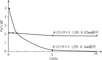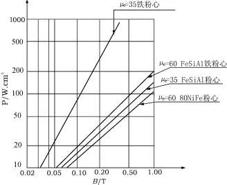 开关电源(硬开关方式)如今已经实用化、商品化,其突出的优点效率高,体积小,重量轻已被人们认可。但是负面效应决不可忽视,由于不可控整流方式网侧输入电流为非正弦周期电流,AC/DC变换器在投入运行时,将向电网注入大量的高次谐波,因此网侧的功率因数不高,仅有0.6左右,并对电网和其它电气设备造成严重谐波污染与干扰。在三相四线制供电方式中,由于多次谐波分量叠加,使线电流增大,这是一个很棘手的问题。而如今计算机电源、UPS、程控交换机电源、电焊机电源、电子镇流器等早已高频开关化,其对电网的污染已达到必须治理的程度,因此功率因数校正技术正在成为热点,并将成为商家进入市场的关键。 从电工学原理讲,功率因数PF是指交流输入有功功率P与视在功率S的比值。 PF=P/S=UI1cosφ/UI2=DFcosφ(1) 式中:I1基波电流有效值; I2电网电流有效值; U电网电压有效值; φ基波电流、电压的相位差; DF(distortionfactor)为电流失真因子。 要使PF→1,必须对输入电流严重非正弦情况采取相应的措施,使DF→1,同时还必须使基波电流与电压相位差φ→0,才能使PF→1,所以功率因数校正实际上是对输入电流整形使其尽可能正弦化,同时改善电源系统的输入阻抗,使之尽量呈电阻性,使基波电流与电压同相位。这就是功率因数校正的基本思路。 开关电源的功率因数校正器(PFC)可分为两类,一类为有源PFC,由电感电容及电子元器件组成;另一类为无源PFC,一般采用电感补偿方法使交流输入的基波电流与电压之间相位差减小来提高功率因数。在校正电路中有源PFC较多采用高频升压电路功率因数开关调节器,通常采用Boost电路,基本电路拓朴见图1。 图1 升压型Boost电路 图中Li为储能电感,看起来并不复杂的电路,但是如何能够合理选择元件及相关元件的材料是关键所在,本文将就PFC技术中的电感元件及材料开展讨论。 2 无源PFC中的电感材料选择 无源PFC是一个由电感、电容组成的低通滤波器,如图2所示是一种低通滤波器的电路原理图,其中L1是共模电感,L2,L3是差模电感。 共模电感是完全对称、线圈匝数相同的两个电感线圈,绕在同一个铁心上,电流同方向流经两组线圈后,根据右手螺旋法则,在电感铁心内产生两个方向相反的磁场,由于流经电流大小,线圈匝数完全相同,磁场强度强弱相当,因而完全抵消,不存在磁饱和问题,主要是要考虑电感铁心材料的初始磁导率μo,对于这类材料的μo越高越好,通常有高μo系列的铁氧体磁心,μo=4×103,6×103,8×103,1×104等类型,铁基超微晶材料μo≥5×104,坡莫合金系列如1J79,1J851系列,μo≥5×104。在选择金属磁性材料时必须注意频响问题(见图3)1J79或1J851系列的磁心μo随频率上升而下降的幅度比较大,越薄的材料,μo随频率下降的幅度比较小,设计时应注意这一点。 图2 低通滤波器电路原理图 差模电感主要要解决磁饱和问题,在实际使用过程中,广大电路工作者已经逐步认识到了磁粉心的优越性,使用铁心加气隙的作法(铁氧体磁心加气隙,非晶磁心加气隙,硅钢磁心加气隙)已越来越少。现在用于滤波器中差模电感铁心大多为有效磁导率为60~75的磁粉心,B500=1.34T,即在39788.5A/m(即500Oe)的磁场强度下,磁感应强度达1.34T。 图3 磁芯u0随频率f的变化关系 图4是有效磁导率为75的铁粉心的静态磁滞回线,和铁氧体材料相比,有高的Bs值,不易饱和,因此体积至少可减小一半,采用廉价的铁粉作原料,并且不需要开口,没有噪声,成本可大大降低,价格可以和铁氧体比拟,以 27× 14×11的规格为例,它可以承受400安匝而不饱和,优点突出。 图4 μe=75铁粉心得B-H曲线 但是值得商榷的是,可选择作为滤波器的差模电感的磁粉心不仅仅是μe=75铁粉心一种,图5是铁粉心系列μe=75,μe=55,μe=35磁导率随频率变化的曲线,可见它们磁导率随频率上升而下降的趋势不同。图6是MICROMETARS公司-8(μe=35)和上海钢研精密合金器材研究所SF-33(μe=37.5)铁粉心材料的插入损耗曲线,可见吸收峰出现在不同的频率范围内,因此除了考虑电感量大小,磁饱和问题,价格等因素外,还应该考虑抑制噪声的频率范围,来选择不同型号的铁粉心。 图5 有效磁导率与频率的关系曲线 图6 两种铁粉心的插入损耗曲线 3 有源PFC中的电感材料选择 在功率放大的功率因数校正中基本上是采用升压式变换电路,而升压电感是串在输入回路中,电感电流等于输入电流,只要控制电感电流就可以达到控制输入电流。功率开关器件的切换速率ωS远大于工频ωo(ωS=Kωo,K 1);L值大得足以使电感中的电流连续,当功率器件开关切换脉冲占空比的变化遵循正弦规律时,即所谓正弦波脉宽调制(SPWM)时电感中流过的电流为: 当K=1时, iL=Ipsinωot(3) 即iL与输入电压一样,都是正弦波,相位又相同,从而实现了DF=1,cosφ=1,达到功率因数校正的目的。从图7中可见,S的控制信号实际上受控于输入电压,开通时由全波整流电路为L充电,关断后L上的电压与输入电压叠加为电容C和负载提供能量,因此PFC中的电感是一个储能电感而且电感量又必须足够的大,在50Hz基波电流上又叠加了高频成份,对于该电感铁心材料提出了相当高的要求,即在强的基波电流作用下不饱和又在高频下有低的损耗。 图7 基本升压型有源功率因数校正电路 目前扼流圈铁心使用的材料主要有两类,一类是功率铁氧体磁心加开气隙,另一类是磁粉心。表1是它们的饱和磁感应强度(Bs)的比较,其中锰锌软磁铁氧体Bs值最低,为0.5