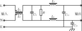 1 引言 随着现代科学技术的飞速发展,电子、电力电子、电气设备应用越来越广泛,它们在运行中产生的高密度、宽频谱的电磁信号充满整个空间,形成复杂的电磁环境。复杂的电磁环境要求电子设备及电源具有更高 的电磁兼容性。于是抑制电磁干扰的技术也越来越受到重视。接地、屏蔽和滤波是抑制电磁干扰的三大措施,下面主要介绍在电源中使用的EMI滤波器及其基本原理和正确应用方法。 2 电源设备中噪声滤波器的作用 电子设备的供电电源,如220V/50Hz交流电网或115V/400Hz交流发电机,都存在各式各样的EMI噪声,其中人为的EMI干扰源,如各种雷达、导航、通信等设备的无线电发射信号,会在电源线上和电子设备的连接电缆上感应出电磁干扰信号,电动旋转机械和点火系统,会在感性负载电路内产生瞬态过程和辐射噪声干扰;还有自然干扰源,比如雷电放电现象和宇宙中天电干扰噪声,前者的持续时间短但能量很大,后者的频率范围很宽。另外电子电路元器件本身工作时也会产生热噪声等。 这些电磁干扰噪声,通过辐射和传导耦合的方式,会影响在此环境中运行的各种电子设备的正常工作。另一方面,电子设备在工作时也会产生各种各样的电磁干扰噪声。比如数字电路是采用脉冲信号(方波)来表示逻辑关系的,对其脉冲波形进行付里叶分析可知,其谐波频谱范围很宽。另外在数字电路中还有多种重复频率的脉冲串,这些脉冲串包含的谐波更丰富,频谱更宽,产生的电磁干扰噪声也更复杂。 各类稳压电源本身也是一种电磁干扰源。在线性稳压电源中,因整流而形成的单向脉动电流也会引起电磁干扰;开关电源具有体积小,效率高的优点,在现代电子设备中应用越来越广泛,但是因为它在功率变换时处于开关状态,本身就是很强的EMI噪声源,其产生的EMI噪声既有很宽的频率范围,又有很高的强度。这些电磁干扰噪声也同样通过辐射和传导的方式污染电磁环境,从而影响其它电子设备的正常工作。 对电子设备来说,当EMI噪声影响到模拟电路时,会使信号传输的信噪比变坏,严重时会使要传输的信号被EMI噪声所淹没,而无法进行处理。当EMI噪声影响到数字电路时,会引起逻辑关系出错,导致错误的结果。 对于电源设备来说,其内部除了功率变换电路以外,还有驱动电路、控制电路、保护电路、输入输出电平检测电路等,电路相当复杂。这些电路主要由通用或专用集成电路构成,当受电磁干扰而发生误动作时,会使电源停止工作,导致电子设备无法正常工作。采用电网噪声滤波器可有效地防止电源因外来电磁噪声干扰而产生误动作。 图1电磁干扰信号示意图 图2电源滤波器的基本电路图 另外,从电源输入端进入的EMI噪声,其一部分可出现在电源的输出端,它在电源的负载电路中会产生感应电压,成为电路产生误动作或干扰电路中传输信号的原因。这些问题同样也可用噪声滤波器来加以防止。 在电源设备中采用噪声滤波器的作用如下:(1)防止外来电磁噪声干扰电源设备本身控制电路的工作; (2)防止外来电磁噪声干扰电源的负载的工作; (3)抑制电源设备本身产生的EMI; (4)抑制由其它设备产生而经过电源传播的EMI。 开关电源本身在工作时以及电子设备处于开关工作状态时,都会在电源设备的输入端出现终端噪声,产生辐射及传导干扰,也会进入交流电网干扰其它的电子设备,所以必须采取有效措施加以抑制。在抑制EMI噪声的辐射干扰方面,电磁屏蔽是最好的方式。而在抑制EMI噪声的传导干扰方面,采用EMI滤波器是很有效的手段,当然应配合良好的接地措施。 在国际上各个国家都实行了严格的电磁噪声限制规则,如美国有FCC,德国有FTZ,VDE等标准。如电子设备不满足噪声限制规则,则产品就不能出售和使用。 由于上述种种原因,在电源设备中必须要设计使用满足要求的电网噪声滤波器。 3 EMI噪声和滤波器的类型 在电源设备输入引线上存在二种EMI噪声:共模噪声和差模噪声,如图1所示。把在交流输入引线与地之间存在的EMI噪声叫作其共模噪声,它可看作为在交流输入线上传输的电位相等、相位相同的干扰信号,即图1的电压V1和V2。而把交流输入引线之间存在的EMI噪声叫作差模噪声,它可看作为在交流输入线传输的相位差180°的干扰信号,即图1中的电压V3。共模噪声是从交流输入线流入大地的干扰电流,差模噪声是在交流输入线之间流动的干扰电流。对任何电源输入线上的传导EMI噪声,都可以用共模和差模噪声来表示,并且可把这二种EMI噪声看作独立的EMI源来分别抑制。 在对电磁干扰噪声采取抑制措施时,主要应考虑抑制共模噪声,因为共模噪声在全频域特别在高频域占主要部分,而在低频域差模噪声占比例较大,所以应根据EMI噪声的这个特点来选择适当的EMI滤波器。 电源用噪声滤波器按形状可分为一体化式和分立式。一体化式是将电感线圈、电容器等封装在金属或塑料外壳中;分立式是在印制板上安装电感线圈、电容器等,构成抑制噪声滤波器。到底采用哪种形式要根据成本、特性、安装空间等来确定。一体化式成本高,特性较好,安装灵活;分立式成本较低,但屏蔽不好,可自由分配在印制板上。 4 噪声滤波器的基本结构 电源EMI噪声滤波器是一种无源低通滤波器,它无衰减地将交流电传输到电源,而大大衰减随交流电传入的EMI噪声;同时又能有效地抑制电源设备产生的EMI噪声,阻止它们进入