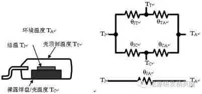 因此,二式联立,可以得到最大的连续漏极电流ID的计算公式:需要说明的是:上述的电流是基于最大结温的计算值;事实上,它还要受到封装的限制。在数据表中,许多公司表示的是基于封装限制最大的连续漏极电流,而有些公司表示的是基于最大结温的电流,那么它通常会在数据表注释中进行说明,并示出基于封装限制的最大的连续漏极电流。在公式(1)中,需要测量器件的热阻RθJC,对于数据表中的热阻都是在一定的条件下测试的,通常是将器件安装在一个1平方英寸2oz的铜皮的PCB上,对于底部有裸露铜皮的封装,等效热阻模型如图1所示。如果没有裸露铜皮的封装,如SOT23,SO8等,图1中的RθJC通常要改变为RθJL,RθJL就是结到管脚的热阻,这个管脚是芯片内部与衬底相连的那个管脚。