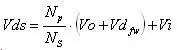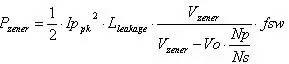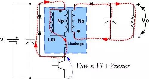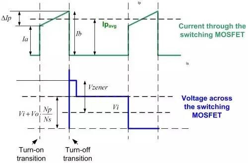 反激是最知名的隔离式电源拓扑结构,因为它可以用一个低边开关晶体管和有限的外部元件数提供多个隔离输出。不过,反激式电源也存在一些特殊性,如果设计人员没有充分理解并对其进行分析,就可能限制它的整体表现。针对这种拓扑结构的系列文章将以非常简单的数学方法揭去所有反激式电源设计的神秘面纱,指导设计人员完成一个良好优化的设计。 反激式转换器根据应用的不同,直流-直流应用(DC/DC应用)可能需要多个输出,而且需要输出隔离。此外,输入与输出的隔离可能需要符合安全标准或提供阻抗匹配。隔离式电源不仅可以防止用户接触到潜在的致命电压和电流,而且具有性能优势。利用中断接地回路,隔离式电源可以保持仪器精度,并可以在不牺牲总线益处的条件下很容易通过负电源总线提供正稳压电压。对设计人员来说,反激式拓扑结构历来是输出功率100W以下的电源隔离式转换器的首选。这种拓扑结构只需要一个磁性元件和一个输出整流管,因而具有简单和低成本的优势,同时它也可以轻松实现多路输出。而反激式拓扑结构的缺点是:它需要一个高容值的输出电容,功率开关管和输出二极管的电流应力较高,气隙区涡流损耗较高,变压器铁芯较大以及可能存在的EMI问题。反激式转换器源于降压-升压拓扑结构,其主要缺点是:只有在开关MOSFET导通时间内,该转换器才从源极收集能量。在后来的关断期间,来自一次侧绕组的这种能量从电感传递到输出端。这是反激式和降压-升压拓扑结构的独特特点。(图1)一次侧电流和二次侧电流同时流过时,反激式变压器并不像传统变压器那样正常工作,实际上只有一小部分能量(磁化能量)被存储在变压器中。反激式变压器更像是同一铁芯上的多个电感器,而非一个典型的变压器。理想的情况是,变压器并不存储能量,所有的能量都在瞬间从一次侧转移到二次侧。 (图1:运行在连续传导模式下的典型反激式电源)反激式变压器可用作储能装置,能量存储在铁芯的气隙或坡莫合金粉芯的分布式气隙当中。电感变压器的设计应尽量减少漏感、交流绕组损耗和磁芯损耗。漏感是一次侧电感的一部分,未与二次侧电感相互耦合。保持尽可能低的漏感十分重要,因为它会降低变压器的效率,还会导致开关器件的漏极出现尖峰。漏感可被看作为存储在变压器中的部分能量,它不会转移到二次侧和负载。这种能量需要通过一个外部缓冲器在一次侧耗散掉。缓冲器的配置将在后面予以讨论。当MOSFET开启且电压施加在一次侧绕组时,一次侧电流线性上升。输入电流的变化是由输入电压、变压器一次侧电感和导通时间决定的。在这段时间内,能量被存储在变压器铁芯中,输出二极管D1被反向偏置,能量不会转移到输出负载。当MOSFET关闭时,磁场开始下降,颠倒了一次侧和二次侧绕组之间的极性。D1被正向偏置,能量转移到负载。断续传导模式与连续传导模式:反激式转换器像任何其他的拓扑结构一样有两种不同的工作模式断续模式和连续模式。当输出电流的增加超过一定值时,,断续模式设计的电路将转为连续模式。在断续模式下,导通时间内存储在一次侧的所有能量都会于下一周期开始之前完全转移到二次侧和负载;而且,在二次电流达到零值和下一个周期开始间的瞬间还会有死区时间。在连续模式下,当下一个周期开始时,仍会有一些能量留在二次侧。反激式转换器可以在两种模式下运行,但它具有不同的特征。断续模式一方面具有较高的峰值电流,因此在关断时有较高的输出电压尖峰。另一方面,它具有更快的负载瞬态响应,一次侧电感较低,因此变压器尺寸可以较小。二极管的反向恢复时间并不重要,因为在反向电压施加之前正向电流为零。在断续模式下,晶体管的开启随零集电极电流出现,降低了传导EMI的噪声。连续模式具有较低的峰值电流,并因此降低了输出电压尖峰。不幸的是,由于它的右半平面(RHP)零点迫使转换器的总带宽降低,所以其控制回路比较复杂。由于连续传导模式对大多数应用而言是更加的选择,因此以上仅对该模式进行了更多的细节分析。 确定反激式变压器:绕组匝数比及其电感设计人员不得不处理的第一个难题就是确定反激式变压器。通常他们可以从反激式电源变压器标准目录中进行选择,而无需更昂贵的定制变压器。许多供应商都可以针对不同应用和功率大小提供完整系列的变压器,但重要的是要了解如何选择最合适的变压器。除了二次侧绕组的功率大小和匝数,变压器还可根据一次侧/二次侧绕组匝数比,以及一次侧或二次侧电感来分类。如果忽略开关MOSFET和输出整流二极管两端压降的影响,在稳态运行条件下,导通时间( )的伏*秒应该等于关断期间( )伏*秒: (1)式中:? 是输入电压? 是输出电压? 是反激式变压器的一次侧匝数/二次侧匝数匝比那么,最大占空比的数匝比和最小输入输出电压之间的直接关系是: (2)其中D为占空比: /开关周期。在许多情况下,选定的最大占空比为50%,但是在宽输入电压范围的应用中,重要的是要了解如何优化以下关系:最大占空比、变压器匝比、峰值电流和额定电压。反激式拓扑结构的主要优点之一是可以在占空比大于50%的条件下工作。最大占空比的增加降低了变压器一次侧的峰值电流,从而达到一次侧铜变压器更高利用系数的效果,并降低输入源的纹波。同时,最大占空比的增