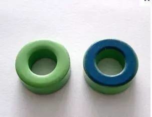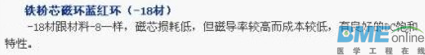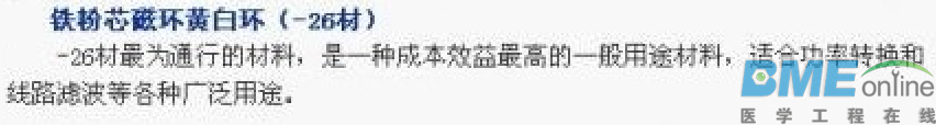 要分具体的用途的: 铁硅铝材质磁导率有:26 、60、75、90、125标准颜色为黑色。 ![]() ![]() 铁粉芯材料一般使用不同的涂装颜色来区分不同的材质,国际采用统一涂色标淮如下: 2材: 红色本体,透明(FERRITE本色)底面----这种材料的磁导率低,比其他没有加空隙损耗的材料更能降低操作时的AC通量密度。 ![]() 8材: 黄色本体,红色底面---这种材料在高偏流的情况下,磁芯损耗低,并且线性良好,是良好的高频材料,也是最贵的材料。![]() ![]() 18材: 淡绿色本体,红色底面---这种材料跟8材一样,磁芯损耗低,但是磁导率较高而成本较低,有良好的DC饱和特性 ![]() ![]() 26材: 黄色本体,白色底面---最为通行的材料,是一种成本效益高的一般用途材料,适合功率转换和线路过滤波等各种广泛用途。 ![]() ![]() 52材: 淡绿色本体,蓝色底面---该材料在高频下磁芯损耗比较低,而磁导率与-26材料相同,在新型的高频抗流器上应用广泛。 ![]() ![]() 28材:灰色本体,绿色底面---具有良好的线性,低成本和相对低的磁导率,广泛应用与大尺寸的高功率UPS抗流器。 ![]() ![]() 40材:绿色本体,黄色底面---最便宜的材料,其特性与26材颇相似,普遍应用与较大的尺寸 33材:是一种可以替代8材但不昂贵的材料,适用与高频时磁芯损耗不重要的情况,高偏流时线性良好。 ![]() 53材: 通体黑色(也有的表示为通体湖水绿色);