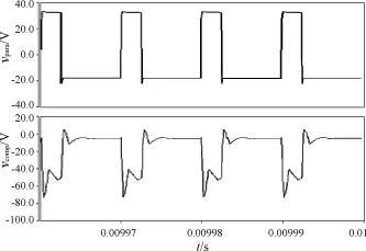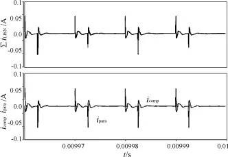 图1 CM及DM噪声电流的耦合路径示意图 图2 提出的共模噪声消除方法 2 基于补偿原理的共模干扰抑制技术在开关电源中的应用 本文以单端反激电路为例,介绍基于补偿原理的共模干扰抑制技术在功率变换器中的应用。图3给出了典型单端反激变换器的拓扑结构,并加入了新的共模噪声抑制电路。如图3所示,从开关器件过来的d/d所导致的寄生电流para注入接地层,附加抑制电路产生的反相噪声补偿电流comp也同时注入接地层。理想的状况就是这两股电流相加为零,从而大大减少了流向LISN电阻的共模电流。利用现有电路中的电源变压器磁芯,在原绕组结构上再增加一个附加绕组NC。由于该绕组只需流过由补偿电容comp产生的反向噪声电流,所以它的线径相对原副方的P及S绕组显得很小(由实际装置的设计考虑决定)。附加电路中的补偿电容comp主要是用来产生和由寄生电容para引起的寄生噪声电流反相的补偿电流。comp的大小由para和绕组匝比P∶C决定。如果P∶C=1,则comp的电容值取得和para相当;若P∶C≠1,则comp的取值要满足comp=para·d/d。 图3 带无源共模抑制电路的隔离型反激变换器 此外,还可以通过改造诸如Buck,Half-bridge等DC/DC变换器中的电感或变压器,从而形成无源补偿电路,实现噪声的抑制,如图4,图5所示。 图4 带有无源共模抑制电路的半桥隔离式DC/DC变换器 图5 带有无源共模抑制电路的Buck变换器 3 实验及结果 实验采用了一台5kW/50Hz艇用逆变器的单端反激辅助电源作为实验平台。交流调压器的输出经过LISN送入整流桥,整流后的直流输出作为反激电路的输入。多点测得开关管集电极对实验地(机壳)的寄生电容大约为80pF,鉴于实验室现有的电容元件,取用了一个100pF,耐压1kV的瓷片电容作为补偿电容。一接地铝板作为实验桌面,LISN及待测反激电源的外壳均良好接地。图6是补偿绕组电压和原方绕组电压波形。补偿绕组精确的反相重现了原方绕组的波形。图7是流过补偿电容的电流和开关管散热器对地寄生电流的波形。从图7可以看出,补偿电流和寄生电流波形相位相差180°,在一些波形尖刺方面也较好地吻合。但是,由于开关管的金属外壳为集电极且与散热器相通,散热器形状的不规则导致了开关管寄生电容测量的不确定性。由图7可见,补偿电流的幅值大于实际寄生电流,说明补偿电容的取值与寄生电容的逼近程度不够好,取值略偏大。图8给出了补偿电路加入前后,流入LISN接地线的共模电流波形比较。经过共模抑制电路的电流平衡后,共模电流的尖峰得到了很好的抑制,实验数据表明,最大的抑制量大约有14mA左右。 图6 补偿绕组电压和原方绕组电压波形 图7 补偿电容电流和对地寄生电流波形 图8 补偿前后流入LISN地的 共模电流波形(电流卡钳系数:100mV/A) 图9是用Agilent E4402B频谱分析仪测得的共模电流的频谱波形。可见100kHz到2MHz的频率范围内的CM噪声得到了较好的抑制。但是,在3MHz左右出现了一个幅值突起,之后的高频段也未见明显的衰减,这说明在高频条件下,电路的分布参数成了噪声耦合主要的影响因素,补偿电路带来的高频振荡也部分增加了共模EMI噪声的高频成份。但从滤波器设计的角度来看,这并不太多影响由于降低了低次谐波噪声而节省的设备开支。若是能较精确地调节补偿电容,使其尽可能接近寄生电容Cpara的值,那么抑制的效果会在此基础上有所改善。 图9 补偿前后流入LISN地的CM电流频谱比较 4 此技术的局限性 图10中的(a),(b),(c),(d)给出了噪声抑制电路无法起到正常效用时的电压、电流的波形仿真情况。这里主要包含了两种情况: 第一种情况是在输入电容的等效串联电感()上遇到的。电感在整个电路中充当了限制电流变化率d/d的角色,很显然LISN中大电感量的串联电感限制了变换器电源作为电流源提供的能力。因此,这些脉动电流所需的能量必须靠输入电容来供给,但是输入电容自身的也限制了它们作为电流源的能力。愈大,则输入端电容提供给补偿变压器所需高频电流的能力愈受限制。当为100nH时,补偿电路几乎失效。图10(a)中虽说补偿电压与寄生CM电压波形非常近似,但是图10(b)中却很明显看出流过补偿电容comp的电流被限制了。 另外一种严重的情况是补偿变压器的漏感。当把变压器漏感从原来磁化电感的0.1%增大到10%的时候,补偿电路也开始失效,如图10(c)及图10(d)所示。补偿绕组电压波形由于漏感和磁化电感的缘故发生分叉。如果漏感相对于磁化电感来说很小的话,这个波形畸变可以忽略,但实际补偿电容上呈现的d/d波形已经恶化,以至于补偿电路无法有效发挥抑制作用。 (a) 输入电容值较大时的CM电压 (b) 输入电容值较大时的CM电流 (c) 漏感值较大时的CM电压 (d) 漏感值较大时的CM电流 图10 噪声电路失效仿真电压、电流波形 为了解决和变压器漏感这两个严重的限制因素,可以采取以下措施:对于输入电容的,要尽量降低至可以接受的程度,通过并联低值的电容来改善;密绕原方绕组和补偿绕组可以有效降低漏感。 5 结语 由以上的实验和分析可以看到,应用到传统电源变换器拓扑结构中的这种无源CM噪声抑制电路是有一定作用的。由于用来补偿的附加绕组只须加到现有的变压器结构中,所以,隔离式的拓扑结构对于采用这种无源补偿消除电路来说可能是最简易、经济的电路结构。 |