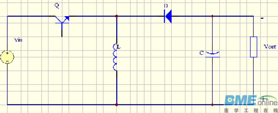 完美推导三大基本变换器公式1基本概念和公式 首先要讲到电容的基本公式: 电容器上所储存的电荷与施加于电容器上的电压成正比,有: q=Cv C为比例常数,称为电容器的电容(capacitance),单位法拉(farad,F),电荷运动产生电流,用数学表示为i=dq/dt 电流的单位为安培。 对q=Cv两边取微分得: i=Cdv/dt 根据对偶原理得: v=Ldi/dt 对于给定的时间增量或减量(v,i为常量,对于恒定的全部更改为大写的V,I) 基本概念: 对于一般方波功率变换,总有在开关导通器件施加一个恒定电压(Von),而在关断器件自动得到另一个恒定电压(极性相反,幅值为Voff),这将形成分段线性电流.其幅值为上面对偶 的到的公式 电流取一个变化量得: Von=L*△Ion/ton 推导出△Ion= Von*ton/L Voff=L*△Ioff/toff 推导出△Ioff= Voff*toff/L 整体电流和电压波形可以重复,电路才工作于稳态。(关键概念) 即:开通和关闭期间电流的变化量必须相等(△Ion=△Ioff) 即可得伏秒法则:Von* ton= Voff* toff 以下的公式推导只针对于CCM变换器 首先要几个基本公式: f为开关频率 周期为T 同时有T=1/f ton+ toff=T D 为占空比定义为ton /T 即ton=D*T Toff=T- ton=T-D*T=T*(1-D) 请大家注意一下,下面的公式推导是基于连续模式状态下来推导的。 2BUCK 变换器的基本原理以及公式推导![]() Q 导通时,不记其开关管的压降,L上的电压为Vin-Vout 记为电感电压Von Q 关闭是,D 导通,忽略二极管压降,即二极管对地是等电位的,L 两端的电压为Vout ,记为电感电压Voff,这时电压与输出电压同一极性。 根据伏秒定律: Von* ton= Voff* toff 其中:Von=Vin-Vout Voff= Vout ton=D*T Toff=T*(1-D) 代入上式得: (Vin-Vout)* D*T= Vout* T*(1-D) (Vin-Vout)* D= Vout*(1-D) (Vin-Vout)/ Vout = (1-D)/D (Vin-Vout)/ Vout +1= (1-D)/D+1 通分得:(Vin-Vout+ Vout)/ Vout = {(1-D)+D}/D Vin/ Vout = 1/D D= Vout/ Vin 3BOOST变换器的基本原理以及公式推导![]() Q 导通时,不记其管压降,即Q对地是等电位的,L上的电压为Vin,记为电感电压Von Q 关闭时,忽略D 的压降,这时就一个节点就有Vin+Voff=Vout 即Voff= Vout-Vin 根据伏秒定律: Von* ton= Voff* toff 其中:Von=Vin Voff= Vout- Vin ton=D*T Toff=T*(1-D) 代入上式得: Vin* D*T=(Vout- Vin)* T*(1-D) Vin* D=(Vout- Vin)*(1-D) Vin/(Vout- Vin)=(1-D)/D Vin/(Vout- Vin)+1=(1-D)/D+1 通分得:{Vin+ Vout- Vin }/(Vout- Vin)={(1-D)+D}/D D= (Vout- Vin)/ Vout 4BUCK-BOOST变换器的基本原理以及公式推导![]() Q 导通时,不记其管压降,同一个节点,L上的电压为Vin, 记为电感电压Von Q 关闭时,忽略D的压降,电感电压即输出电压,记为Voff= Vout,但是要注意这个电压于 输入电压极性相反。这也是个主要特征。 根据伏秒定律: Von* ton= Voff* toff 其中:Von=Vin Voff= Vout ton=D*T Toff=T*(1-D) 代入上式得: Vin* D*T=Vout* T*(1-D) Vin* D=Vout*(1-D) Vin/ Vout = (1-D)/D Vin/ Vout +1= (1-D)/D+1 通分得: (Vin+ Vout )/ Vout = {(1-D)+D}/D D= Vout/(Vin+ Vout ) 5总结对于这三个变换器的占空比与输入输出电压关系的推导是不是很简单啊,其实对于各种硬开关拓扑结构的变压器或者储能电感的设计除了掌握工作原理外,计算不外乎几个公式或概念,伏秒平衡、能量守恒、知晓电感加恒定电压电流线性上升,保证磁性不饱和。上面讲到的三种拓扑是电源的最基本拓扑,其他拓扑都是靠它们衍生出来的拓扑,比如反激的前身是buck-boost,正激的前身是buck。 搞透了这三个拓扑结构的原理和公式的来龙去脉,其他硬开关的拓扑结构变换器的计算完全可以自己推导出来。反正小编就是这样过来的。