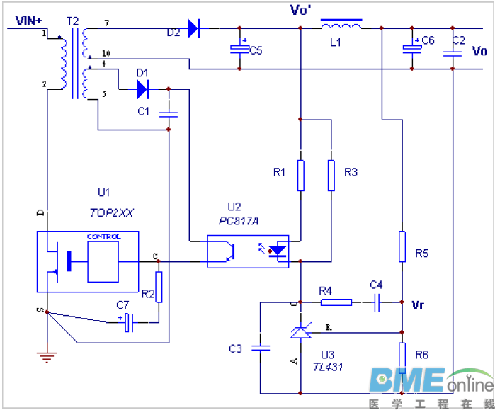一、TL431 取样补偿当中的原件值计算 TL431作为一种可控的精密稳压源,具有价格低、性能高的特点,因此被大量应用在各种电子电路当中。下文章将为大家介绍TL43取样补偿当中的原件值计算。 以下面的电路图为例,其中R6的数值并不是随便决定的。R6的参数主要取决于两个因素:第一个是TL431参考输入端的电流,一般此电流为2uA左右,为了避免此端电流影响分压比,以及避免噪音的影响,一般取流过电阻R6的电流为参考段电流的100倍以上,所以此电阻要小于2.5V/200uA=12.5K。第二个是待机功耗的要求,如有此要求,在满足<12.5K的情况下尽量取大值。 熟悉电源设计的各位一定都知道,TL431需要1mA的工作电流,这就意味着当R1的电流接近于零时,也要保证TL431有1mA,所以R3≤1.2V/1mA=1.2K即可。另一方面也是出于功耗方面的考虑。 所以对电路的设计而言,R1的取值非常重要,它必须确保TOP控制端能够得到足够的电流。假设用PC817A,其CTR=1.6-0.8,取低限0.8,要求流过光二极管的最大电流为6/0.8=7.5mA,所以R1的值≤(15-2.5-1.2)/7.5=1.5K,光二极管能承受的最大电流在50mA左右,TL431为100mA,所以取流过R1的最大电流为50mA,R1>(15-2.5-1.3)/50=226欧姆。 ![]() 在上图当中,我们可以看到R5 与C4 形成了在原点当中的极点,被用来对低频增益进行提升,来压制低频(100Hz)纹波和提高输出调整率,即静态误差。R4C4 形成一个零点,来提升相位,要放在带宽频率的前面来增加相位裕度,具体位置要看其余功率部分再设计带宽处的相位是多少,R4C4 的频率越低,其提升的相位越高,当然最大只有90 度,但其频率很低时低频增益也会减低,一般放在带宽的1/5 处,约提升相位78 度。 至此,就是TL431 的取样补偿中原件值的完整计算方法。不仅如此,这种方法适用于任何初级的IC,有兴趣的朋友们可自行替换成另一型号的IC 来进行计算。 二、开关电源中TL431 的运行原理及典型应用在早期的开关电源当中,组成取样的工作主要由三极管和二极管来完成。但是由于它们在参数上差别比较大,会为调试造成一定的阻碍。现如今,随着技术的进步,开关电源逐渐放弃了老旧的三极管和二极管,转而采用三端精密稳压源来进行取样和误差检测。而三端精密稳压源当中的经典,就非TL431 莫属了。 在三端精密稳压器内部有温度补偿的高精度并联放大器,其内部基准电压精度非常高,所有产品的典型值均为2.495V,而其误差电压范围允许为2.44~2.55V,允许工作温度范围用尾缀字母表示,C 为-10~85 摄氏度,I 为-40~85 摄氏度,M 为-55~125 摄氏度。所以,无论是精度还是稳定度均非普通稳压二极管所能达到的。 在使用TL431 进行设计时,我们要注意,为了让TL431 内部的放大器处于线性区,要让Uka=Uref。Ika 大于1mA,内部放大器的电压小于37V,其最大功耗为500mW~1W。一般开关电源中的误差放大器,功耗是不可能达到500mW 的。TL431 的用法很多,如果将R 端与K 端连接,即等效一只2.5V/100mA 的高精度稳压二极管。另外,TL431 还可以组成2.5V~36V 的可调并联稳压电源。由TL431 组成的取样电路,由于其内部比较器具有极高的增益,在使放大器动作时,取样电路仅需输入4 微安以下的电流即可,因此对取样分压器的影响极小。 ![]() TL431 在开关电源当中取样和误差放大的典型应用电路图如上图所示。开关电源输出电压Uo 由R1、R2 分压,正常时得到2.5V 的取样电压,送到TL431 的控制端R。因为R 端电流极小,可以忽略,因而R1、R2 的取值可以按输出电源Uo 与2.5V 之比选取,即Uo=2.5*(1+R1/R2)。当Uo 上升时,R 端电压升高,Ika 增大,光耦合器发光二极管电流也增大,通过光耦合器次级控制开关脉冲的脉宽减小,输出电压降低,起到了稳定输出电压的作用。 TL431 和光电耦合器的工作电压为Ui,一般取自开关电源5~12V 稳压电源,R3 则限制TL431 的电流Ika,使光电耦合器工作在线性区内。由于TL431 的比较器和放大器增益都较高,使用中常在K-R 极之间接入RC 电路,以防止寄生振荡。 ![]() 在我们想要对TL431 的电路进行检测时,使用传统的电阻法是无法准确判断出好坏的。因为三端精密稳压器为集成电路,等效电路只是示意其内部功能,实际内部电路较为复杂。当开关电源出现失控或无输出电压故障时,如果怀疑取样误差放大器发生故障,可根据上图中的电路检测TL431。Ui 选择小于35V 的直流电压,R1 将电路短路电流限制在100mA 以内,R2、R3 为控制极供电调整,选择R3/R2+R3 大于或等于2.5。当调整R3 时,Uo 能在2.5V~Ui之间均匀变化,则判断三端精密稳压器TL431 完全正常。 上文主要对TL431 在开关电源当中的应用和电路运行原理进行了介绍,并对典型电路进行了分析,并给出了TL431 电路的检测方法。希望大家通过这篇文章能够进一步了解TL431 在开关电源当中的使用。 三、短小精悍精密稳压源TL431 应用方式介绍 TL431 是在电子电力设计当中较经典的一种可控精密稳压源,它能够在很多场合当中起到代替稳压二极管的作用,在开关电源、运放电路、可调压电源当中都有广泛的应用,下文章主要对TL431 的的应用进行简洁的介绍。TL431 精密可调基准电源有如下特点:稳压值从2.5~36V 连续可调;参考电压原误差+-1.0%,低动态输出电阻,典型值为0.22 欧姆输出电流1.0~100 毫安;全温度范围内温度特性平坦,典型值为50ppm;低输出电压噪声。 典型应用电路如下: 1:精密基准电压源(附图1)该电路具有良好的温度稳定性及较大的输出电流.但在连接容性负载时,应特别注意CL 的取值,以免