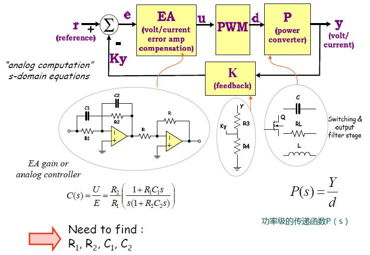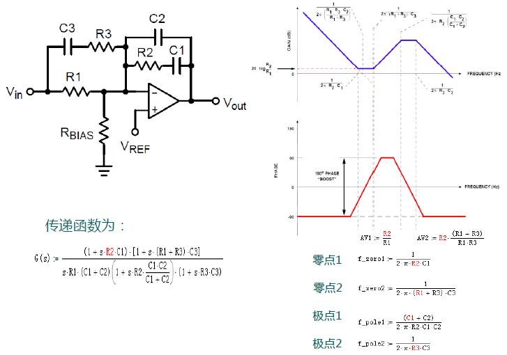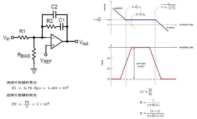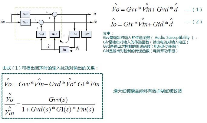 1、环路和直流稳压电源的关系 稳压电源工作原理 ![]() 我们需要什么样的电源? ![]() 文档:开关电源控制环路设计(初级篇).pdf 请加个人微信号:gcj5055 免费索取 2、与环路相关的基本概念 电源系统框图 ![]() Bode图(由奈奎斯特图测定稳态裕量是很麻烦的) ![]() 穿越频率和相位裕量,增益裕量 ■ 穿越频率fc(crossover frequency):增益曲线穿越0dB线的频率点 ■ 相位裕量phase margin):相位曲线在穿越频率处的相位和-180度之间的相位差 ■ 增益裕量(Gain margin):增益曲线在相位曲线达到-180度的频率处对应的增益 ![]() 环路稳定性判据 根据奈奎斯特稳定性判据,当系统的相位裕量大于0度时,此系统是稳定的。 ■ 准则1:在穿越频率处,总开环系统要有大于30度的相位裕量; ■ 准则2:为防止-2增益斜率的电路相位快速变化,系统的开环增益曲线在穿越频率附近 的增益斜率应为-1( -20db/10倍频程) ■ 准则3: 增益裕量是开环系统的模的度量,该变化可能导致曲线刚好通过-1 点。一般需要6db的增益裕量。 备注:应当注意,并不是绝对要求开环增益曲线在穿越频率附近的增益斜率为必须为-1,但是由于-1增益斜率对应的相位曲线相位延迟较小,且变化相对缓慢,因此它能够保证,当某些环节的相位变化被忽略时,相位曲线仍将具有足够的相位裕量,使系统保持稳定。 要满足上述的3个准则,我们需要知道开环系统所有环节的增益和相位情况,引入传递函数,零极点的概念可以很好的分析这个问题。。。 传递函数零点极点 ![]() 如果输入和反馈支路是由不同的电阻和电容构成的,则幅频和相频曲线将会有许多种形式。 把阻抗Z1和Z2用复变量s(s=jw)表示,经过一系列的数学运算,将会得到传递函数。由传递函数就可以绘制增益/相位曲线。 通过代数运算,把G(s)表示为G(s)=N(s)/D(s),其分子和分母都是s的函数, 然后将分子和分母进行因式分解,表示成多个因式的乘积,即 G(s)=N(s)/D(s)=[(1+s/2*pi*fz1)(1+s/2*pi*fz2)(1+/2*pi*fz3)]/ [(s/2*pi*f0)*(1+s/2*pi*fp1)*( 1+s/2*pi*fp2)* (1+s/2*pi*fp3)], 分子中对应的频率fz为零点频率,而与分母中对应的频率称fp为极点频率。f0称为初始极点。 零极点频率引起的增益斜率变化规则 尝试用零点极点来分析一个Type II补偿器![]() 转折频率Fz和Fp的设置。 Fz和Fp相距越远,相位裕量就越大。这样会使低频增益减小,降低了抑制低频纹波的衰减效果。同样高频增益增大,就会使高频窄噪声尖峰以更大的幅值通过。如果Fz在Fz2而不再Fz1,则在低频F1的增益是G1而不是G2;如果Fp在Fp2而不再Fp1,则在高频Fh的增益是G3而不是G4。 低频增益和纹波的关系 小信号模型 ![]() 常用的补偿控制器-Type II 常用的补偿控制器-Type III![]() 模拟环路设计流程 1、收集系统参数,例如输入电压,输出电压,滤波参数等,并确定开关频率 2、确定功率级的零极点 3、确定穿越频率和补偿器的类型 4、确定所需要的补偿器的零极点 5、计算实际的电阻电容参数 设计实例-一个简单的同步降压buck电路(电压型) ![]() 步骤1:收集系统参数 ![]() 步骤2: 确定功率级的零极点 ![]() 由输出滤波电感和电容引起的双极点: ![]() 由输出电容RSR引起的零点 ![]() ![]() 从上面的曲线中,我们可以计算出电压环的穿越频率: ![]() 然后还可以计算出电压环的相位裕量: ![]() 问题:到目前为止开环系统已经是稳定的,还需要设计环路吗? 步骤3:确定穿越频率和补偿器的类型 根据采样定理,穿越频率(fc)必须小于开关频率的1/2,但实际上穿越频率必须远小于开关频率的1/2,否则在输出中将会有很大的开关纹波。这里开关频率为200k,我们选择穿越频率20KHz(1/10开关频率)。 因为fpo<fzo< fc <fs/2,我们选择Type II型补偿器.(可对照上一页分析原因) 步骤4: 确定所需要的补偿器的零极点 ![]() 步骤5: 计算实际的电阻电容参数 ![]() 补偿器的bode图 系统开环bode图![]() 模拟控制的电源-----s域(连续) 数字控制的电源-----z域(离散)![]() 数字控制的电源设计方法(直接/间接) ![]() 环路分析仪-环路设计最给力的助手 ![]()