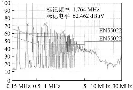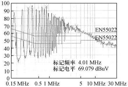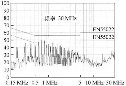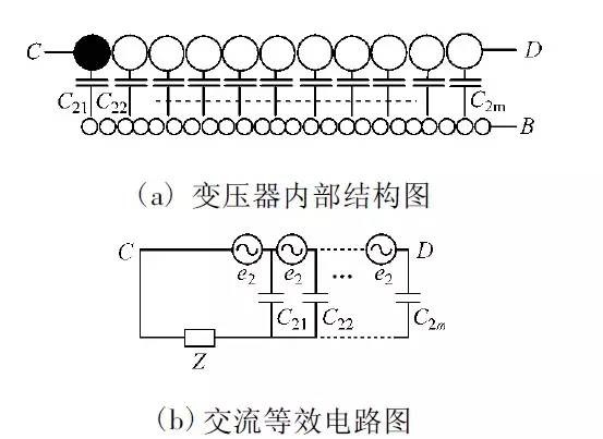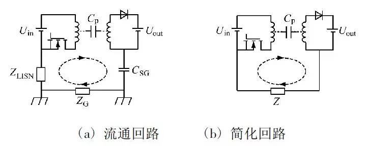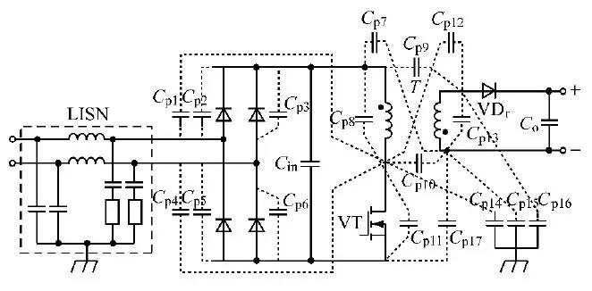 开关电源变压器屏蔽层抑制共模EMI的研究 摘要: 以反激式开关电源为例,在分析其高频变压器形成共模传导EMI 机理的基础上,探讨了在变压器设计中设置屏蔽层以抑制共模传导EMI 的原理。给出了具体的设计方法,并应用于具体产品的设计中。试验测试表明,屏蔽层的设置可以有效地抑制高频开关电源的共模传导EMI。由此进一步研究了屏蔽层在其他类型开关电源中应用的可行性。 0 引言 电磁兼容(Electromagnetic Compatibility,EMC)是指电子设备或系统在电磁环境下能正常工作,且不对该环境中任何事物构成不能承受的电磁骚扰的能力。它包括电磁干扰(EMI)和电磁敏感(EMS) 两方面。由于开关电源中存在很高的di /dt 和du /dt,因此,所有拓扑形式的开关电源都有电磁干扰的问题。目前克服电磁干扰的技术手段主要有:在电源的输入、输出端设置无源或有源滤波器,设置屏蔽外壳并接地,采用软开关技术和变频控制技术等。 开关电源中,EMI 产生的根本原因在于存在着电流、电压的高频急剧变化,其通过导线的传导,以及电感、电容的耦合形成传导EMI。同而电流、电压的变化必定伴有磁场、电场的变化,因此,导致了辐射EMI。本文着重分析变压器中共模传导EMI 产生的机理,并以此为依据,阐述了变压器中不同的屏蔽层设置方式对共模传导EMI 的抑制效果。 1 高频变压器中传导EMI 产生机理 以反激式变换器为例,其主电路如图1 所示。 开关管开通后,变压器一次侧电流逐渐增加,磁芯储能也随之增加。当开关管关断后,二次侧整流二极管导通,变压器储能被耦合到二次侧,给负载供电。 ![]() 图1 反激变换器 在开关电源中,输入整流后的电流为尖脉冲电流,开关开通和关断时变换器中电压、电流变化率很高,这些波形中含有丰富的高频谐波。另外,在主开关管开关过程和整流二极管反向恢复过程中,电路的寄生电感、电容会发生高频振荡,以上这些都是电磁干扰的来源。开关电源中存在大量的分布电容,这些分布电容给电磁干扰的传递提供了通路,如图2 所示。图2 中,LISN 为线性阻抗稳定网络,用于线路传导干扰的测量。干扰信号通过导线、寄生电容等传递到变换器的输入、输出端,形成了传导干扰。变压器的各绕组之间也存在着大量的寄生电容,如图3 所示。图3 中,A、B、C、D 4 点与图1 中标识的4点相对应。 ![]() 图2 反激式开关电源寄生电容典型的分布 ![]() 图3 变压器中寄生电容的分布 在图1 所示的反激式开关电源中,变换器工作于连续模式时,开关管VT 导通后,B 点电位低于A 点,一次绕组匝间电容便会充电,充电电流由A 流向B;VT 关断后,寄生电容反向充电,充电电流由B 流向A。这样,变压器中便产生了差模传导EMI。同时,电源元器件与大地之间的电位差也会产生高频变化。由于元器件与大地、机壳之间存在着分布电容,便产生了在输入端与大地、机壳所构成回路之间流动的共模传导EMI 电流。 具体到变压器中,一次绕组与二次绕组之间的电位差也会产生高频变化,通过寄生电容的耦合,从而产生了在一次侧与二次侧之间流动的共模传导EMI 电流。交流等效回路及简化等效回路如图4所示。图4 中:ZLISN为线性阻抗稳定网络的等效阻抗;CP为变压器一次绕组与二次绕组间的寄生电容;ZG为大地不同点间的等效阻抗;CSG为输出回路与地间的等效电容;Z 为变压器以外回路的等效阻抗。 ![]() 图4 变压器中共模传导EMI 的流通回路 2 变压器中共模传导EMI 数学模型 以图3 所示的变压器为例,最上层一次绕组与二次绕组间的寄生电容最大,是产生共模传导EMI 的主要原因,故以下主要分析这两层间分布电容对共模传导EMI 的影响,忽略变压器其他绕组对共模传导EMI 的影响。 设一次绕组有3 层,每层m 匝,二次绕组仅一层,为n 匝。当变压器磁芯中的磁通发生变化,便会同时在一次侧和次级产生感应电动势。根据叠加定理,可认为这是仅一次绕组有感应电动势、二次绕组电动势为零和仅二次绕组有感应电动势、一次绕组电动势为零两种情况的叠加。仅一次绕组有感应电动势、二次绕组电动势为零的情况如图5 所示。图5 中:e1为每匝一次绕组的感应电动势;C1x为一匝最外层一次绕组与二次绕组间的寄生电容。 ![]() 图5 仅一次绕组有感应电动势的情况 在此情况下,由一次侧流向次级的共模电流为: ![]() 在仅二次绕组有感应电动势、一次绕组电动势为零的情况如图6 所示。图6 中:e2为每匝二次绕组的感应电动势;C2x为一匝二次绕组与一次绕组最外层间的寄生电容。 ![]() 图6 仅二次绕组有感应电动势的情况 在此情况下,由次级流向一次侧的共模电流为: ![]() 根据叠加原理,可得在一次侧最外层绕组和次级间流动的共模电流: ![]() 3 屏蔽绕组抑制共模传导EMI原理 根据图3 所示的结构。绕制变压器,并在交流整流滤波后增设13 mH 差模滤波电感和6. 8差模滤波电容,对开关电源进行传导EMI 测试,结果如图6 所示。由图6 可见,传导EMI 非常严重,不能通过电磁干扰测试。在交流整流前增设35 mH 共模滤波电感,传导EMI 测试结果如图7 所示,产品即可通过测试。比较测试结果可得出:在图3 所示的电路中,主要是由于大量共模传导EMI,才使电源不能通过电磁干扰测试。 ![]() 图7 变压器内部不设置屏蔽的传导EMI 测试结果 去掉共模滤波电感,在变压器中增设一次侧屏蔽绕组如图8 所示,并将E 与A 点(电容Cin正极)相连。此时,一次侧屏蔽绕组代替了原