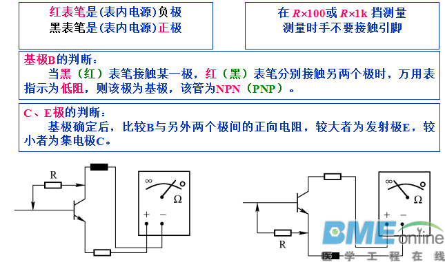 目录 培训简介与电子技术基础 线性电源和开关电源比较 开关电源的工作原理与用途 典型变频器驱动电源控制原理 变频器维修指南 1.简介与电子技术基础 电源图片 ![]() 一、电阻 1.1电阻色环识别与计算 电阻的单位:电阻的基本单位是“欧姆”,什么叫“1欧姆”?假如一段导线,两端的电压是1伏,此时流过 导线的电流是1安培,那么这段导线的电阻就是1欧姆,简称“欧”。1000欧=1千欧(KΩ),1000千欧=1兆欧(MΩ)。 欧姆的符号是“Ω”;千欧符号“ΚΩ”;兆欧符号“MΩ”。 ![]() ![]() 1.2电阻色环识别练习 二、半导体三极管晶体三极管简称三极管,它的工作状态有三种:放大、饱和、截止,因此,三极管是放大电路的核心元件具有电流放大能力,同时又是理想的无触点开关元器件。 1. 分类 内部结构:NPN型和PNP型管;工作频率:有低频和高频管;功率:有小功率和大功率管; 封装材料分:金属壳、塑封管等材料:有锗管和硅管等等。 ![]() 2. 结构和符号 ⑴三极管的结构 有三个区发射区、基区、集电区; 两个PN结发射结(BE结)、集电结(BC); 三个电极发射极e、基极b和集电极c; ![]() 小功率三极管 通常情况下,把集电极最大允许耗散功率PCM在1W以下的三极管称为小功率三极管。 中功率三极管 中功率三极管主要用在驱动和激励电路,为大功率放大器提供驱动信号。通常情况下,集电极最大允许耗散功率PCM在1~10W的三极管称为中功率三极管。 大功率三极管 集电极最大允许耗散功率PCM在10W以上的三极管称为大功率三极管。 3、三极管器件的命名方式 ![]() 4、贴片三极管的外形及特点 采用表面贴装技术SMT(Surface Mounted Technology)的三极管称为贴片三极管。贴片三极管有三个引脚的,也有四个引脚的。在四个引脚的三极管中,比较大的一个引脚是集电极,两个相通引脚是发射极,余下的一个引脚是基极。 ![]() 5、三极管的检测 指针式万用表检测三极管 指针式万用表检测普通三极管指针式万用表判断普通三极管的三个 电极、极性及好坏时,选择R×100或R×1k挡位,常分两步进行测量判断。 (1)三颠倒,找基极;PN结,定极型三极管的内部等效图如图所示,测量时要时刻想着此图,从而达到熟能生巧。 (2)判断基极、集电极顺箭头,偏转大;测不准,动嘴巴基极找到之后,判断出PNP型或NPN型,再找发射极和集电极。 用指针式万用表判断三极管极性 ![]() 三、半导体二极管 半导体二极管是在PN结上加接触电极、引线和管壳封装而成的。二极管有正极、负极两个电极。 ![]() 二极管命名 ![]() 种类: (1)按制作工艺不同: 点接触型二极管、面接触型二极管。 点接触型:点接触型二极管的结面积小、电容小,适用于高频、小电流的整流、检波、混频电路等面接触型:面接触型二极管的结面积大、结电容大,一般工作于低频电路下,如整流电路。 (2) 按结构材料分:锗二极管硅二极管 硅管与锗管的区别:导通电压不一样,硅管的导通电压为0.7V,锗管的导通电压为0.3V (3)按封装形式不同:玻璃封装、塑料封装、金属封装二极管 ![]() (4)按工作频率不同:高频二极管和低频二极管 (5)按二极管功率大小不同:大功率,小功率,中功率 桥式整流电路输出波形及二极管上电压波形 ![]() 二极管的检测 ![]() 二极管的测量及好坏判断 1、二极管的测量 将万用表打到蜂鸣二极管档,红表笔接二极管的正极,黑笔接二极管的负极,此时测量的是二极管的正向导通阻值,也就是二极管的正向压降值。不同的二极管根据它内部材料不同所测得的正向压降值也不同。 2、好坏判断 正向压降值读数在300--800为正常,若显示为0说明二极管短路或击穿,若显示为1说明二极管开路。将表笔调换再测,读数应为1即无穷大,若不是1说明二极管损坏。 正向压降值在200左右时,为稳压二极管;快恢复二极管的两读数都在200左右正常。 二极管的代换原则 1、主板上的二极管只要大小、模样相同即可代换,如红色的玻璃管。 2、不同用途之间的二极管不能代用,硅二极管和锗二极管之间也不能代用。 3、更换二极管时要认清正负极,不能接反,否则电路不能正常工作。 4、二极管为开路故障时可以先不拆下,直接用一个新的二极管并联上去(焊在原二极管的引脚焊点上)。 5、怀疑二极管击穿或性能不良时,一定要将原二极管拆下,再焊上新的二极管。 电容的分类 根据不同的标准电容就会有不同的分类,比如可以按照安装形式可以分为插件和贴片,按照极性可以分为有极和无极等等,也可以根据材料分为铝电解、钽电解、瓷片、云母、涤纶等等。 ![]() 分类介绍认识电容 1 名称:高频瓷介电容 符号:CC 电容量:1--6800p 额定电压:63--500V 主要特点:高频损耗小,稳定性好 应用:高频电路 名称:低频瓷介电容符号:CT 电容量:10p4.7u 额定电压:50V--100V 主要特点:体积小,价廉,损耗大,稳定性差 应用:要求不高的低频电路 ![]() 分类介绍认识电容 2 名称:聚酯(涤纶) 电容符号:CL 电容量:40p--4u 额定电压:63--630V 主要特点:小体积,大容量,耐热耐湿,温度特性好,稳定性略差。 应用:要求不高的低频振荡电路 ![]() 分类介绍认识电容 3 名称:聚苯乙烯 电容符号:CB 电容量:10p--1u 额定电压:100V--30KV 主要特点:稳定,低损耗,体积较大 应用:对稳定性和损耗要求较高的电路 ![]() 类介绍认识电容 4 名称:聚丙烯 电容符号:CBB 电容量:1000p--10u 额定电压:63--2000V 主要特点:性能与聚苯乙烯相似但体积小,稳定性略差 应用:代替大部分聚
