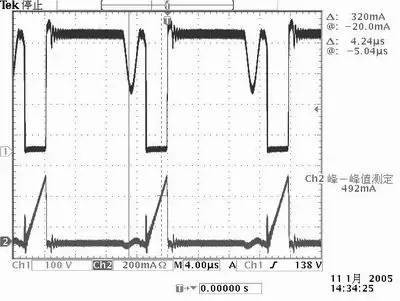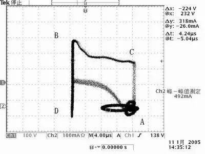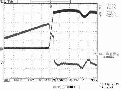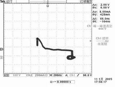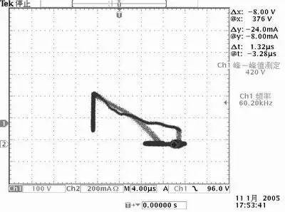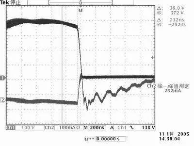 MOSFET开关轨迹线的示波器重现方法 MOSFET的开关轨迹线是判断MOSFET开关过程“软硬”程度的重要评估指标,MOSFET的软硬程度对于开关电源的性能、寿命、EMI水平都有至关重要的影响,本文介绍了一种简单实用的方法,利用泰克TDS3000系列示波器,可以实时做出MOSFET的开关轨迹线,为改善MOSFET的开关状态提供依据。 开关电源中的开关器件(本文以MOSFET为例)在任意时刻的损耗都可以用下式计算 ![]() 其中,ID为开关器件的电流,UDS为电压。一般地,我们希望开关器件工作在饱和或截止状态。为减小开关损耗,在器件开关的动态过程中,总希望ID和UDS在任意时刻都至少有一个值接近或等于零。开关轨迹线可以很好的体现出开关器件的电流和电压的关系,开关轨迹线以MOSFET的漏源极电压UDS为横轴,漏极电流ID为纵轴,标示出MOSFET所承受的电流和电压的关系。典型开关轨迹线如图1所示: 图1中a线表示了MOSFET的一次开通过程,UDS逐渐降低,ID逐渐升高;b线表示了一次关断过程,UDS逐渐升高,ID逐渐降低。但是这样的开关过程中存在电压和电流都很高的时刻,将会造成很大的开关损耗,这就是所谓的硬开关。硬开关不但增加了开关损耗,而且影响 MOSFET的寿命,更造成复杂的EMI问题,所以我们通常希望开关过程尽量“软”一点。c、d线表示了一次理想的软开关过程,c线表示MOSFET开通时,漏源极电压下降到零,漏极电流才开始从零上升,d线表示MOSFET关断时,漏极电流先下降到零后,漏源极电压才开始上升。也就是说,开关轨迹线越是靠近坐标轴,开关过程就越“软” ![]() 图1. 典型开关轨迹线 开关轨迹线利用开关轨迹线,可以评估MOSFET的开关状态,为改善开关过程提供定量依据。本文介绍了一种利用TDS3000系列示波器,可以实时做出MOSFET 的开关轨迹线,为改善MOSFET的开关状态提供指标。试验电路为常见的回扫(flyback)电路,如图2。CH1通道接电压探头,采样MOSFET漏极电压,CH2通道接电流探头,采样MOSFET的漏极电流。选择合适的水平和垂直标度,将触发电平设置到CH1上,可以得到如图3所示波形。 这个波形只是表示出电压和电流随时间变化的情况,没有直观地体现电压和电流的相互关系。我们可以利用TDS示波器的XY显示模式,观察MOSFET的开关轨迹线。将TDS示波器调节到XY模式,调节CH1和CH2的幅值标度到合适位置,即可得到如图3.b所示波形。这个波形显示了一个完整的MOSFET开关周期中的电流电压的相互关系,也就是开关轨迹线。其中ABC为开通轨迹线,CDA为关断轨迹线。 也可以将MOSFET的开通轨迹线单独显示在屏幕上,具体做法如下:将时域的波形逐渐拉宽,让整个屏幕只显示开通过程的波形(此时除了调节时间标度,还可能需要调节一下触发电平),使开通瞬间地电流电压波形处于屏幕正中间,如图4。 此时,将示波器调节到XY模式下,即可可以看到MOSFET的开通轨迹线。在回扫电路中,由于MOSFET开通后,变压器原边电感限制漏极电流的突变,漏极电流从零上升,MOSFET是软开通。这个特性在开通轨迹线上,表现为电压先沿着或贴近X轴减小到零,漏极电流才开始上升。 ![]() 图2. 被测试电路图 同样的方法,可以观察到MOSFET的关断轨迹线。关断前,漏极电流正处于峰值电流出(此时,MOSFET的状态正处于开关轨迹线的C点)。关断过程中,漏极电流下降的同时,漏源极电压上升,从图5.b上看,表现为关断轨迹线位置很高。MOSFET是硬关断,关断损耗很大。并且,变压器原边漏感中的能量对 MOSFET造成很大的电压冲击。 利用开关轨迹线减小开关损耗 由以上分析可知,开关轨迹线可以直观地反映MOSFET地开关损耗。我们总是希望MOSFET的开关损耗尽可能减小,为此,我们常常在MOSFET周围添加一些辅助电路,开关轨迹线可以帮助我们评估改善的效果。 以图示的回扫电路为例,为了改善MOSFET的关断轨迹,在变压器原边绕组两端并联RC缓冲支路(如图6),限制MOSFET关断时漏极电压的上升速度。 图6中所示,R=1kΩ,C=200pF,图7a~d为加入RC电路后的开关轨迹线。与之前的开关轨迹线相比,加入RC电路后,MOSFET的关断轨迹更靠近坐标轴了(图7.d)。这是因为在MOSFET关断瞬间,由于电容电压不能突变,依然保持输入电压,使得MOSFET上电压保持为零。随着电容C的放电,MOSFET的电压才逐渐升高。这样,就限制了MOSFET漏源极电压的上升速度,关断损耗得到减小,不过关断损耗的减小是以开通损耗的增加为代价的。这是由于MOSFET关断期间,电容C上电压为零,MOSFET开通瞬间,电容C通过电阻R和MOSFET充电引起的。从图7.c开通轨迹线上可以看出,MOSFET的开通轨迹线向“上”移动了,也就是说,漏源极电压还没下降到零时就有漏极电流流过了。 应该权衡考虑开通损耗和关断损耗,选择适当的RC值。利用开关轨迹线可以方便地找到这个平衡点,以确保总损耗降至最低 图3.a MOSFET电流电压波形![]() 图3.b MOSFET的开关轨迹线 ![]() 图4.a MOSFET的开通过程 ![]() 图4.b MOSFET的开通轨迹线 ![]() 图5:a)MOSFET的开通过程。 ![]() 图5.b)MOSFET的开通轨迹线。 图6. 变压器原边并联RC缓冲电路 ![]() 图7 关断缓冲电路的效果a. 开关电压电流波形 ![]() b. 开关轨迹线 ![]() c. 开通轨迹线 ![]() d. 关断轨迹线 本文总结: 利用示波器的XY显示模式,可以方便地重现MOSFET的开关轨迹线。利用这一功能,我们可以定量地了解回扫电路中MOSFET的开关情况,并为其吸收电路选择合理参数。这个方法也可以方便地应用到其他功率开关和电路拓扑中去。