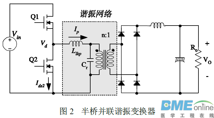 摘要 近年 LCC 谐振变换器备受关注,因为它优于常规串联谐振变换器和并联谐振变换器:在负载和输入变化较大时,频率变化仍很小,且全负载范围内切换可实现零电压转换(ZVS)。本文介绍了LLC 型谐振变换器的分析方法,回顾了LLC 型谐振变换器的实际设计要素。其中包括设计变压器和选择元器件。采用一设计实例,逐步说明设计流程,有助于工程师更加轻松地设计LLC 谐振器。 获取本文原版文档LLC谐振变换器的设计--仙童版本.pdf方法如下: 关注本公众号回复"LLC"免费获取 引言功率变换器设计中,对增大功率密度,缩小设计尺寸的要求越来越高,迫切需要设计师提高开关频率。采用高频工作将大大降低无源器件的尺寸,如变压器和滤波器。但存在的开关损耗却对高频工作带来不利影响。为减少开关损耗,使高频工作正常,故提出谐振切换技术 。这些技术按正弦波处理功率,并且开关器件可以很方便地软换向。因此,开关损耗和噪声可大幅度减少。常规谐振器使用串联的电感电容作为谐振网络。负载连接有两种基本结构,串联和并联。 对于串联谐振变换器(SRC), 整流负载网络与一个LC 谐振网络串联,如图1 所示。从这个结构看来,谐振网络与负载作为一个分压器。通过改变驱动电压Vd的频率,改变谐振网络的阻抗。输入电压将分配到这部分阻抗和反射负载上。因为,它是一个分压器,SRC 直流增益始终小于1。在小负载条件下,负载阻抗相对于与谐振网络的阻抗非常大;全部输入电压落在负载上。这使得人们很难在小负载条件下调节输出。理论上,在没有负载的情况下调节输出,频率会变为无限大。 对于并联谐振变换器,整流负载网络与谐振电容是并联的,如图所示。由于负载同谐振网络是并联的,因此不可避免地存在着大量的循环电流。这使得人们难以在大功率场合下使用并联谐振电路。 ![]() ![]() 为了解决传统谐振变换器的局限性,提出了LLC 谐振变换器。对比常规谐振器,LLC 型谐振变换器具有许多优点。首先,它可以在输入和负载大范围变化的情况下调节输出,同时开关频率变化相对很小。第二,它可以在整个运行范围内,实现零电压切换(ZVS)。最后,所有寄生元件,包括所有半导体器件的结电容和变压器的漏磁电感和激磁电感,都是用来实现ZVS 的。 本文讲述了一种半桥LLC 谐振器的分析和设计要素。利用基波近似法分析了电压和电流波形,并得到了系统增益方程。选择一个输出为120W/24V 直流/直流转换器的设计作为典型的例子,来说明设计流程。 工作原理和基波近似图3 为半桥LLC 谐振变换器简化示意图,图4 是它的典型波形。图3 中,Lm 是变压器励磁电感,Llkp 和Llks 分别表示变压器初级和次级的漏感。LLC 谐振变换器的工作原理和传统LC 串联谐振变换器是类似的。唯一不同的是,激磁电感相对较小,因此Lm+Llkp 和Cr 之间的谐振会影响变换器的工作。由于激磁电感较小,存在着相当大的磁化电流(Im),如图4 示。 一般来说,LLC 谐振拓扑包括三部分,如图3 所示;方波发生器,谐振网络和整流网络。 - 方波发生器,通过每次切换都以50%占空比交替驱动开关Q1 和Q2 产生方波电压Vd。方波发生器级可设计成一个全桥或半桥型。 - 谐振网络包括一个电容器,变压器的漏磁电感和激磁电感。谐振网络可以滤掉高次谐波电流。因此,即使方波电压应用于谐振网络,基本上只有正弦电流允许流经谐振网络。电流(Ip)滞后于施加于谐振网络的电压(也就是说,方波电压(Vd)的基波施加到了半桥上的图腾),这允许零电压开启MOSFET。从图4可以看到,当电流流经反向并联二极管时,MOSFET开启电压为零。 - 整流网络通过整流二极管和电容器调整交流电,输出直流电压。整流网络可设计成一个带有电容输出滤波器的全桥或中心抽头结构。 ![]() ![]() 谐振网络的滤波功能可以让我们用经典的基波近似原理获得谐振器的电压增益,假定只有输入到谐振网络的方波电压的基波有助于功率传递到输出。由于次级整流电路起到一个阻抗变压器的作用,等效负载电阻与实际负载电阻是不同的。图5 显示了如何得到等效负载电阻。初级电路被替换成一个正弦电流源Iac和方波电压VRI,作为整流器输入电压。因为Iac的平均值是输出电流Io,可得到: ![]() ![]() ![]() 利用等效负载阻抗,得到AC 等效电路,如图6 所示,VdF和VROF分别表示驱动电压Vd 和反射输出电压VRO(nVRI)的基波。 ![]() ![]() 利用等式 (5) 的等效负载阻抗,得到LLC 谐振变换器特性。利用图6 示AC 等效电路,计算电压增益M ![]() 从等式(6)可以看出,电路有两个谐振频率。一个由Lr 和Cr确定,另一个由Lp 和Cr 决定。在实际变压器中,分别利用次级线圈开路和短路在初级测得Lp 和Lr。 等式(6)需要关注的是,在谐振频率(ωo)处,不管负载怎么变化增益都是固定的。 ![]() 不考虑变压器次级的漏磁电感,等式(7)的增益变成1。在以前的研究中,变压器次级的漏磁电感常被忽略,以简化增益方程。然而,可以看到,如果忽略变压器次级漏磁电感,计算的增益会存在相当大的误差,导致设计结果不正确。 ![]() 等式(7)中谐振频率(ωo)下的增益也可以简化成用K 表示的等式 ![]() 尽管增益表示成等式(8),当操作一个实际的变压器时,增益最好表示成Lp 和Lr 的函数。因为这两个量是很容易测量的。把Lp 和Lr 用K 表示,我们可以得到: 最新评论论坛新帖更多>医工工具 |