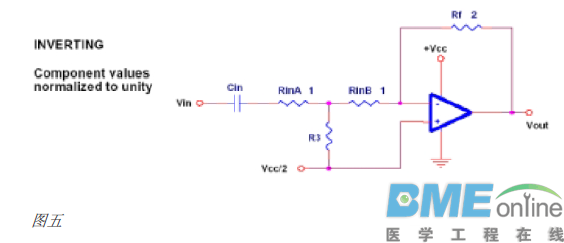 引言 我们经常看到很多非常经典的运算放大器应用图集,但是这些应用都建立在双电源的基础上,很多时候,电路的设计者必须用单电源供电,但是他们不知道该如何将双电源的电路转换成单电源电路。 在设计单电源电路时需要比双电源电路更加小心,设计者必须要完全理解这篇文章中所述的内容。 1.1 电源供电和单电源供电 所有的运算放大器都有两个电源引脚,一般在资料中,它们的标识是VCC+和VCC-,但是有些时候它们的标识是VCC+和GND。这是因为有些数据手册的作者企图将这种标识的差异作为单电源运放和双电源运放的区别。但是,这并不是说他们就一定要那样使用――他们可能可以工作在其他的电压下。在运放不是按默认电压供电的时候,需要参考运放的数据手册,特别是绝对最大供电电压和电压摆动说明。 绝大多数的模拟电路设计者都知道怎么在双电源电压的条件下使用运算放大器,比如图一左边的那个电路,一个双电源是由一个正电源和一个相等电压的负电源组成。一般是正负15V,正负12V和正负5V也是经常使用的。输入电压和输出电压都是参考地给出的,还包括正负电压的摆动幅度极限Vom以及最大输出摆幅。 单电源供电的电路(图一中右)运放的电源脚连接到正电源和地。正电源引脚接到VCC+,地或者VCC-引脚连接到GND。将正电压分成一半后的电压作为虚地接到运放的输入引脚上,这时运放的输出电压也是该虚地电压,运放的输出电压以虚地为中心,摆幅在Vom 之内。有一些新的运放有两个不同的最高输出电压和最低输出电压。这种运放的数据手册中会特别分别指明Voh 和Vol 。需要特别注意的是有不少的设计者会很随意的用虚地来参考输入电压和输出电压,但在大部分应用中,输入和输出是参考电源地的,所以设计者必须在输入和输出的地方加入隔直电容,用来隔离虚地和地之间的直流电压。(参见1.3节) ![]() 通常单电源供电的电压一般是5V,这时运放的输出电压摆幅会更低。另外现在运放的供电电压也可以是3V 也或者会更低。出于这个原因在单电源供电的电路中使用的运放基本上都是Rail-To-Rail 的运放,这样就消除了丢失的动态范围。需要特别指出的是输入和输出不一定都能够承受Rail-To-Rail 的电压。虽然器件被指明是轨至轨(Rail-To-Rail)的,如果运放的输出或者输入不支持轨至轨,接近输入或者接近输出电压极限的电压可能会使运放的功能退化,所以需要仔细的参考数据手册是否输入和输出是否都是轨至轨。这样才能保证系统的功能不会退化,这是设计者的义务。 1. 2 虚地单电源工作的运放需要外部提供一个虚地,通常情况下,这个电压是VCC/2,图二的电路可以用来产生VCC/2的电压,但是他会降低系统的低频特性。 ![]() R1 和R2 是等值的,通过电源允许的消耗和允许的噪声来选择,电容C1 是一个低通滤波器,用来减少从电源上传来的噪声。在有些应用中可以忽略缓冲运放。 在下文中,有一些电路的虚地必须要由两个电阻产生,但是其实这并不是完美的方法。在这些例子中,电阻值都大于100K,当这种情况发生时,电路图中均有注明。 1. 3 交流耦合虚地是大于电源地的直流电平,这是一个小的、局部的地电平,这样就产生了一个电势问题:输入和输出电压一般都是参考电源地的,如果直接将信号源的输出接到运放的输入端,这将会产生不可接受的直流偏移。如果发生这样的事情,运放将不能正确的响应输入电压,因为这将使信号超出运放允许的输入或者输出范围。 解决这个问题的方法将信号源和运放之间用交流耦合。使用这种方法,输入和输出器件就都可以参考系统地,并且运放电路可以参考虚地。当不止一个运放被使用时,如果碰到以下条件级间的耦合电容就不是一定要使用:第一级运放的参考地是虚地第二级运放的参考第也是虚地这两级运放的每一级都没有增益。任何直流偏置在任何一级中都将被乘以增益,并且可能使得电路超出它的正常工作电压范围。 如果有任何疑问,装配一台有耦合电容的原型,然后每次取走其中的一个,观察电工作是否正常。除非输入和输出都是参考虚地的,否则这里就必须要有耦合电容来隔离信号源和运放输入以及运放输出和负载。一个好的解决办法是断开输入和输出,然后在所有运放的两个输入脚和运放的输出脚上检查直流电压。所有的电压都必须非常接近虚地的电压,如果不是,前级的输出就就必须要用电容做隔离。(或者电路有问题) 1. 4 组合运放电路 在一些应用中,组合运放可以用来节省成本和板上的空间,但是不可避免的引起相互之间的耦合,可以影响到滤波、直流偏置、噪声和其他电路特性。设计者通常从独立的功能原型开始设计,比如放大、直流偏置、滤波等等。在对每个单元模块进行校验后将他们联合起来。除非特别说明,否则本文中的所有滤波器单元的增益都是 1。 1. 5 选择电阻和电容的值每一个刚开始做模拟设计的人都想知道如何选择元件的参数。电阻是应该用1 欧的还是应该用1 兆欧的?一般的来说普通的应用中阻值在K 欧级到100K 欧级是比较合适的。高速的应用中阻值在100 欧级到1K 欧级,但他们会增大电源的消耗。便携设计中阻值在1 兆级到10 兆欧级,但是他们将增大系统的噪声。用来选择调整电路参数的电阻电容值的基本方程在每张图中都已经给出。如果做滤波器,电阻的精度要选择1% E -96系列(参看附录A