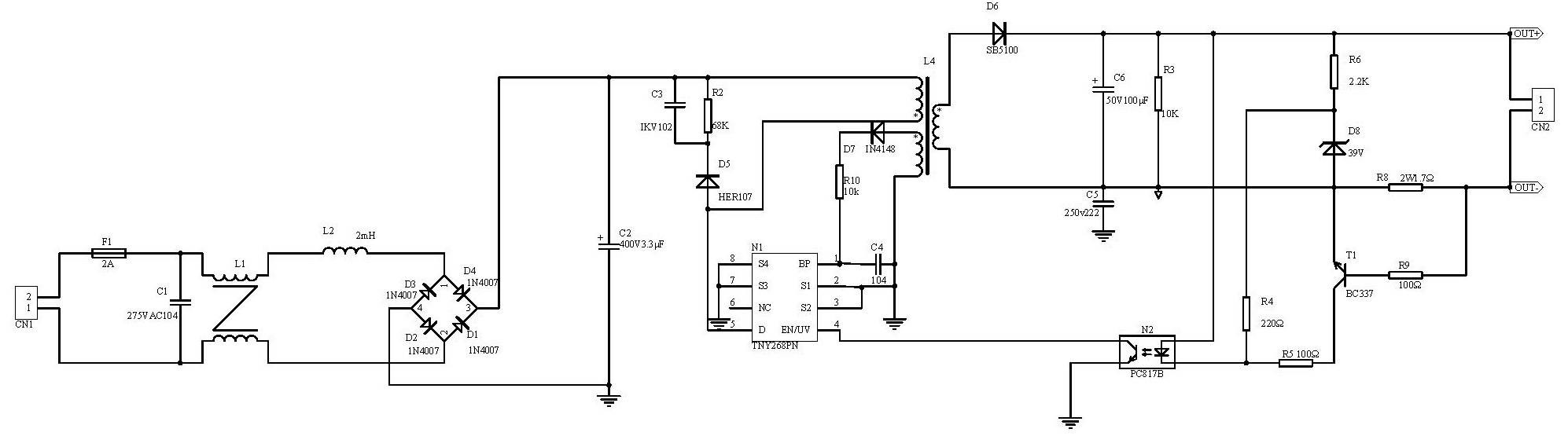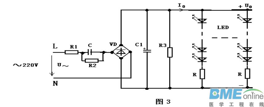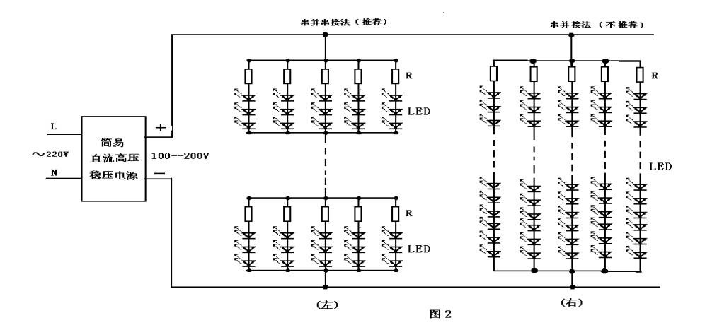 一 LED基本分类与应用 ●按输出功率分类: 0.4W、1.28W、1.4W、3W、4.2W、5W、8W、10.5W、12W、15W、18W、 20W、23W、25W、30W、45W、60W、100W、120W、150W、200W、300W 等。 ●按输出电压分类: DC4V、6V、9V、12V、18V、24V、36V、42V、48V、54V、63V、81V、105V、135V等。 ●按外形结构分类: PCBA裸板和有外壳的两种。 ●按安全结构分类: 隔离和非隔离的两种。 ●按功率因数分类: 带功率因数校正和不带功率因数。 ●按防水性能分类: 防水和不防水两种。 ●按激励方式分类: 自激式和它激式。 ●按电路拓扑分类: RCC、Flyback、Forward、Half-Bridge、Full-Bridge、Push-PLL 、LLC等。 ●按转换方式分类: AC-DC与DC-DC两种。 ●按输出性能分类: 恒流、恒压与既恒流又恒压三种。 LED驱动电源的应用 分别用于射灯、橱柜灯、小夜灯、护眼灯、LED天花灯、灯杯、埋地灯、水底灯、洗墙灯、投光灯、 路灯、招牌灯箱、串灯、筒灯、异形灯、星星灯、护拦灯、彩虹灯、幕墙灯、柔性灯、条灯、带灯、 食人鱼灯、日光灯、高杆灯、桥梁灯、矿灯、手电筒、应急灯、台灯、灯饰、交通灯、节能灯、汽车尾灯、草坪灯、彩灯、水晶灯、 格栅灯、遂道灯等。 二、LED驱动电源的重要性接触过LED的人都知道:由于LED正向伏安特性非常陡 图1.1(正向动态电阻非常小),要给LED正常供电就比较困难。不能像普通白炽灯一样,直接用电压源供电,否则电压波动稍增,电流就会增大到将LED烧毁的程度。为了稳定LED的工作电流,保证LED能正常可靠地工作,具有”镇流功能”的各种各样的LED驱动电路就应运而生。最简单的是串联一只镇流电阻,而比较复杂的是用许多电子元件构成的“恒流驱动器”。 ![]() 一 镇流电阻方案 此方案的原理电路图见图1。这是一种极其简单,自LED面世以来至今还一直在用的经典电路。 LED工作电流I按下式计算: ![]() I与镇流电阻R成反比;当电源电压U上升时,R能限制I的过量增长,使I不超出LED的允许范围。 此电路的优点是简单,成本低;缺点是电流稳定度不高;电阻发热消耗功率,导致用电效率低,仅适用于小功率LED范围。 一般资料提供的镇流电阻R的计算公式是: ![]() 按此公式计算出的R值仅满足了一个条件:工作电流I 。而对驱动电路另两个重要的性能指标:电流稳定度和用电效率,则全然没有顾及。因此用它设计出的电路,性能没有保证。 ![]() 二 镇流电容方案 电路的工作是基于在交流电路中,电容存在容抗XC也有”镇流作用”的原理。另外电容消耗无功功率,不发热;而电阻则消耗有功功率,会转化为热能耗散掉,所以镇流电容比镇流电阻,能节省一部分电能,并能设计成将LED灯直接接到市电~220V上,使用更为方便。 此方案的优点是简单,成本低,供电方便;缺点是电流稳定度不高,效率也不高。仅适用于小功率LED范围。当LED的数量较多,串联后LED支路电压较高的场合更为适用。 ![]() 三 线性恒流驱动电路 上面已经提到电阻、电容镇流电路的缺点是电流稳定度低(△I/I达±20~50%),用电效率也低(约50~70%),仅适用于小功率LED灯。 为满足中、大功率LED灯的供电需要,利用电子技术常见的电流负反馈原理,设计出恒流驱动电路。和直流恒压电源一样,按其调整管是工作在线性,还是开关状态,恒流驱动电路也分成两类:线性恒流驱动电路和开关恒流驱动电路。 图4是最简单的两端线性恒流驱动电路。它借用三端集成稳压器LM337组成恒流电路,外围仅用两个元件:电流取样电阻R和抗干扰消振电容C 四 开关电源驱动电路 上述线性恒流驱动电路虽具有电路简单、元件少、成本低、恒流精度高、工作可靠等优点,但使用中也发现几点不足: a、调整管工作在线性状态,工作时功耗高发热大(特别是工作压差过大时),不仅要求较大尺寸的散热器,而且降低了用电效率。 b、电源电压要求按公式(13)与LED工作电压严格匹配,不允许大范围改变。也就是说它对电源电压及LED负载变化的适应性差。 c、它仅能工作在降压状态,不能工作在升压状态。即电源电压必须高于LED工作电压。 d、供电不太方便,一般要配开关稳压电源,不能直接用~220V供电。 输入整流:将正负变化的交流电变成单向变化的直流电 滤波:将变化的电压波形平滑成波动较小的直流电压波形 变压器:储存能量,产生需要的输出电压.原、副边隔离。 输出稳压:稳定输出电压 取样反馈:将输出电压的变化反映到控制电路,以便采取相应的措施保证输出电压在规定的范围内 PWM+开关:控制电路,根据反馈回来的信号控制变压器储存能量的多少,从而保证输出的稳定 采用开关电源驱动的优点:效率高,一般可以做到80%~90%,输出电压、电流稳定。输出纹波小。且这种电路都有完善的保护措施,属高可靠性电源。 LED驱动电源主要有恒压式和恒流式 (1)恒压式: a、当稳压电路中的各项参数确定以后,输出的电压是固定的,而输出的电流却随着负载的增减而变化; b、恒压电路不怕负载开路,但严禁负载完全短路。 c、 以稳压驱动电路驱动LED,每串需要加上合适的电阻方可使每串LED显示亮度平均; d、 亮度会受整流而来的电压变化影响。 (2)恒流式: a、 恒流驱动电路输出的电流是恒定的,而输出的直流电压却随着负载阻值的大小不同在一定范围内变化,负载阻值小,输出电压就低,负载阻值越大,输出电压也就越高; b、 恒流电路不怕负载短路,但严禁负载完全开路。 c、 恒流驱动电路驱动LED是较为理想的,但