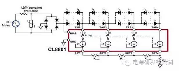 最近有一种说法“去电源化是大势所趋”,对于这种说法是需要加以澄清的,因为它误导了LED的电源行业。如果按照这种说法,那么所有从事LED驱动电源的公司人员都应该马上做好关门的准备了。其中有一些基本的问题需要搞清楚。 1.什么是AC-LED 我们知道LED是一种发光二极管,它本质上是一个直流器件。如果我们采用交流市电供电那就至少要有交流变换为直流的电源。那么能不能完全不用这种变换呢,也是可以的,那就是把LED本身当作是整流二极管来用,这就是所谓的“AC-LED”,这是7、8年以前就有人提出来的,而且韩国的首尔半导体业曾经大肆宣扬过的。我们可以来看一下它的原理: ![]() 图1. 把LED连接成为全波整流桥 只要整流桥的每个臂串联足够的LED就可以承受高压。为了要让每个臂能都流通,就必须加上中间这个臂,这样问题就来了,无论在正弦波的正半周还是负半周,中间这一个臂是一直都导电的,而其他四个臂就只在上半周或下半周导通,所以它的LED利用率不高发光效率不高。 2.恒流驱动源 更大的问题在于如果把这个AC-LED直接加到市电上,就一定会把LED全部烧毁,因为LED是必须采用恒流电源驱动的,就是不管所加的电压如何变动,其驱动电源必须是电流恒定,否则LED就会烧毁。这是由于其伏安特性的负温度系数决定的。 图2是LED伏安特性的负温度系数曲线示意图。一个LED如果在25°C时,加3.3V电压时的电流是20mA,那么当结温升高到85°C(通常加电以后就会升高到至少85°C)后,即使电压还是3.3V,电流就会升高到37mA左右,而电流的升高会带来结温的进一步升高。 ![]() 图2. LED伏安特性的负温度系数示意图 也就是说当LED的结温升高时,由于其伏安特性的负温度系数的特点,其伏安特性会整体左移。如果采用恒压电源供电,其电流就会增加而形成正反馈,最后会导致LED烧毁。所以在AC-LED中,假如直接接到交流电源器结果一定是烧毁。为了解决这个问题就必须串联限流电阻和一个正温度系数的保护电阻PTC如图3所示。 ![]() 图3. AC-LED必须串联限流电阻以防烧毁 串上限流电阻以后,其结果是耗费更多无用功率,而使得其效率更低,这种AC-LED要使用比普通LED多一倍的LED数目,再加上效率极低,所以是根本没有实用价值的!推出来就没有市场! 3.HV-LED 这只是把一定数量的LED串联起来,所以它的规格有限,例如45V等。过去还曾经说这是LED的新方向,其实完全不是这样,因为用户有各种不同的应用,就要求用不同的串联个数,所以串联的数目不容易确定,例如下面的无电解电容系统就很难采用HV-LED。 4.不要把去电解电容说成是去电源化! 现在有不少人把无电解电容恒流驱动源说成是去电源化,这是十分错误的。因为无电解电容恒流驱动源只不过是在恒流驱动源里拿掉了电解电容而已,其他的很多元器件都在,怎么就变成了去电源了呢?去电解电容不等于去电源! 我们先来了解一下什么是无电解电容恒流驱动源吧。 无电解电容电源的最早创始人是美国硅谷的ExClara公司,他们开发的芯片是EXC100。它的工作原理如图4(图中采用了Supertex的CL8801的原理图)。 ![]() 图4. 无电解电容电源系统的原理图 这种系统是把整流桥后面的电解电容去掉,使得其输出电压保持为半个正弦波的样子,后面接的全部串联的LED串分为几个小串,然后在半个正弦波期间按照电压的变化依次点亮这些小串,其点亮时间图如图5所示; ![]() 图5. 无电解电容时各串LED的导通时间图 由图中可见,第一串最早导通,导通的时间最长,但导通的电流最小;第二串稍晚导通,导通时间其次,电流也稍大。第三串最晚导通,导通时间最短,电流也最大。这种无电解电容系统后来发展了很多版本,基本原理都是一样,只是分的段数有所不同,例如图4的原理图里就是分成4段。国内还有分成23段的。不管怎样,它们都有同样的缺点和问题。 a)每串都不是全时间点亮,所以其LED的利用效率低。 b)各串的电流各不相同,有的低于其额定值,有的高于额定值,所以低于额定值的没有充分发挥LED的作用,而高于额定值的就有过负荷的危险,寿命明显低于正常驱动。 c)前两项加在一起,使得其总的发光效率降低,经过测试大约低15%左右。 d)最大的缺点是电流形状也是半个正弦波,所以其发光有100Hz的闪烁(在美国为120Hz),这种闪烁对于人眼和人脑都有损害,根据医学研究结果认为要更高的频率才没有影响,所以美国能源之星明确规定,LED光源的闪烁频率必须高于150Hz,这也就意味着这种产品根本就无法通过美国能源之星,只好拿到中国和第三世界来用。 e)而且从图5的波形图可以看到还有一段时间是完全不亮的,如果用数码相机或是手机照相的时候就会产生明显的斑马条纹(见图6)。 ![]() 无电解电容 有电解电容 图6. 采用手机拍摄的无电解电容和有电解电容的照片 更为严重的是如果用到安防摄像机就有可能在黑暗的瞬间拍摄而遗漏了最重要的场景。所以,在安防监控摄像区的照明是严禁采用无电解电容灯具照明的。 f)这种无电解电容的恒流驱动源仍然只是普通的线性恒流源(例如恒流二极管),所以它的效率是十分低下的。当输入交流市电电压变化时,它的效率如图7所示: ![]() 图7. 无电解电容SU1203的电源效率和输入电压关系曲线 其实所有的线性恒流源的效率曲线都是一样的,也就是说都是和这条曲线完全一样,在195-255Vrms从98%变到70%,220V的时候是84%。 5.无电解电容光引擎 把上面