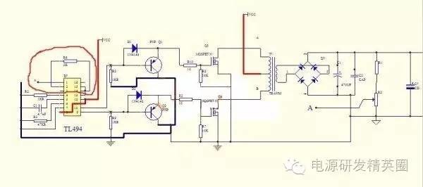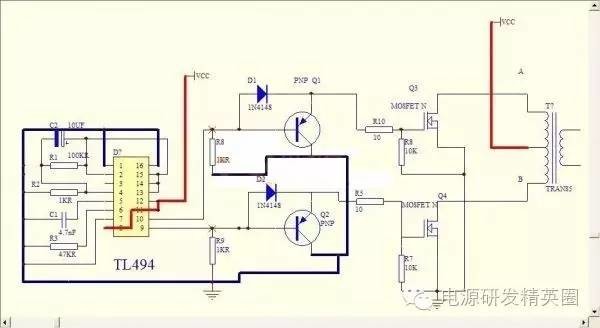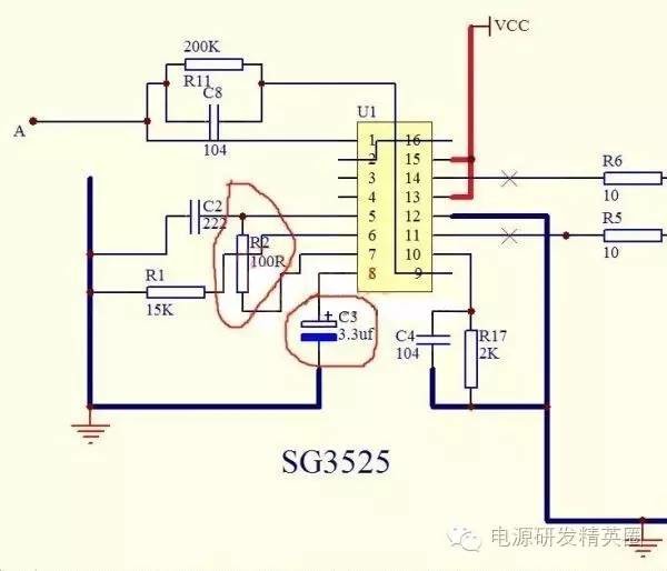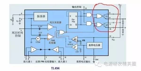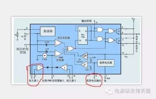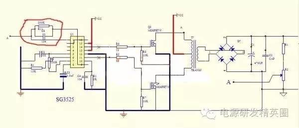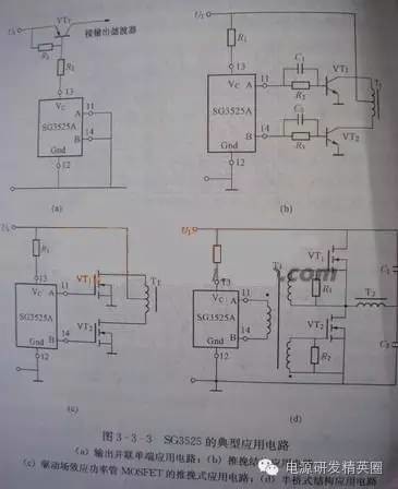 目的是让一些应用494与3525处于模糊状态的与我一样的新手受到启发,通过我发的电路截图,不同芯片实现相同功能的电路《开环,闭环稳压,死区,频率,过流保护,软启动》进行比较希望可以对新手使用IC分析电路得到启发。本人能力有限,说错还请各位指正批评,先谢谢了。 由于现在多数都是用3525和494两款驱动场馆工作,因此性能比较就按驱动场馆的电路进行比较。 《开环》也是最基本用法,争取最少原件情况下使IC进入稳定运行状态。下边两张图就是基本应用电路(由于出产厂家不同所以只限)驱动2-3对TO-220小管可靠工作 ![]() 通过两张图比较可以看出494的电路中多了两只PNP管子组成的电路.此电路的作用是起到泄放与之相连的场馆结电容余电的作用有助于场管工作时可靠关断.下边两张图是3525与494内部原理框图可以看出画红圈处输出部分有所不同3525是两组分别工作的图腾放大电路,而494内部只是分别两个NPN管子是单管输出的,不能同时具备拉和灌电流功能,所以不能直接驱动高频工作的MOS ![]() 《调节频率》3525调节振荡频率调节5脚定时电容或6脚定时电阻,494调节频率调节5脚定时电容与6脚定时电阻。 《3525软启动与死区调节》3525死区调整7至5脚电阻R2,软启动调节8脚对地电解电容 《TL494软启动与死区》494死区调节14脚5V到4脚之间的电压比例(调节R17R18比例),软启动调节4脚连接的电容C3的容量 --------------------------------------------------------------------------------------------------------------------------------------------------------------------------------------------- 如果想用这两款芯片驱动多对场管必须增加如下图的图腾柱驱动电路如8550SS.8050SS对管或B772.D882对管或41.42对管等等替换时在画X处替换 ![]() 《非隔离闭环稳压》下面的图是常用的变压器次级电压取样电路形式,图中R1R2根据次级输出电压Uout计算而得保证A点与地之间产生5V左右电压供前级比较用 ![]() 先说3525稳压方法。应用内部电路的基准5.1V电压16脚和一个内部误差放大器1,2.引脚,9脚补偿组成电压监控网络电路,控制内部振荡器的振荡波占空比,从而达到控制电压的目的。 见下图红圈处就是补偿网络两处A点相连.前后级地相连后就可以实现闭环稳压了 ![]() 下边说说494稳压方法。与3525的稳压方法类似也是用内部电路提供的5V基准电压14脚和一个内部放大电路1,2,脚组成电压监控网络电路,控制内部振荡器的振荡波占空比,从而达到控制电压的目的 ![]() 如下图红圈处就是电压比较网络A处就是反馈电压输入点 ![]() 《电流取样电路》 ![]() 图中R1最好用康铜丝,按通过电流大小计算取值,R2为光耦限流电阻具体多少还要看R1压降和光耦压降取值下面做个实例如下 额定功率1500VA输出直流电压200V光耦假设用817,输入端开启电流按10MA算 先算最大额定电流I=W/V=1500VA/200V=7.5A 取样电阻R1=压降(10V)/最大额定电流=10V/7.5A约等于0.4Ω 限流电阻R2=3V/0.01A=300Ω 下面是3525的电流保护接法 494接法 ![]() 先上图再解释 小功率隔离变驱用上图,管子推荐用带双S的8550.8050对管或772.882对管,变压器业余条件最好用小磁环绕,容易绕成绕对称,匝数比推荐12:13+13大功率用下图场馆变驱匝数比推荐10+10:11管子用75或80场管就可以了,好管子还是用作后边的功率放大吧 下图为来自网络找到的TL494做的可调频率,可调占空比的波形发生器 更完事了,我能想到的是也就这些,想起来再补,不对之处大家指正,我好改,别误了他人。 ![]() ![]() 3525的典型生产厂商有ST(意法半导体)公司,其他半导体公司(摩托罗拉,美国UNITRODE)也有该型号产品 3525典型应用电路摘自书上 实践应用中发现用于闭环还是494的波形要好于3525,但是3525的外围应用电路要比494简洁不少 |