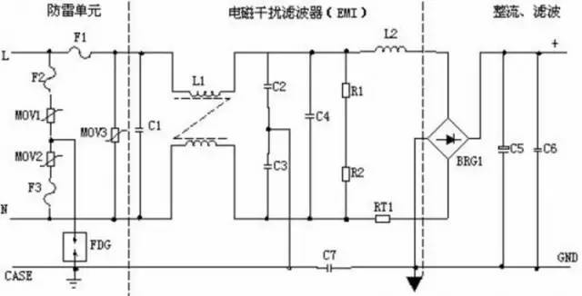 初学者对于开关电源到底该怎么学习?怎么入行?小编在此做个小小的总结!关于学习开关电源,大家都很清楚,要学好电路,模数电,自控,工程电磁场这些大学专业课,甚至还要看一些开关电源设计之类的专业书籍,如果能学好以上书籍,电路一类的基本知识就算了解了,但是要学好开关电源,单单有以上理论是不够的,还要深入实践,并且还要有一套行之有效的学习研发方式,也就是说拼命苦干是不会起很大作用的,最重要的是高效的方法。在文章里不能带大家实践。在此给初学者奉献一些基础的学习知识:1、开关电源的基本原理。2、开关电源中的各种元器件。3、变压器的计算。4、实例电源分析。5、EMI整改经验。6、开关电源经典书籍推荐最后还有全国各地电源工程师的工资行情查看哦。 1、开关电源的各部分基本原理介绍 下面总结了开关电源基本原理介绍及参数设计参考:一、 开关电源的电路组成开关电源的主要电路是由输入电磁干扰滤波器(EMI)、整流滤波电路、功率变换电路、PWM控制器电路、输出整流滤波电路组成。辅助电路有输入过欠压保护电路、输出过欠压保护电路、输出过流保护电路、输出短路保护电路等。 开关电源的电路组成方框图如下: 二、 输入电路的原理及常见电路1AC输入整流滤波电路原理:![]() ① 防雷电路:当有雷击,产生高压经电网导入电源时,由MOV1、MOV2、MOV3:F1、F2、F3、FDG1组成的电路进行保护。当加在压敏电阻两端的电压超过其工作电压时,其阻值降低,使高压能量消耗在压敏电阻上,若电流过大,F1、F2、F3会烧毁保护后级电路。 ② 输入滤波电路:C1、L1、C2、C3组成的双π型滤波网络主要是对输入电源的电磁噪声及杂波信号进行抑制,防止对电源干扰,同时也防止电源本身产生的高频杂波对电网干扰。当电源开启瞬间,要对C5充电,由于瞬间电流大,加RT1(热敏电阻)就能有效的防止浪涌电流。因瞬时能量全消耗在RT1电阻上,一定时间后温度升高后RT1阻值减小(RT1是负温系数元件),这时它消耗的能量非常小,后级电路可正常工作。 ③ 整流滤波电路:交流电压经BRG1整流后,经C5滤波后得到较为纯净的直流电压。若C5容量变小,输出的交流纹波将增大。2DC输入滤波电路原理图: ① 输入滤波电路:C1、L1、C2组成的双π型滤波网络主要是对输入电源的电磁噪声及杂波信号进行抑制,防止对电源干扰,同时也防止电源本身产生的高频杂波对电网干扰。C3、C4为安规电容,L2、L3为差模电感。② R1、R2、R3、Z1、C6、Q1、Z2、R4、R5、Q2、RT1、C7组成抗浪涌电路。在起机的瞬间,由于C6的存在Q2不导通,电流经RT1构成回路。当C6上的电压充至Z1的稳压值时Q2导通。如果C8漏电或后级电路短路现象,在起机的瞬间电流在RT1上产生的压降增大,Q1导通使Q2没有栅极电压不导通,RT1将会在很短的时间烧毁,以保护后级电路。 三、 功率变换电路1、MOS管的工作原理:目前应用最广泛的绝缘栅场效应管是MOSFET(MOS管),是利用半导体表面的电声效应进行工作的。也称为表面场效应器件。由于它的栅极处于不导电状态,所以输入电阻可以大大提高,最高可达105欧姆,MOS管是利用栅源电压的大小,来改变半导体表面感生电荷的多少,从而控制漏极电流的大小。2.常见MOS管的工作原理图: ![]() 3、工作原理: R4、C3、R5、R6、C4、D1、D2组成缓冲器,和开关MOS管并接,使开关管电压应力减少,EMI减少,不发生二次击穿。在开关管Q1关断时,变压器的原边线圈易产生尖峰电压和尖峰电流,这些元件组合一起,能很好地吸收尖峰电压和电流。从R3测得的电流峰值信号参与当前工作周波的占空比控制,因此是当前工作周波的电流限制。当R5上的电压达到1V时,UC3842停止工作,开关管Q1立即关断。 R1和Q1中的结电容CGS、CGD一起组成RC网络,电容的充放电直接影响着开关管的开关速度。R1过小,易引起振荡,电磁干扰也会很大;R1过大,会降低开关管的开关速度。Z1通常将MOS管的GS电压限制在18V以下,从而保护了MOS管。 Q1的栅极受控电压为锯形波,当其占空比越大时,Q1导通时间越长,变压器所储存的能量也就越多;当Q1截止时,变压器通过D1、D2、R5、R4、C3释放能量,同时也达到了磁场复位的目的,为变压器的下一次存储、传递能量做好了准备。IC根据输出电压和电流时刻调整着⑥脚锯形波占空比的大小,从而稳定了整机的输出电流和电压。 C4和R6为尖峰电压吸收回路。 4、推挽式功率变换电路:Q1和Q2将轮流导通 ![]() 5、有驱动变压器的功率变换电路:T2为驱动变压器,T1为开关变压器,TR1为电流环。 四、 稳压环路原理1、反馈电路原理图: ![]() 2、工作原理: 当输出U0升高,经取样电阻R7、R8、R10、VR1分压后,U1③脚电压升高,当其超过U1②脚基准电压后U1①脚输出高电平,使Q1导通,光耦OT1发光二极管发光,光电三极管导通,UC3842①脚电位相应变低,从而改变U1⑥脚输出占空比减小,U0降低。当输出U0降低时,U1③脚电压降低,当其低过U1②脚基准电压后U1①脚输出低电平,Q1不导通,光耦OT1发光二极管不发光,光电三极管不导通,UC3842①脚电位升高,从而改变U1⑥脚输出占空比增大,U0降低。周而复始,从而使输出电压保持稳定。调节VR1可改变输出电压值。 反馈环路是影响开关电源稳定性的重要电路。如反馈电阻电容错、漏、虚焊等,会产生自激振荡,故障现象为:波形异常,空、满载振荡,输出电压不稳定等。五、短路保护电路1、在输出端短路的情况下,PWM控制电路