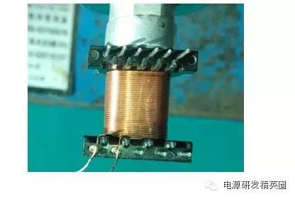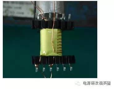 变压器同名端与绕制工艺 变压器承认书中一般会有电气图,如图1所示,其中每个绕组的黑色圆点表示同名端。所谓同名端,就是在两个(或多个)绕组中分别通以交流电(或者直流电产生静止磁场),当磁通方向迭加(同方向)时,两个绕组的电流流入端就是它们的同名端,两个绕组的电流流出端是它们的另一组同名端(如下,图1和图2表达的意思是相同的)。 ![]() 按照变压器正常制作工艺,常见有两种情况会导致同名端错误(或者说某个绕组相位反了):一是挂PIN相反,以图1为例,若其他条件不变,只将N1起始端和结束端互换,则其相位相反,这一点很好理解;二是反插骨架(也可以理解为改变绕线方向,即顺时针与逆时针互换),以卧式EF25(5+5PIN)骨架为例,若PIN1-5朝外绕制N1(3-1),与PIN6-10朝外绕制N1(3-1),相位刚好相反,以上两点均验证过。 了解以上信息后,下面列举两个实例,简单说明上述知识在设计中的应用 例1.客户资料要求如下:BOBBIN:EPC19 5+6PIN N1 4-5:φ0.3*1P*72Ts N2 1-2:φ0.3*1P*6Ts N3 7-6:φ0.3*1P*18Ts N4 11-10:φ0.3*1P*4Ts 常规绕法: PIN1-5朝外,起始端和结束端参照资料要求 绕制4-5结果如图3: ![]() 从图3可以看出,起始端和结束端相交,由于焊锡时起始端和结束端漆包线会损伤,容易造成短路,所以会加上铁氟龙套管增强绝缘,因此增加了制作成本,其余各绕组情况相同。 调整绕制工艺: PIN1-5朝外,起始端和结束端互换 N1 5-4:φ0.3*1P*72Ts N2 2-1:φ0.3*1P*6Ts N3 6-7:φ0.3*1P*18Ts N4 10-11:φ0.3*1P*4Ts 绕制5-4结果如图4: ![]() 从图4可以看出,起始端和结束端不相交,其余各绕组情况相同。 小结:同名端是一个相对的量,绕组同名端有两个而并非一个,同名端和起始端相关,但不是对应的关系,当然例1也有其它调整方法,这里就不再详述了。 例2.资料要求如下:SMD EE16 6+6 N1 6-4:φ0.3*1P*60Ts N2 8-9:φ0.3*1P*8Ts 常规绕法: PIN1-6统一朝外 N1 6-4:φ0.3*1P*60Ts N2 8-9:φ0.3*1P*8Ts 结果如图5: ![]() 从上图可以看出,绕制N2时,进线和出线靠近治具端(夹头),引线挂脚不容易操作,耗费了工时,增加了制作成本。 调整绕线工艺: 绕制N1时,PIN1-6朝外6-4:0.3*1P*60Ts 绕制N2时,PIN7-12朝外9-8:φ0.3*1P*8Ts 结果如图6: ![]() 从上图可以看出,绕制N2时,引线挂脚容易操作。 小结:改变骨架插入治具的方向即改变了绕组的相位,起始端和结束端位置互换也改变了绕组的相位,由于“负负得正”,所以不会出现同名端错误。 上述工艺的改变也具有局限性,有些情况是不能轻易变更的,例如1.绕组圈数少或跨度大,假设绕组圈数为1T,调整前后会出现1.1Ts和0.9T,相对来讲误差会很大;2.已经送过安规或者已经量产了的变压器,建议不要轻易改动;3.还有其它可能存在的未知问题。当然,一般改变变压器绕制工艺,都需要与客户沟通或送样品确认,所以在条件允许的情况下,可以尝试着改变! 总结:1.变压器有两组同名端,一般客户会给出一组同名端,该组同名端并非绕组的起始端。2.改变骨架插PIN方向或改变绕组起始端和结束端位置可以改变该绕组的相位,若所有绕组相位相同,则同名端一致。在设计过程中需要灵活运用上面的关系,旨在设计更加合理的变压器! 以上为实践过程中总结出来的一点心得,目的在于分享经验并支持本次论坛活动。若有错误或不足之处,请高手指正!