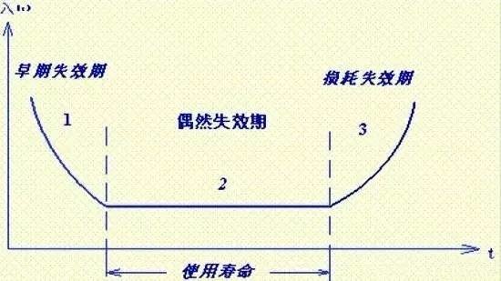 图5 反激型变压器的绕制示意 ④通过吸收电路的设计,进一步控制由于变压器漏感引起的MOSFET漏源极电压尖峰。设计原则是吸收电路的自身损耗较小且尽可能有效地控制电压尖峰。 一般通过上述电路设计,MOSFET热耗可以达到比较理想的结果。 2变压器热耗控制 变压器热耗主要来自磁滞损耗、涡流损耗和电阻损耗。磁滞损耗与变压器绕组和工作方式有关,可以由公式(3)表示。涡流损耗是由磁芯内环流造成的;电阻损耗是由变压器绕组电阻产生的,分直流电阻损耗和集肤效应电阻损耗两种。 Peddy≈khVefSWB2MAX (3) 式中,Kh材料的磁滞损耗常数; Ve磁芯体积,单位为cm3; fSW开关频率,单位为Hz; BMAX工作磁通密度的最大偏移值,单位为G。 对磁滞损耗的控制设计中主要有以下几点。 ① 设计比较合适的工作频率; ② 合适的初级绕组匝数; ③ 工作磁通密度的最大偏移值的降额设计。 在电阻损耗的控制设计中,尽量采用多股线替代单根线,从而将变压器磁芯绕满。 3 输出整流电路热耗控制 输出整流电路的热耗主要由整流二极管产生,整流二极管热耗主要来自导通损耗、开关损耗两部分。对于导通损耗的控制设计主要是根据输出电流和工作频率选择合适的整流二极管,如快恢复二极管或肖特基二极管。 对于开关损耗的控制主要有以下几点。 ①选择反向恢复特性好的整流管; ②通过吸收电路的设计,控制整流管反向电压尖峰。 卫星DC/DC变换器的可靠性分析与计算 产品的可靠性取决于产品的失效率,而失效率随工作时间的变化具有不同的特点。根据长期以来的理论研究和数据统计可发现,由许多元器件构成的机器、设备或系统,在不进行预防性维修时,或者不可修复的产品,其失效率曲线的典型形态相似于浴盆的剖面,所以又称为浴盆曲线(Bathtub-curve),如图6所示。 图6 失效率浴盆曲线 由图6可见,失效率明显地分为三个不同的阶段或时期。第一段曲线是元件的早期失效期,表明元件在开始使用时的失效率很高,但随着产品工作时间的增加,失效率迅速降低,属于递减型DFR(Decreasing Failure Rate)型。其失效原因大多属于设计缺陷、制造工艺缺陷和元器件固有缺陷一类。为了缩短早期失效的时间,产品应在投入运行之前进行试运转,以便及早发现、修正和排除缺陷;或通过试验进行筛选和淘汰次品,以便改善其技术状态。 第二阶段曲线是元件的偶然(也称随机)失效期,特点是失效率低且稳定,可近似看做常数,失效属于恒定期CFR(Constant Failure Rate)型。产品的可靠性指标所描述的就是这个时期,它是产品的良好使用阶段。产品的寿命试验、可靠性试验一般都是在偶然失效期进行的。 产品的失效是由多种不太严重的偶然因素引起的,通常是产品设计余度不够造成随机失效。研究这一时期的失效原因,对提高产品的可靠性具有重要意义。因为在这一阶段中,产品失效率近似为一个常数。 第三段曲线是元件的损耗失效期,失效率随时间延长而急速增加,元件的失效率属于递增型IFR(Increasing failure Rate)型。到了此时,元件损伤严重或已经疲劳,寿命即将结束。 一般在进行可靠度预计时,进口元器件失效率数据参考MIL-HDBK-217F,国产元器件失效率数据参考GJB/Z 299C。 结语 本文从选择合理的电路技术方案、设计过载保护电路、FMEA及冗余设计、降额设计、热设计等不同角度阐述了提高航天器DC/DC变换器可靠性的设计要求。其中尤为重要的思想是,航天器DC/DC变换器可靠性的保证不能仅仅依赖于元器件的固有可靠性,而是上述诸多因素共同作用的结果。 |