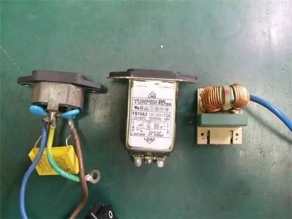 常见的计算机用电源的功能是将输入的交流市电(AC110V/220V),经过隔离型交换式降压电路转换出各硬件所需的各种低压直流电:3.3V、5V、12V、-12V及提供计算机关闭时待命用的5V Standby(5VSB)。所以电源内部同时具备了耐高压、大功率的组件 电源转换流程为交流输入→EMI滤波电路→整流电路→功率因子修正电路(主动或是被动PFC)→功率级一次侧(高压侧)开关电路转换成脉流→主要变压器→功率级二次侧(低压侧)整流电路→电压调整电路(例如磁性放大电路或是DC-DC转换电路)→滤波(平滑输出涟波,由电感及电容组成)电路→电源管理电路监控输出。 ![]() 以下从交流输入端EMI滤波电路常见的组件开始介绍。 交流电输入插座 此为交流电从外部输入电源的第一道关卡,为了阻隔来自电力在线干扰,以及避免电源运作所产生的交换噪声经电力线往外散布干扰其它用电装置,都会于交流输入端安装一至二阶的EMI(电磁干扰)Filter(滤波器),其功能就是一个低通滤波器,将交流电中所含高频的噪声旁路或是导向接地线,只让60Hz左右的波型通过。 ![]() 上面照片中,中央为一体式EMI滤波器电源插座,滤波电路整个包于铁壳中,能更有效避免噪声外泄;右方的则是以小片电路板制作EMI滤波电路,通常使用于无足够深度安装一体式EMI滤波器的电源供应器,少了铁皮外壳多少会有噪声泄漏情形;而左边的插座上只加上Cx与Cy电容(稍后会介绍),使用这类设计的电源,其EMI滤波电路通常需要做在主电路板上,若是主电路板上的EMI电路区空空如也,就代表该区组件被省略掉了。 目前使用12公分风扇的电源供应器内部空间都不太能塞下一体式EMI滤波器,所以大多采用照片左右两边的做法。 X电容(Cx,又称为跨接线路滤波电容) 这是EMI滤波电路组成中,用来跨接火线(L)与中性线(N)间的电容,用途是消除来自电力线的低通常态噪声。 外观如照片所示为方型,上方会打上X或X2字样。Y电容(Cy,又称为线路旁通电容器) Y电容为跨接于浮接地(FG)和火线(L)/中性线(N)之间,用来消除高通常态及共态噪声。 ![]() Y电容的外观如照片呈圆饼状 而计算机用电源中的FG点与金属外壳、地线(E)及输出端0V/GND共接,所以未连接接地线时,会经由两颗串联的Cy电容分压出输入电源一半的电位差(Vin/2),人体碰触到后就有可能产生感电现象。 共态扼流圈(交连电感) ![]() 共模态扼流圈在滤波电路中为串联在火线(L)与中性线(N)上,用来消除电力在线低通共态以及射频噪声。有些电源的输入端线路,会有缠绕在磁芯上的设计,也可以当作是简单的共态扼流圈。 其外观有环形与类似变压器的方形,部分可以见到外露的线圈。 所谓共态噪声,代表是L/N线对于地线E间的噪声,而常态噪声,则是L与N线之间的噪声,EMI滤波器功能主要是消除及阻挡这两类噪声。在EMI滤波电路之后的是瞬时保护电路及整流电路,常见的组件如下。 保险丝 保险丝就是当其流过其上的电流值超出额定限度时,会以熔断的方式来保护连接于后端电路,一般使用于电源供应器中的保险丝为快熔型,比较好的会使用防爆式保险丝,其与一般保险丝最大的差别是外管为米色陶瓷管,内填充防火材质避免熔断时产生火花。 ![]() 其安装于电路板上的方式有如图片上方的固定式(两端直接套上导线座并焊于电路板上)以及图片中央的可拆卸式(使用金属夹片固定)。下方的方形组件是温度保险丝,这类保险丝固定于大功率水泥电阻或是功率组件的散热片上,主要是用于超温保护,避免组件过热而损坏或发生火灾,这类保险丝也有与电流保险丝结合的版本,对电流及温度进行双重保护。 负温度系数电阻(NTC) 因为电源接通电源瞬间,其内的高压端电解电容属于无电状态,充电瞬间将产生过大电流突波以及线路压降,可能使桥式整流器等组件超出其额定电流而烧坏。NTC使用时串联于L或N线路上,启动时其内部阻抗值可以限制充电瞬间的电流值,而负温度系数的定义是其电阻会随其温度上升而降低,所以随着电流流过本体使温度逐渐升高后,其阻值会随着降低,避免造成不必要功率消耗。 ![]() 其外观大多为黑色及墨绿色的圆饼状元件 但其缺点是电源处于热机状态下启动时,其保护效果会打上折扣,且即使阻抗可随温度降低,仍会消耗些许功率,所以目前高效率电源大多采用更进阶的瞬时保护电路。 金氧变阻器(MOV) 变阻器跨接于保险丝后端的火线与地线间,其动作原理为当其两端电压差低于其额定电压值时,本体呈现高阻抗;当电压差超出其额定值,本体电阻会急速下降,L-N间呈现近似短路状态,前端的保险丝因短路而升高的电流将会使其熔断,以保护后端电路,有时本体承受功率过大时,亦以自毁方式来警告使用者该装置已经出现问题。 通常用于电源供应器交流输入端,当输入交流发生过电压时能及时让保险丝熔断,避免使内部组件损坏。其颜色与外观与Cy电容很接近,不过可以从组件上面的字样及型号来分别其不同。桥式整流器 内部由四颗二极管交互连接所构成的桥式整流器,其功用是将输入交流进行全波整流后,供后端交换电路使用。 其外观与大小会随着组件额定电压及电流的不同而有所差异,部分电源供应器会将其固定于散热片上,协助其散热,以利稳定的长时间运作。经过整流后,便进入功率级一次侧的交换电路,这里的组件决定了电源供应器的各路最大输出能力,是电源供应器相当重要的一部份。开关晶