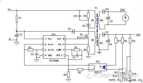 一、 从原理图到PCB的设计流程 建立元件参数->输入原理网表->设计参数设置->手工布局->手工布线->验证设计->复查->CAM输出。 二、 参数设置 相邻导线间距必须能满足电气安全要求,而且为了便于操作和生产,间距也应尽量宽些。最小间距至少要能适合承受的电压,在布线密度较低时,信号线的间距可适当地加大,对高、低电平悬殊的信号线应尽可能地短且加大间距,一般情况下将走线间距设为8mil。焊盘内孔边缘到印制板边的距离要大于1mm,这样可以避免加工时导致焊盘缺损。当与焊盘连接的走线较细时,要将焊盘与走线之间的连接设计成水滴状,这样的好处是焊盘不容易起皮,而是走线与焊盘不易断开。 三、 元器件布局 实践证明,即使电路原理图设计正确,PCB电路板设计不当,也会对电子设备的可靠性产生不利影响。例如,如果PCB电路板两条细平行线靠得很近,则会形成信号波形的延迟,在传输线的终端形成反射噪声;由于电源、地线的考虑不周到而引起的干扰,会使产品的性能下降,因此,在设计PCB电路板的时候,应注意采用正确的方法。 ![]() 每一个开关电源都有四个电流回路: (1). 电源开关交流回路 (2). 输出整流交流回路 (3). 输入信号源电流回路 (4). 输出负载电流回路 输入回路通过一个近似直流的电流对输入电容充电,滤波电容主要起到一个宽带储能作用;类似地,输出滤波电容也用来储存来自输出整流器的高频能量,同时消除输出负载回路的直流能量。所以,输入和输出滤波电容的接线端十分重要,输入及输出电流回路应分别只从滤波电容的接线端连接到电源;如果在输入/输出回路和电源开关/整流回路之间的连接无法与电容的接线端直接相连,交流能量将由输入或输出滤波电容并辐射到环境中去。电源开关交流回路和整流器的交流回路包含高幅梯形电流,这些电流中谐波成分很高,其频率远大于开关基频,峰值幅度可高达持续输入/输出直流电流幅度的5倍,过渡时间通常约为 50ns。这两个回路最容易产生电磁干扰,因此必须在电源中其它印制线布线之前先布好这些交流回路,每个回路的三种主要的元件滤波电容、电源开关或整流器、电感或变压器应彼此相邻地进行放置,调整元件位置使它们之间的电流路径尽可能短。 建立开关电源布局的最好方法与其电气设计相似,最佳设计流程如下: ●放置变压器 ●设计电源开关电流回路 ● 设计输出整流器电流回路 ●连接到交流电源电路的控制电路 ●设计输入电流源回路和输入滤波器 设计输出负载回路和输出滤波器根据电路的功能单元,对电路的全部元器件进行布局时,要符合以下原则: (1) 首先要考虑PCB电路板的尺寸大小。PCB尺寸过大时,印制线条长,阻抗增加,抗噪声能力下降,成本也增加;过小则散热不好,且邻近线条易受干扰。PCB电路板的最佳形状矩形,长宽比为3:2或4:3,位于其边缘的元器件,离电路板边缘一般不小于2mm。 (2) 放置器件时要考虑以后的焊接,不要太密集. (3) 以每个功能电路的核心元件为中心,围绕它来进行布局。元器件应均匀、 整齐、紧凑地排列在PCB电路板上,尽量减少和缩短各元器件之间的引线和连接, 去耦电容尽量靠近器件的VCC (4) 在高频下工作的电路,要考虑元器件之间的分布参数。一般电路应尽可能使元器件平行排列。这样,不但美观,而且装焊容易,易于批量生产。 (5) 按照电路的流程安排各个功能电路单元的位置,使布局便于信号流通,并使信号尽可能保持一致的方向。 (6) 布局的首要原则是保证布线的布通率,移动器件时注意飞线的连接,把有连线关系的器件放在一起。 (7) 尽可能地减小环路面积,以抑制开关电源的辐射干扰。 四、 布线 开关电源中包含有高频信号,PCB电路板上任何印制线都可以起到天线的作用,印制线的长度和宽度会影响其阻抗和感抗,从而影响频率响应。即使是通过直流信号的印制线也会从邻近的印制线耦合到射频信号并造成电路问题(甚至再次辐射出干扰信号)。因此应将所有通过交流电流的印制线设计得尽可能短而宽,这意味着必须将所有连接到印制线和连接到其他电源线的元器件放置得很近。印制线的长度与其表现出的电感量和阻抗成正比,而宽度则与印制线的电感量和阻抗成反比。长度反映出印制线响应的波长,长度越长,印制线能发送和接收电磁波的频率越低,它就能辐射出更多的射频能量。根据印制线路板电流的大小,尽量加租电源线宽度, 减少环路电阻。同时、使电源线、地线的走向和电流的方向一致,这样有助于增强抗噪声能力。接地是开关电源四个电流回路的底层支路,作为电路的公共参考点起着很重要的作用,它是控制干扰的重要方法。因此,在布局中应仔细考虑接地线的放置,将各种接地混合会造成电源工作不稳定。 ![]() 在地线设计中应注意以下几点: 正确选择单点接地通常,滤波电容公共端应是其它的接地点耦合到大电流的交流地的唯一连接点,同一级电路的接地点应尽量靠近,并且本级电路的电源滤波电容也应接在该级接地点上,主要是考虑电路各部分回流到地的电流是变化的,因实际流过的线路的阻抗会导致电路各部分地电位的变化而引入干扰。在本开关电源中,它的布线和器件间的电感影响较小,而接地电路形成的环流对干扰影响较大,因而采用一点接地,即将电源开关电流回路 (中的几个器件的地线都连到接地脚上,输出整流器电流回